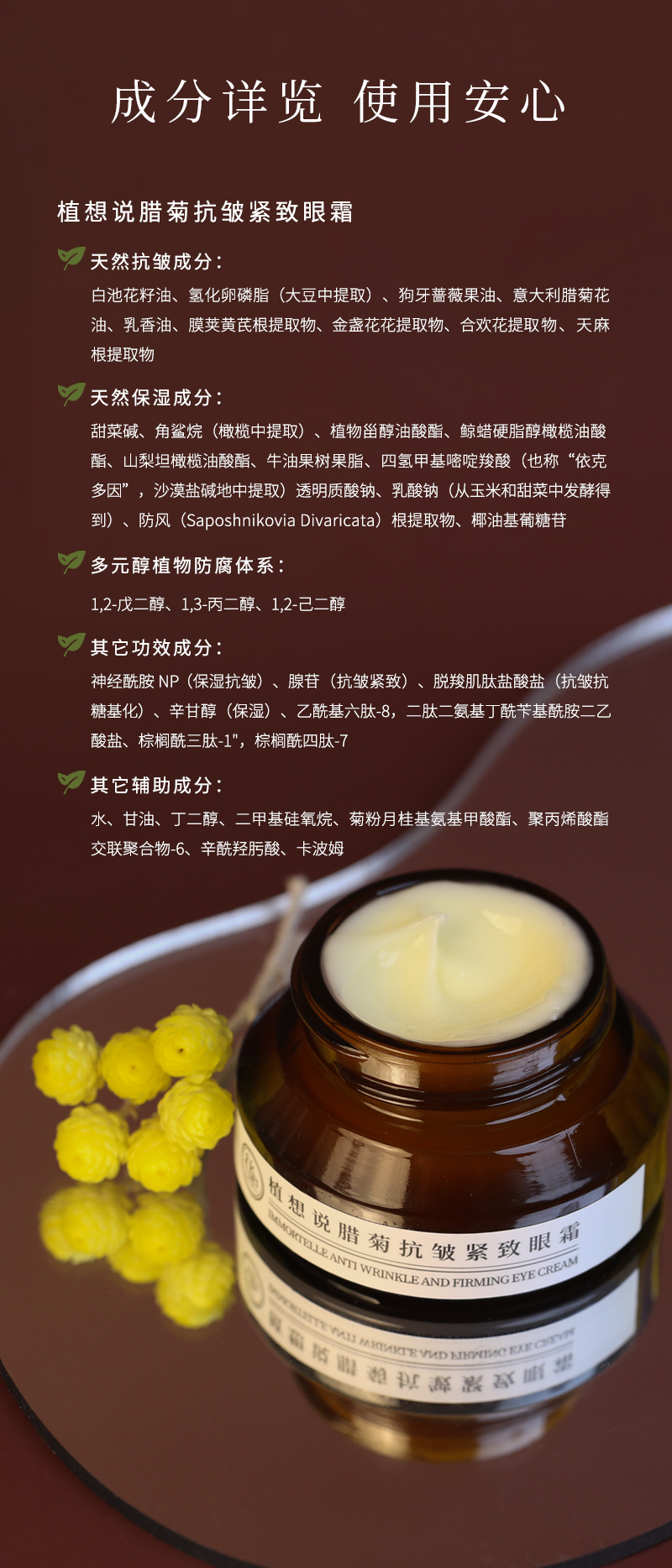 腊菊抗皱紧致眼霜 | 15g/瓶 保湿滋润淡化细纹 纯素护肤 植想说
