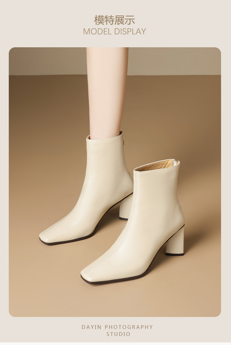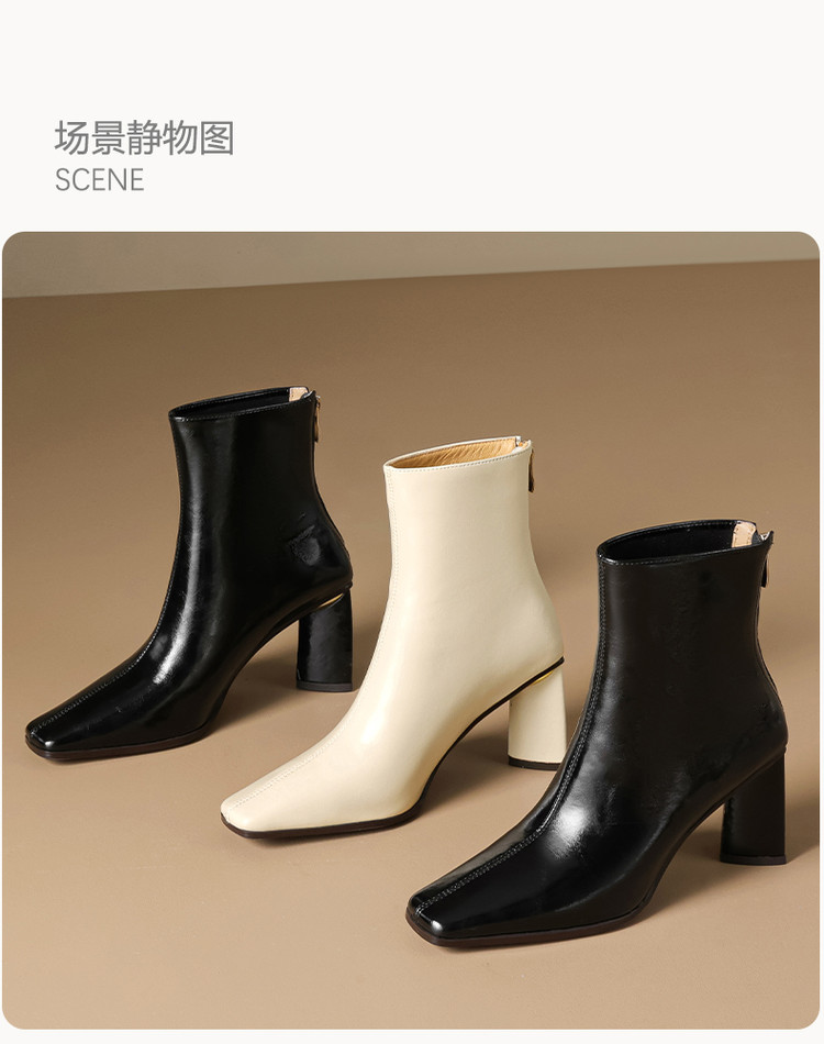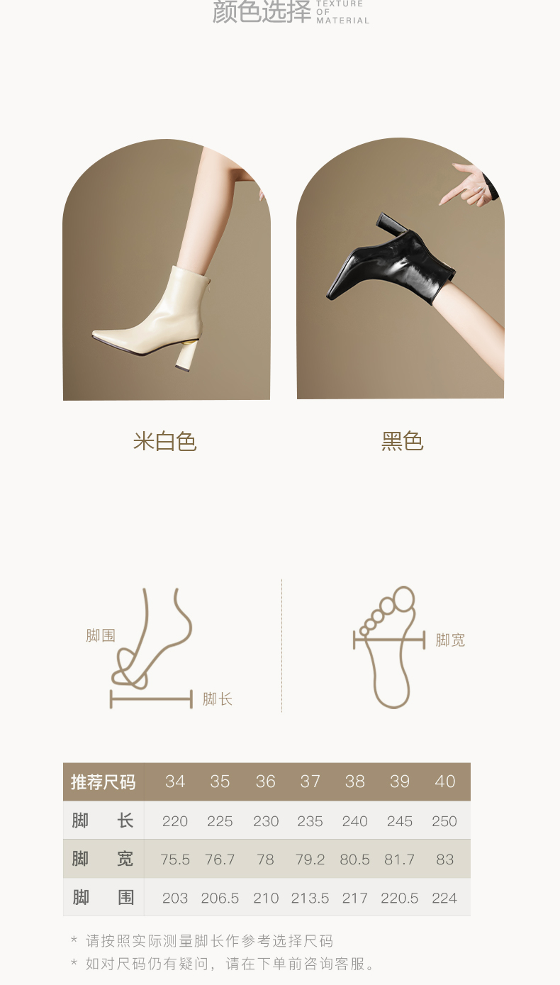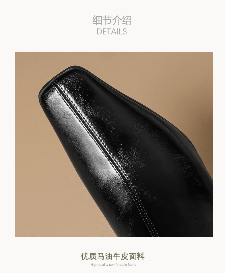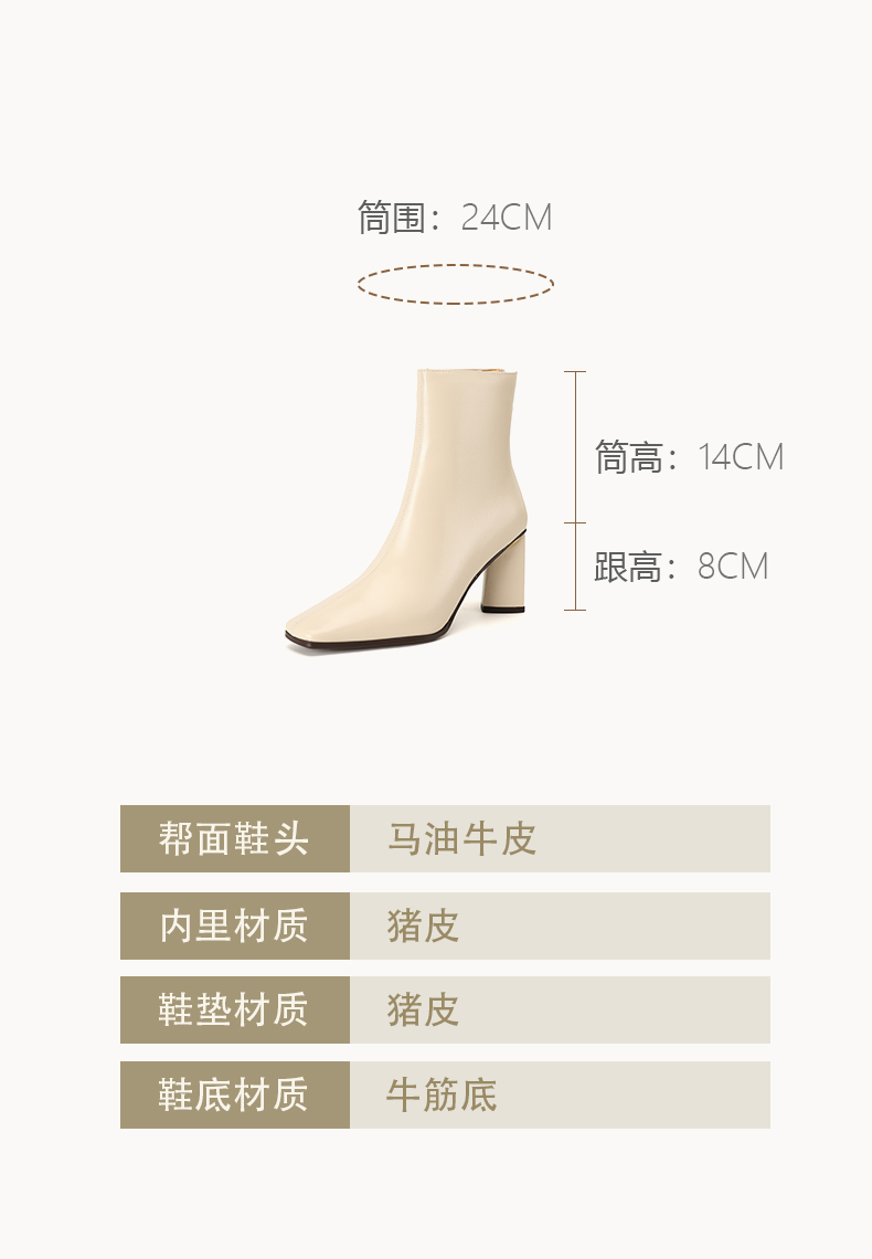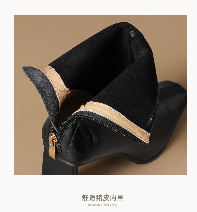 【预售5天】英伦时尚真皮粗跟新款方头拉链女靴气质瘦瘦靴OFSM&OFSM6403