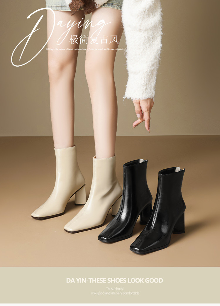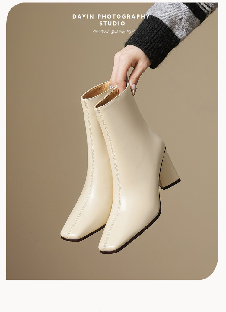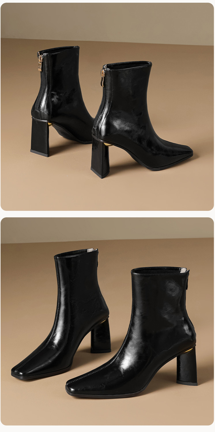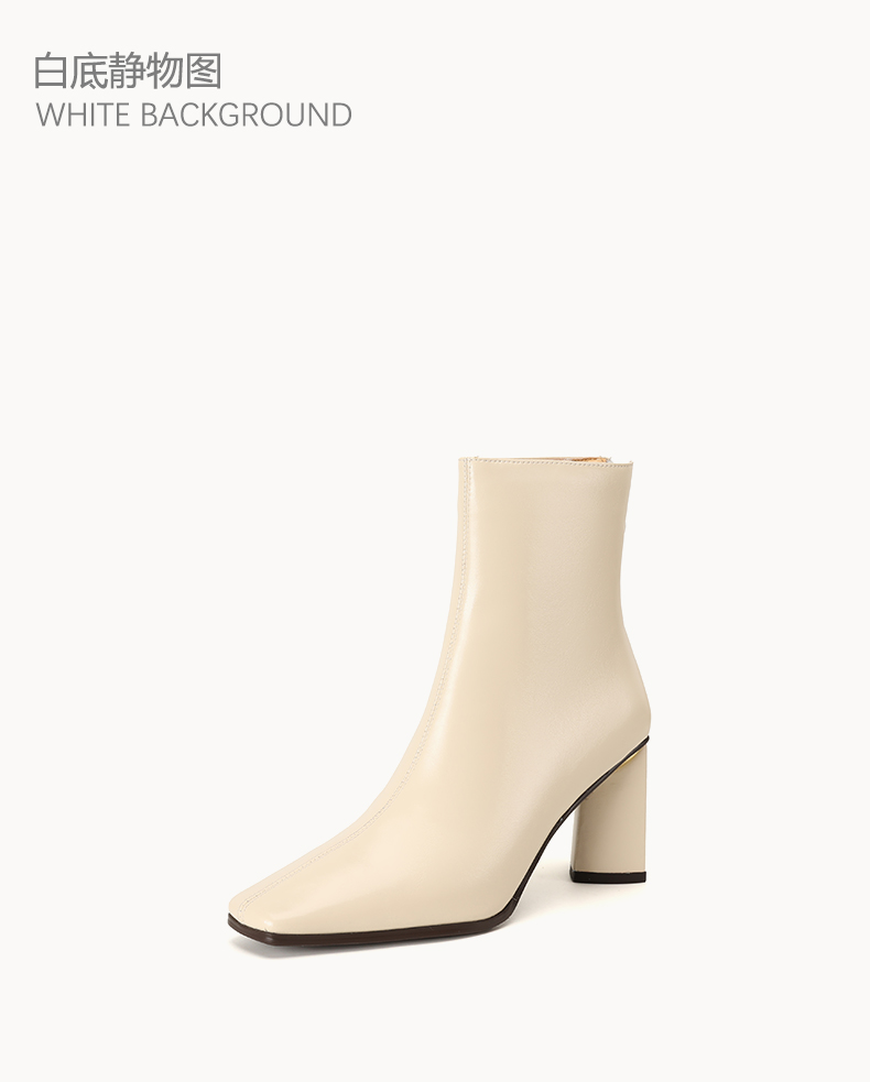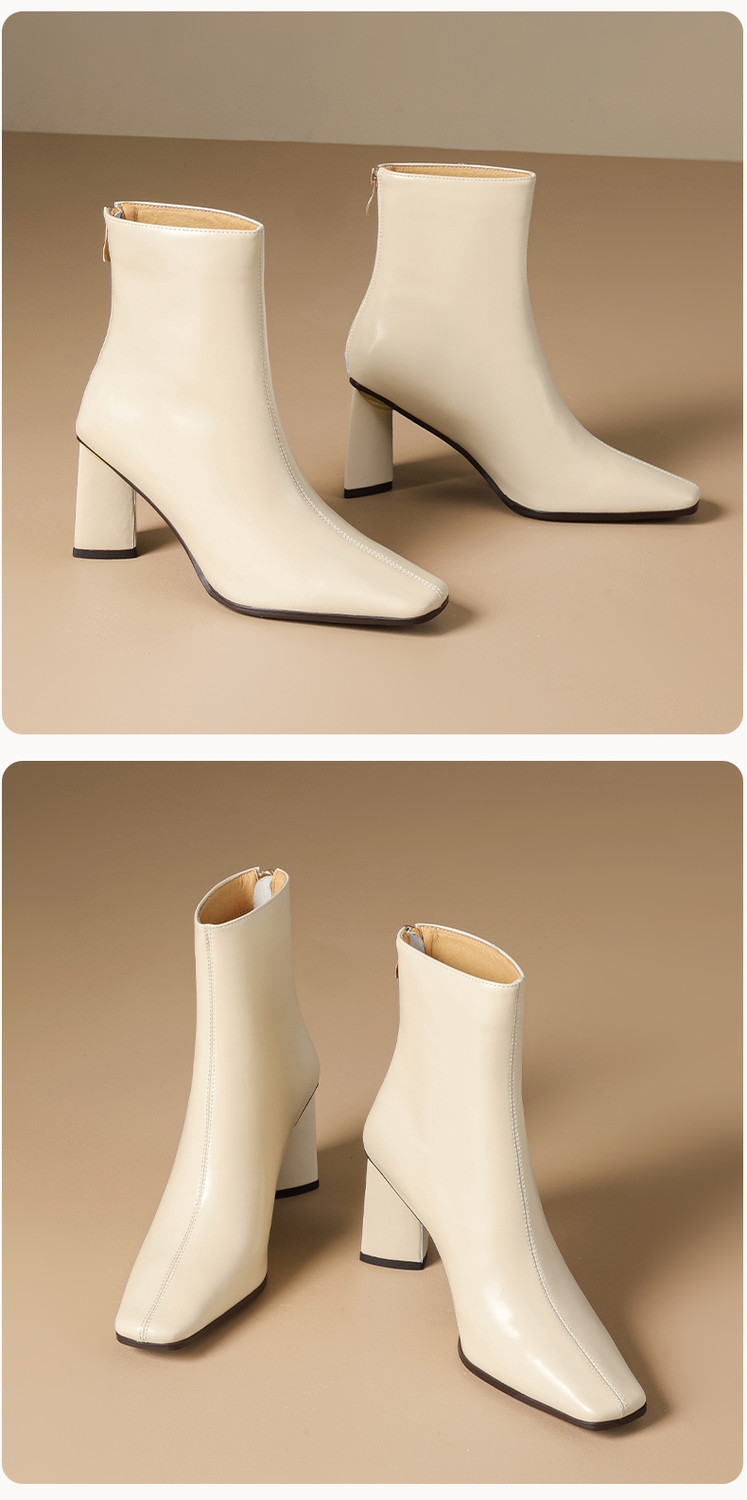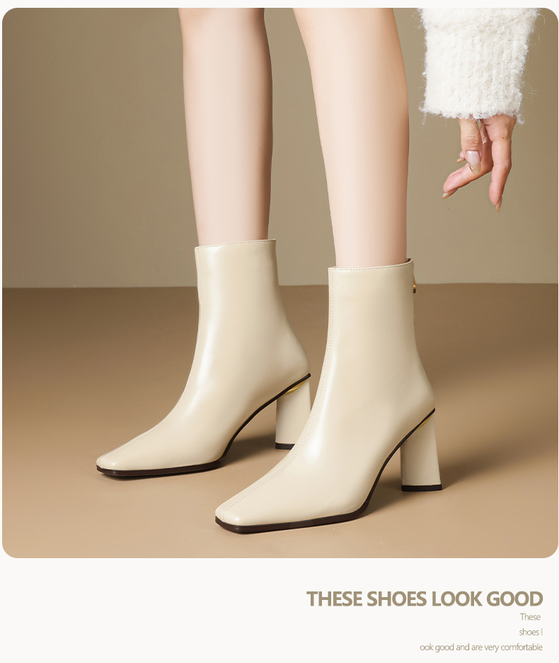 【预售5天】英伦时尚真皮粗跟新款方头拉链女靴气质瘦瘦靴OFSM&OFSM6403