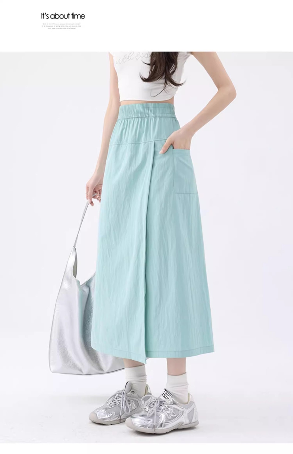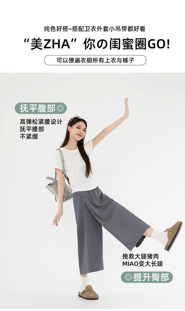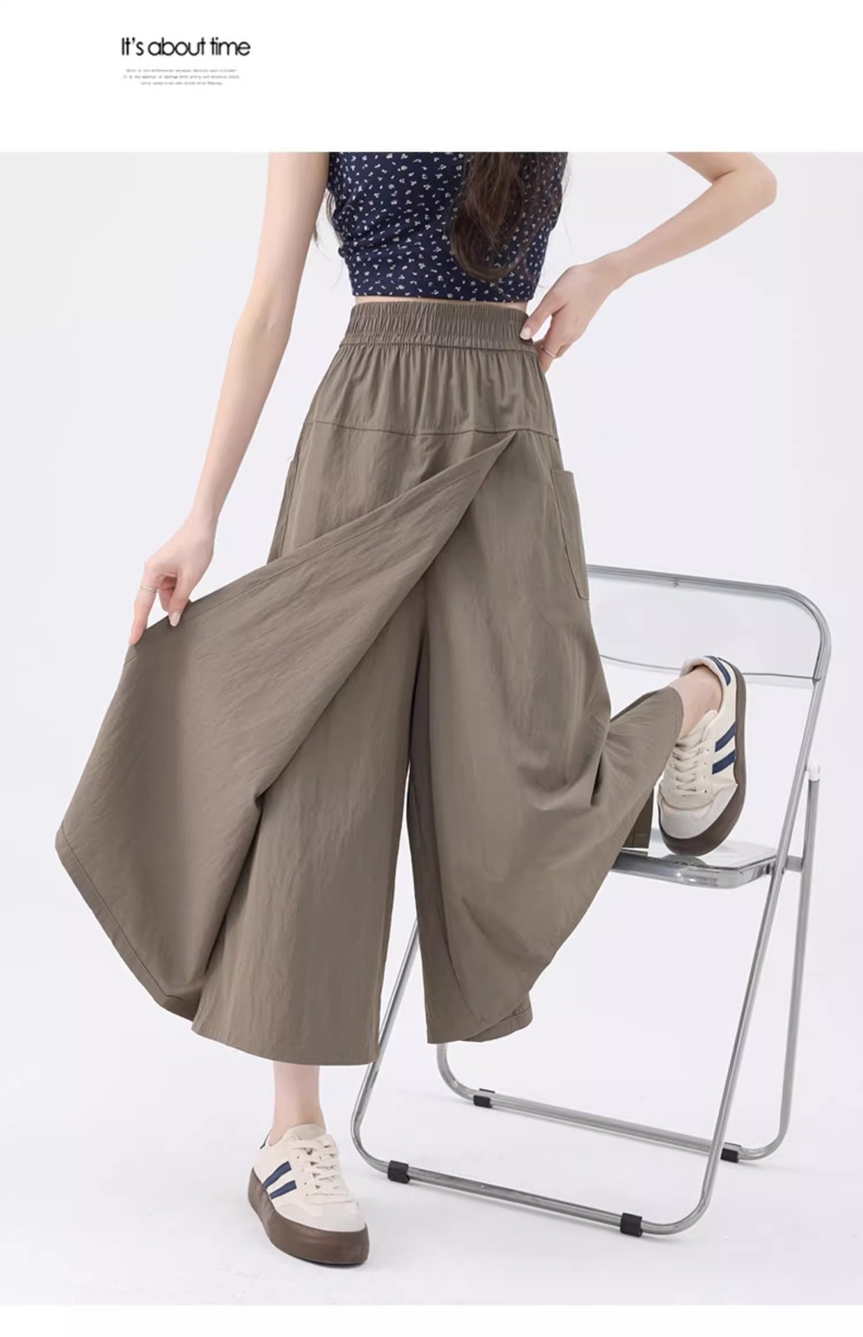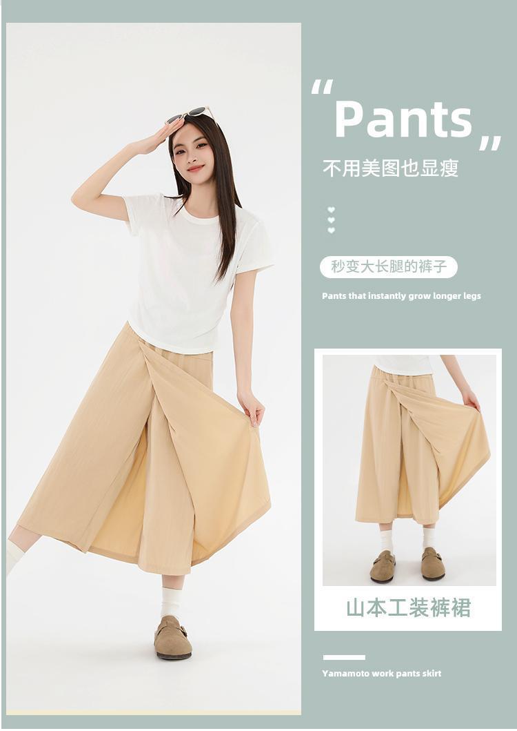 雀说山本开叉工装裙裤女新款高腰显瘦半身裙休闲冰丝大码阔腿裤AL641