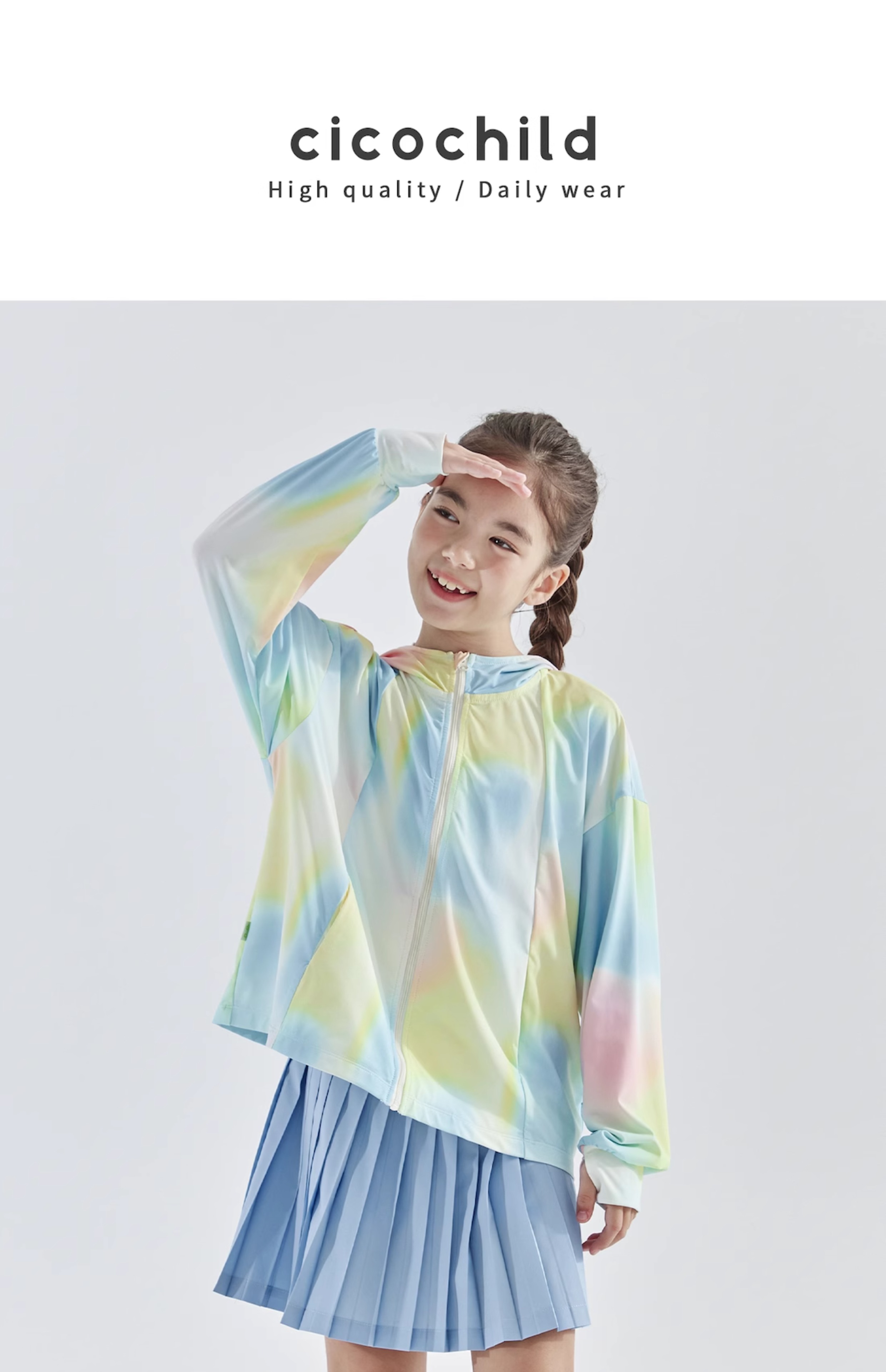 cicochild 25年夏季新款女童晕染针织防晒服中大童亲子凉感防晒衣