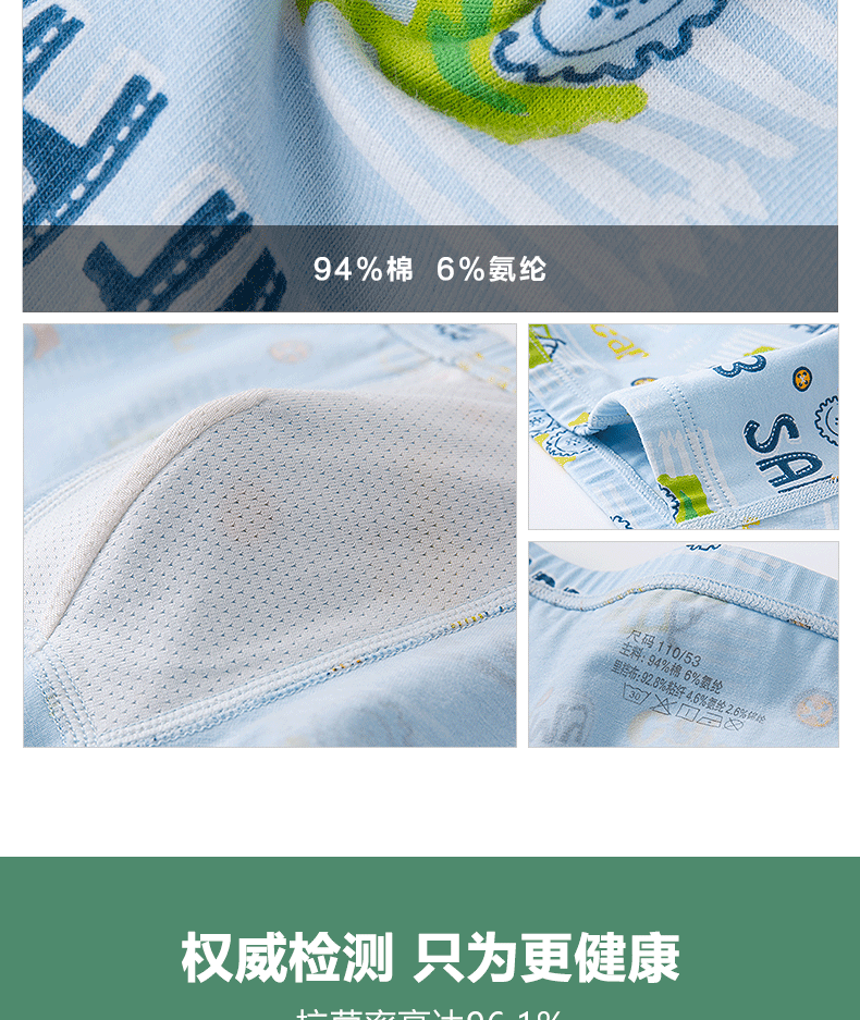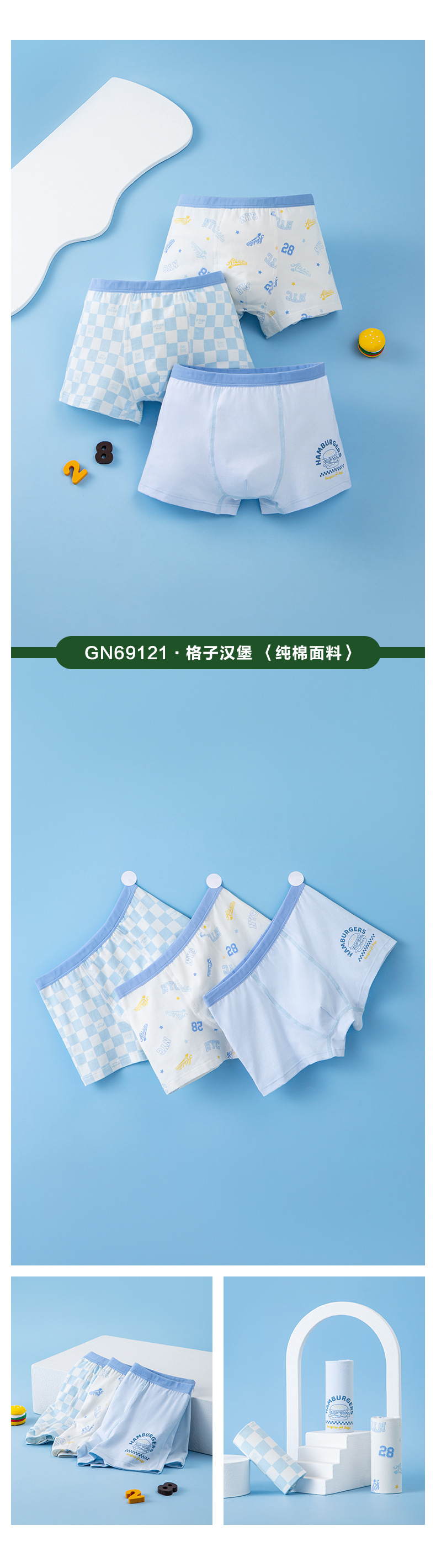 【四条礼盒装】歌贝儿男童内裤A类纯棉儿童平角7A级抗菌宝宝男孩中大童四角短裤不夹PP卡通110-160