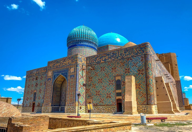 早餐后,参观【古里阿米尔陵】是帖木儿及其后的陵墓,具有浓厚的东方建筑特色,是世界著名的中亚建筑瑰宝;【霍贾·达尼亚拉陵】建于19世纪中叶(另一种说法建于20世纪初),外观为一连串圆顶形建筑,座北朝南。霍贾·达尼亚拉的石棺长18米(信徒认为这一长度可保持他们同墓中神灵的联系)。霍贾·达尼亚拉为公元前六世纪的著名先知、心理学家、社会活动家。他同时受到世界最主要的三大宗教的尊敬;结束后搭乘高铁返回乌兹别克斯坦首都塔什干。