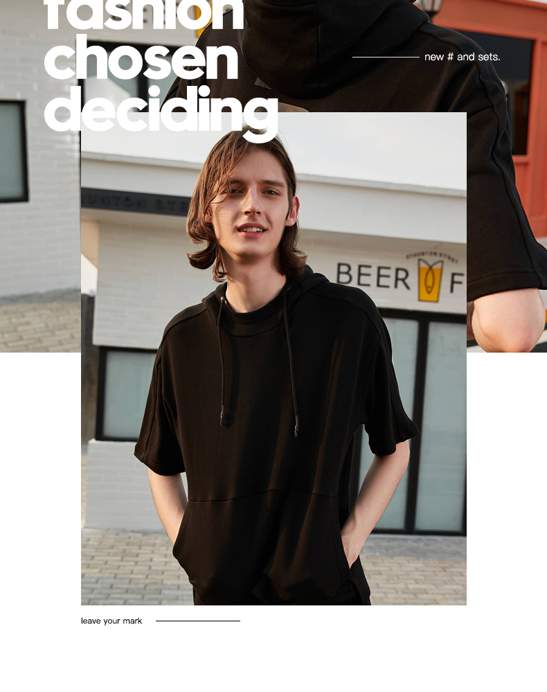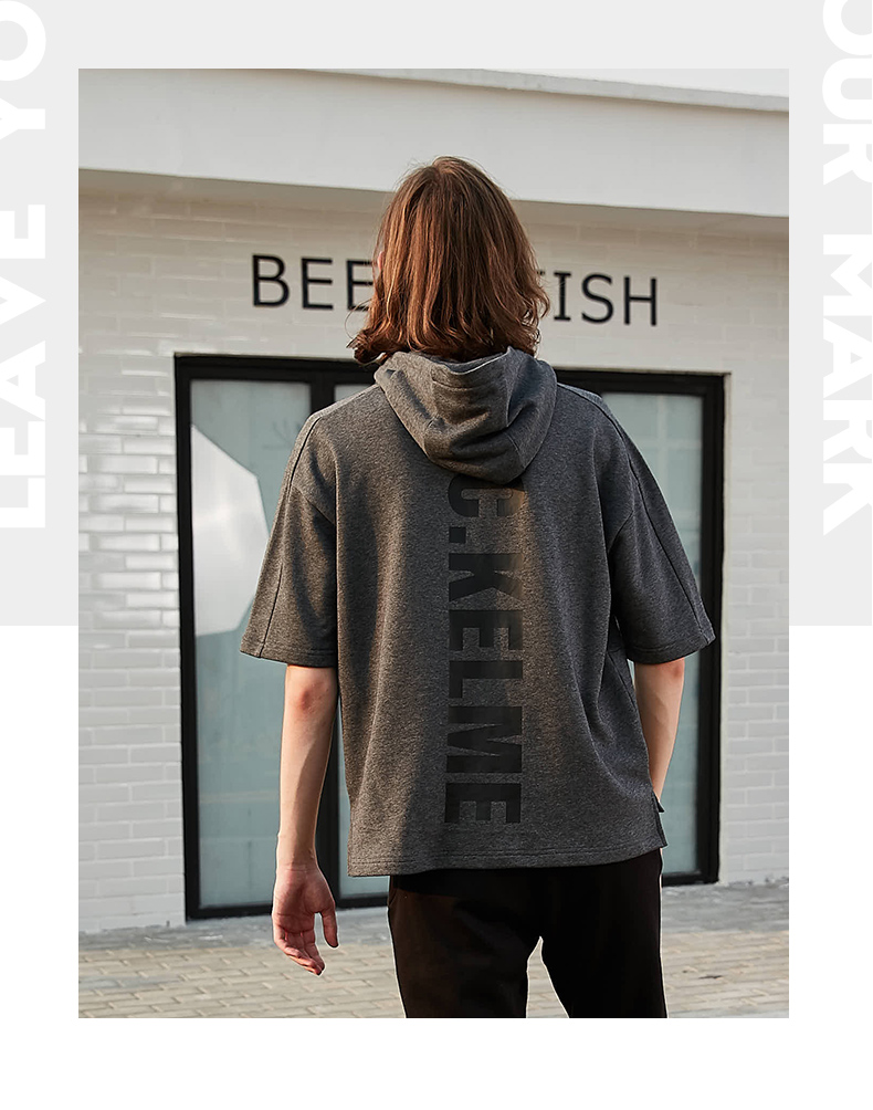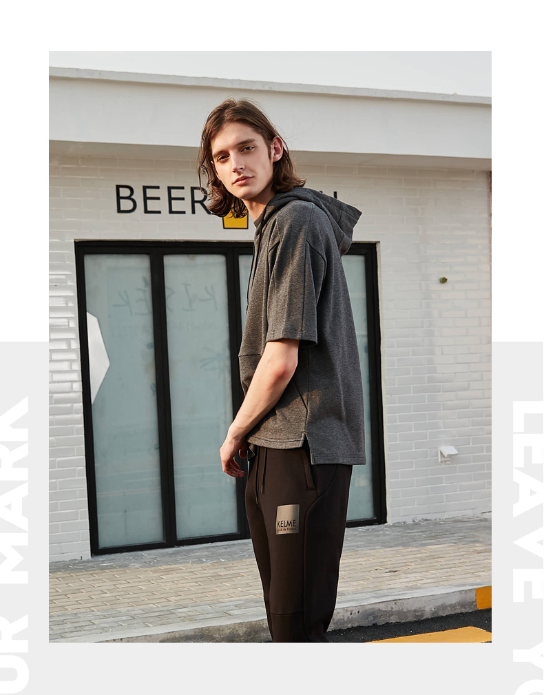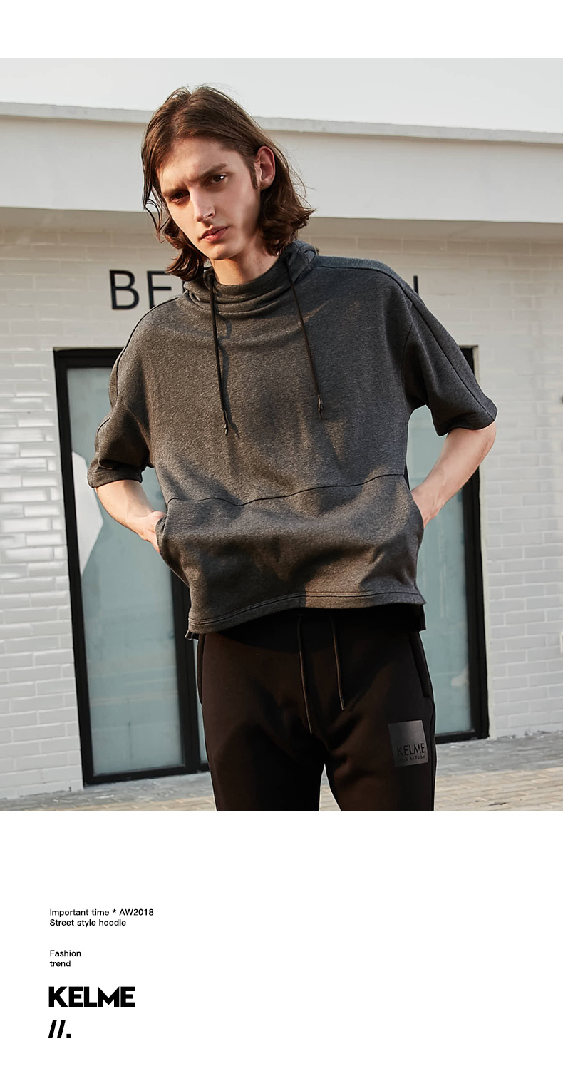 卡尔美 男士运动卫衣五分袖半袖套头衫休闲T恤外套新款