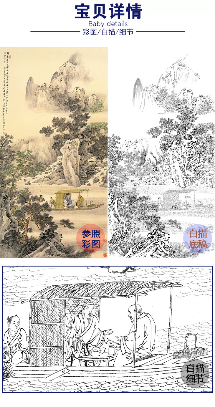 白描底稿-竖幅工笔山水人物李子牧-LQ44