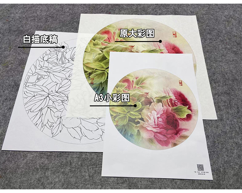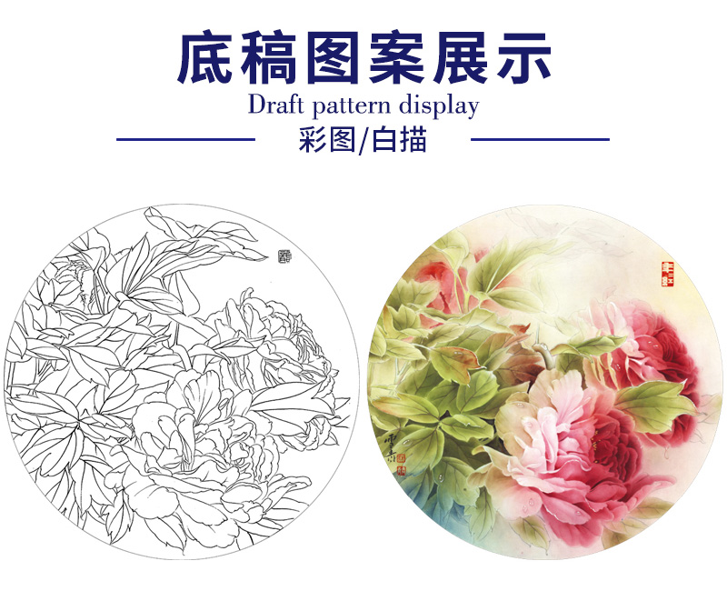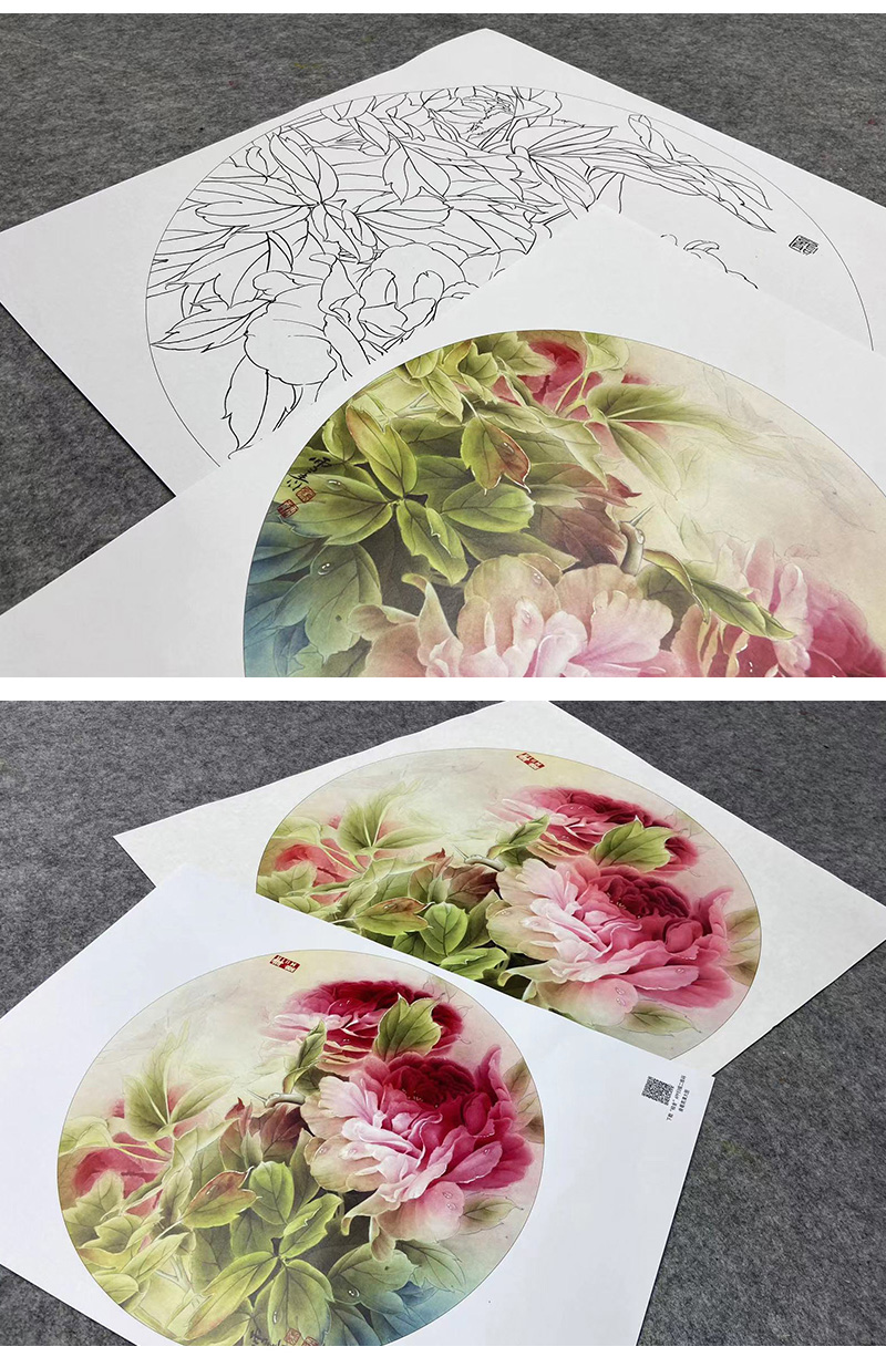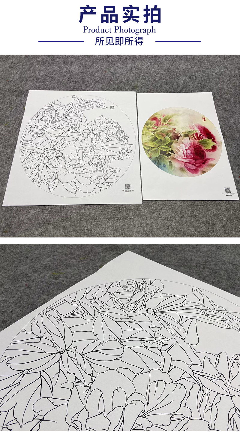 【大彩图】龚雪青工笔画白描底稿小品《晨曦》牡丹临摹勾线花鸟线稿XQ14