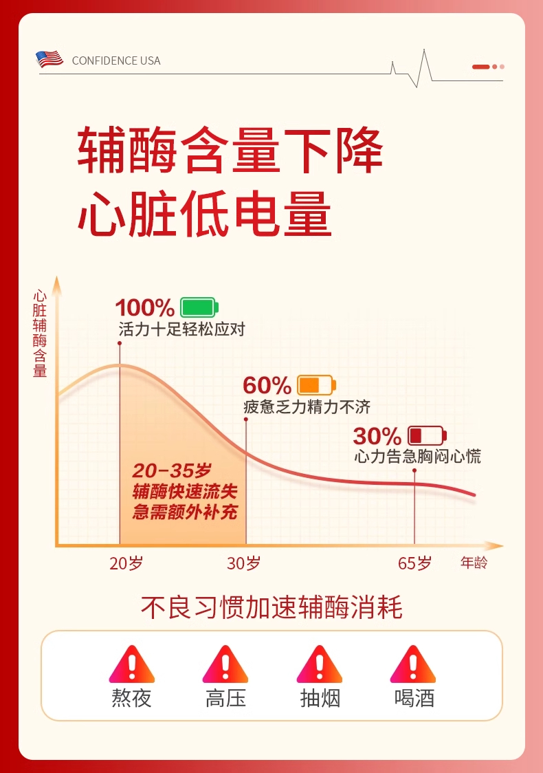 改善疲劳感和耐力下降:不少中老年人觉得“走几步就累”,可能就是ATP生成效率下降,Q10能帮身体恢复能量循环。