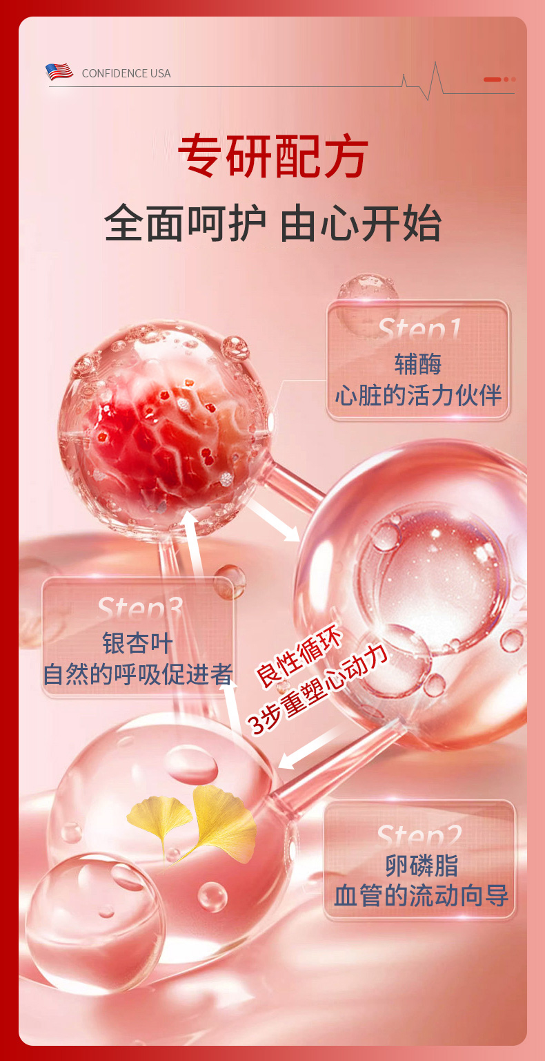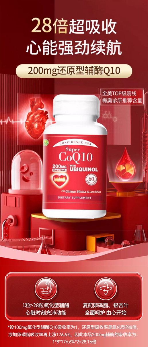 提升心脏供能:心脏是最耗能器官,Q10能直接支援心肌代谢,缓解“供电不足”带来的心悸、气短、胸闷等状态。