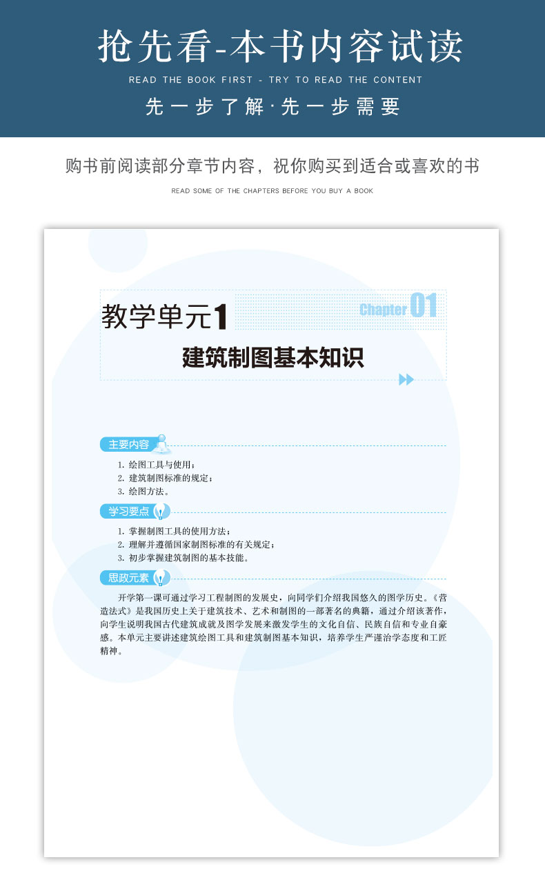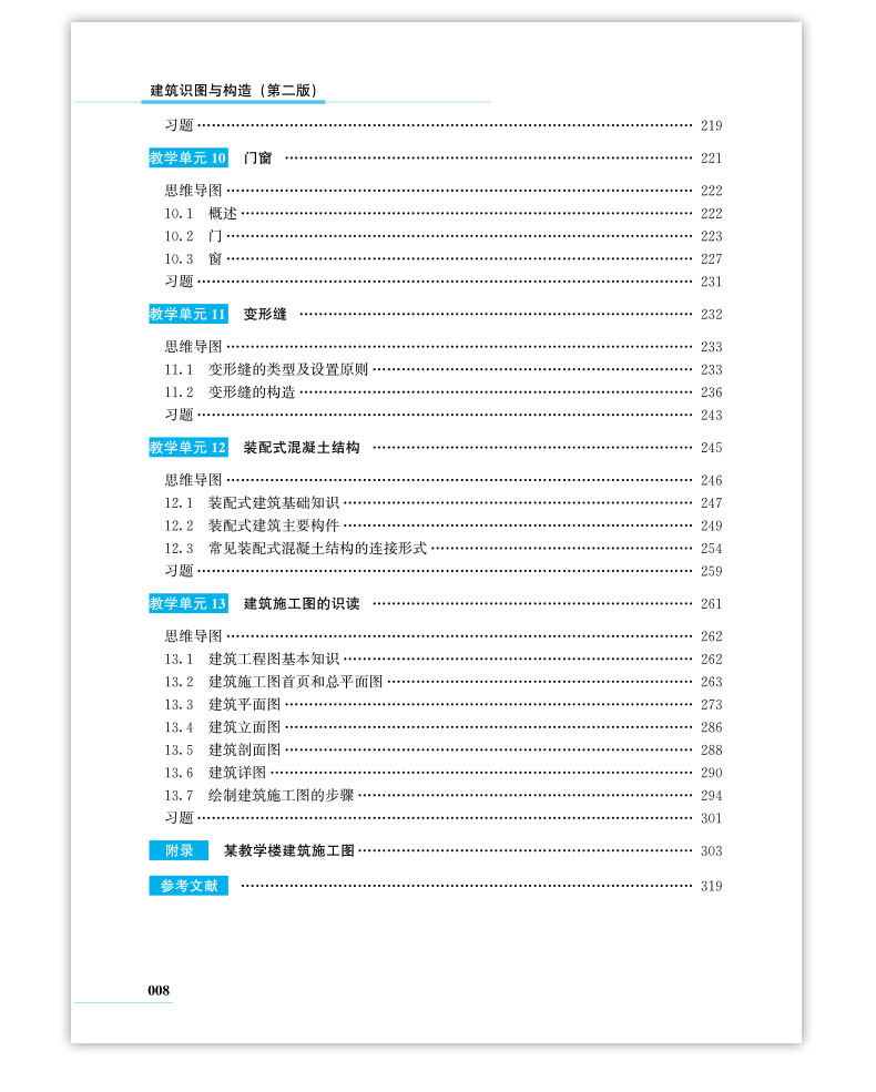 本书主要有建筑制图基本知识、建筑构造和建筑识图三部分组成。第一部分为建筑制图基本知识,主要包括建筑制图标准、投影基本知识和剖面图与断面图;第二部分为建筑构造,主要包括民用建筑概述、基础与地下室、墙体、楼地层、楼梯、屋顶、门窗、变形缝;第三部分为建筑施工图的识读。本书内容系统全面,易懂易记,具有较强的实用性,可作为建筑类相关专业及建筑施工企业技术和管理人员阅读和参考。本书配有二维码视频、动画等多媒体资源。