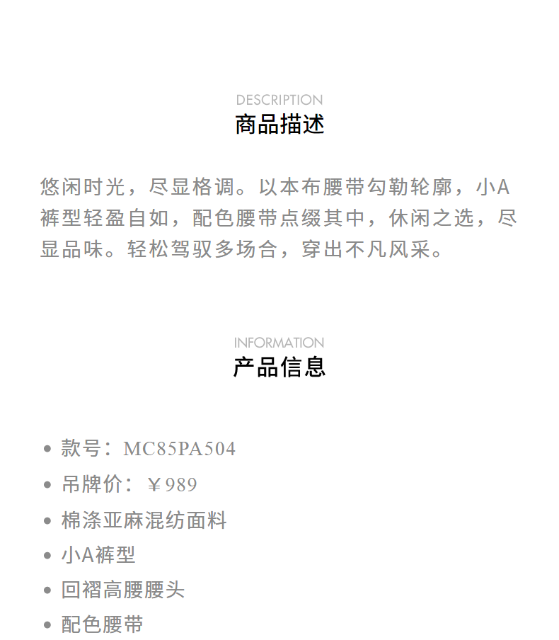 【贵雅日常-商场同款】MAXRIENY*休闲感本布腰带高腰A字短裤(货号:MC85PA504)