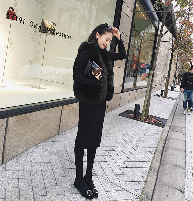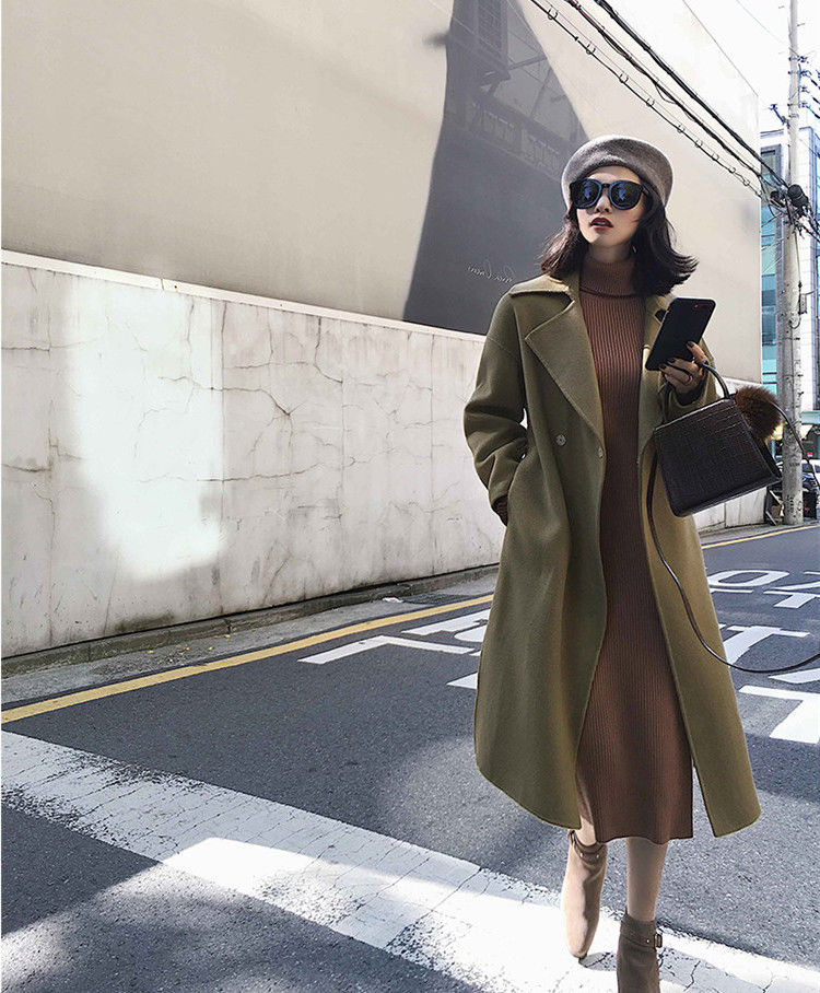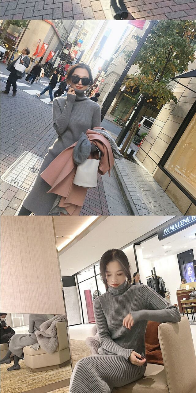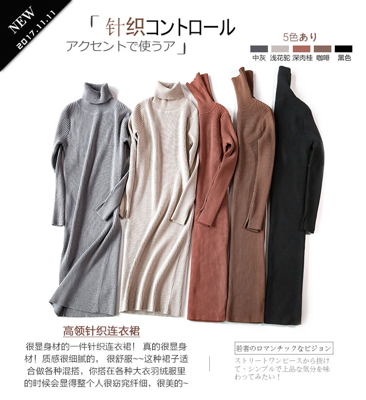针织连衣裙女长袖中长款2021秋冬新款保暖高领加厚过膝毛衣打底裙