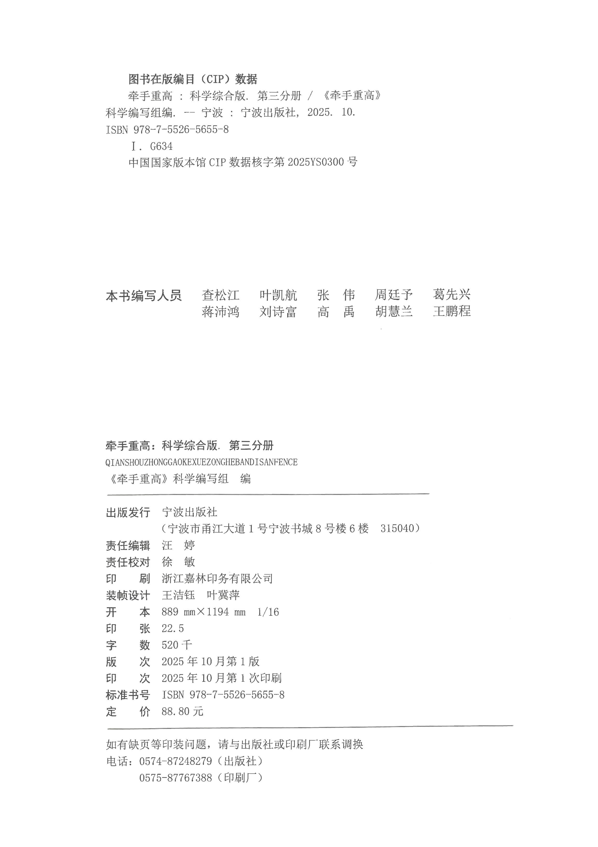 牵手重高 科学综合版 第三分册