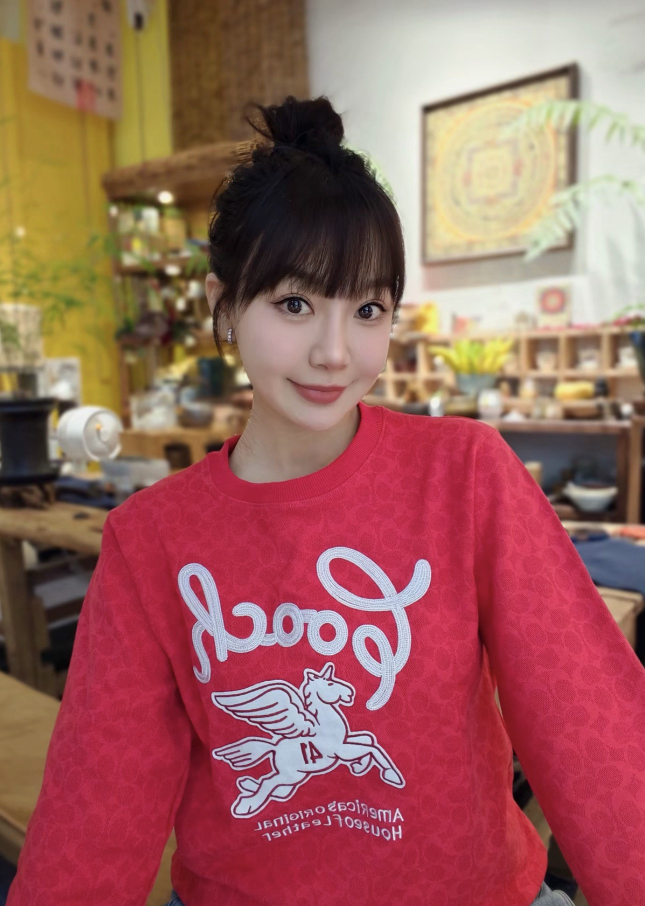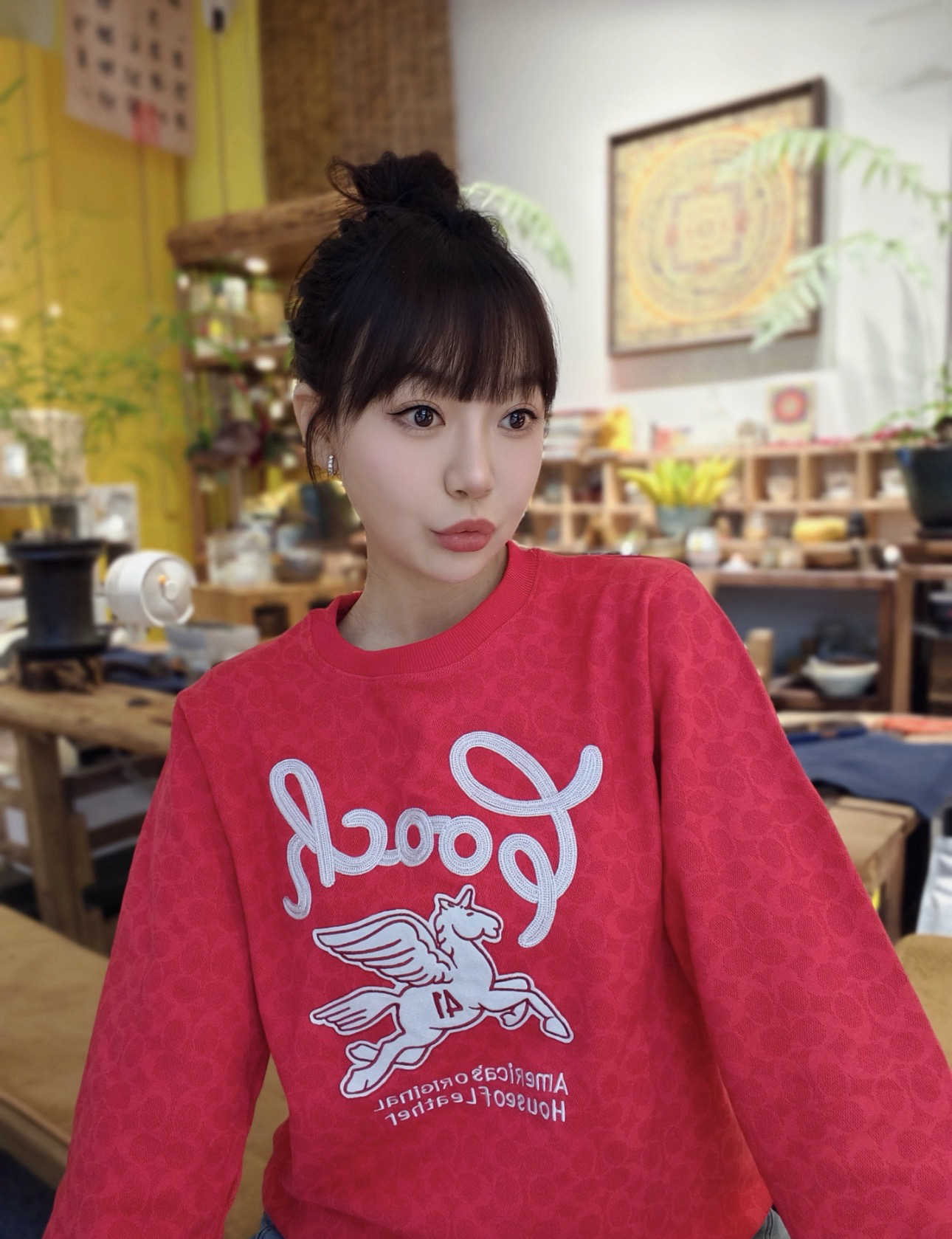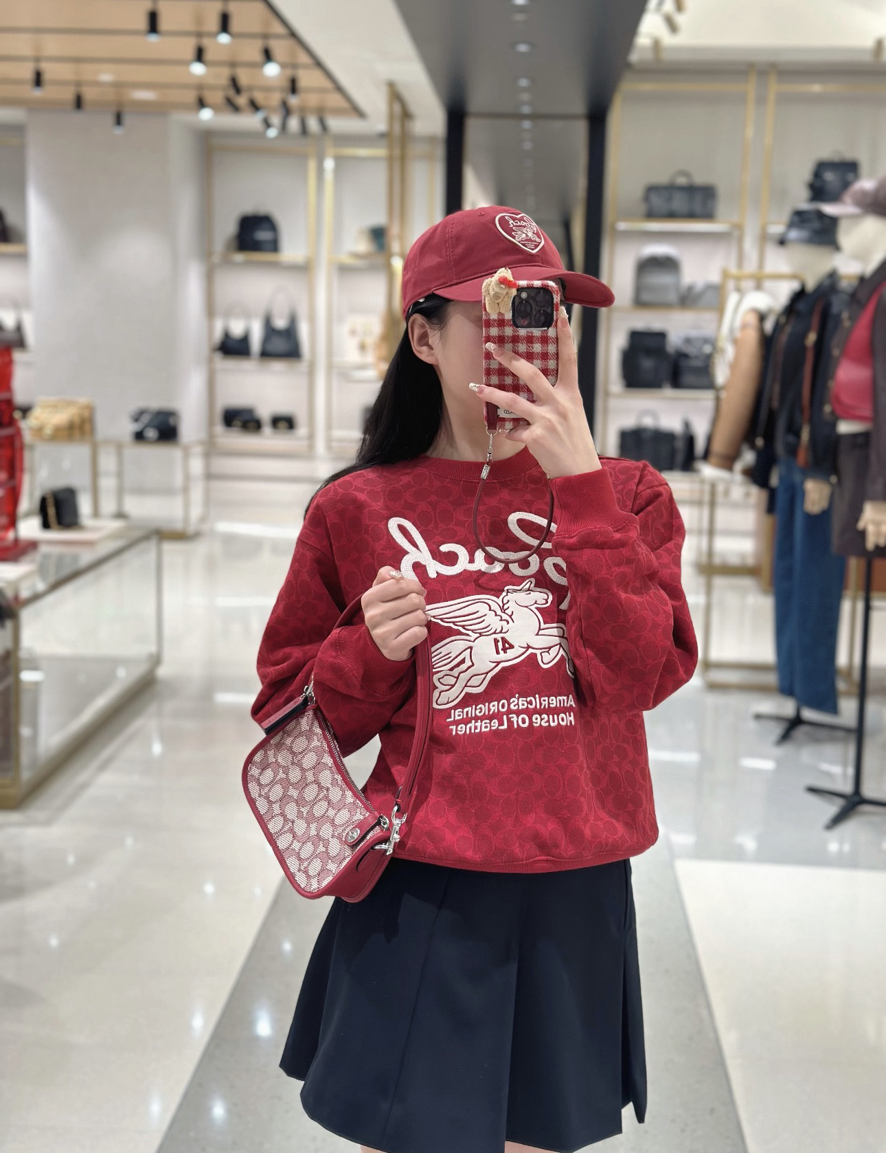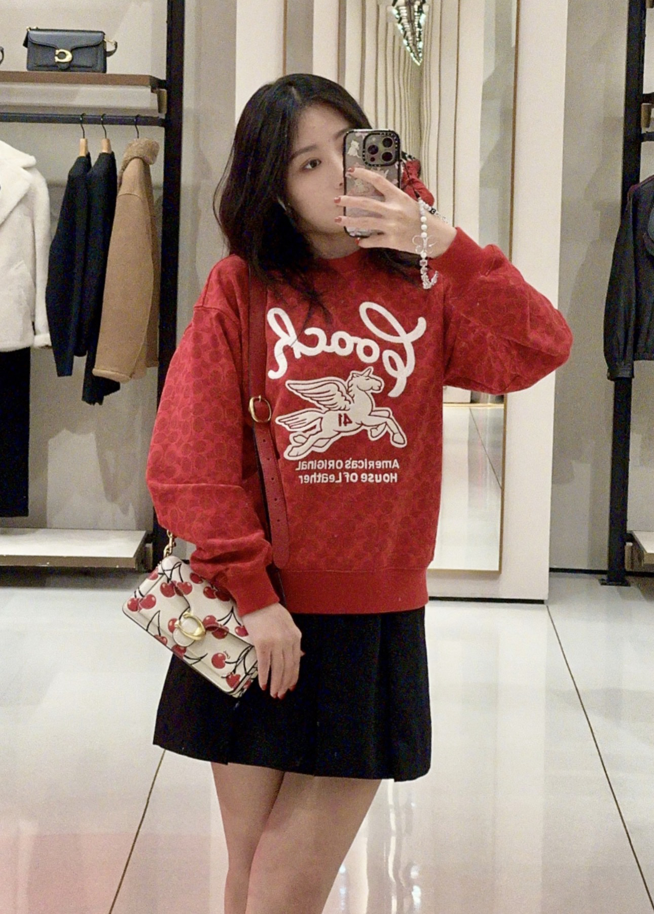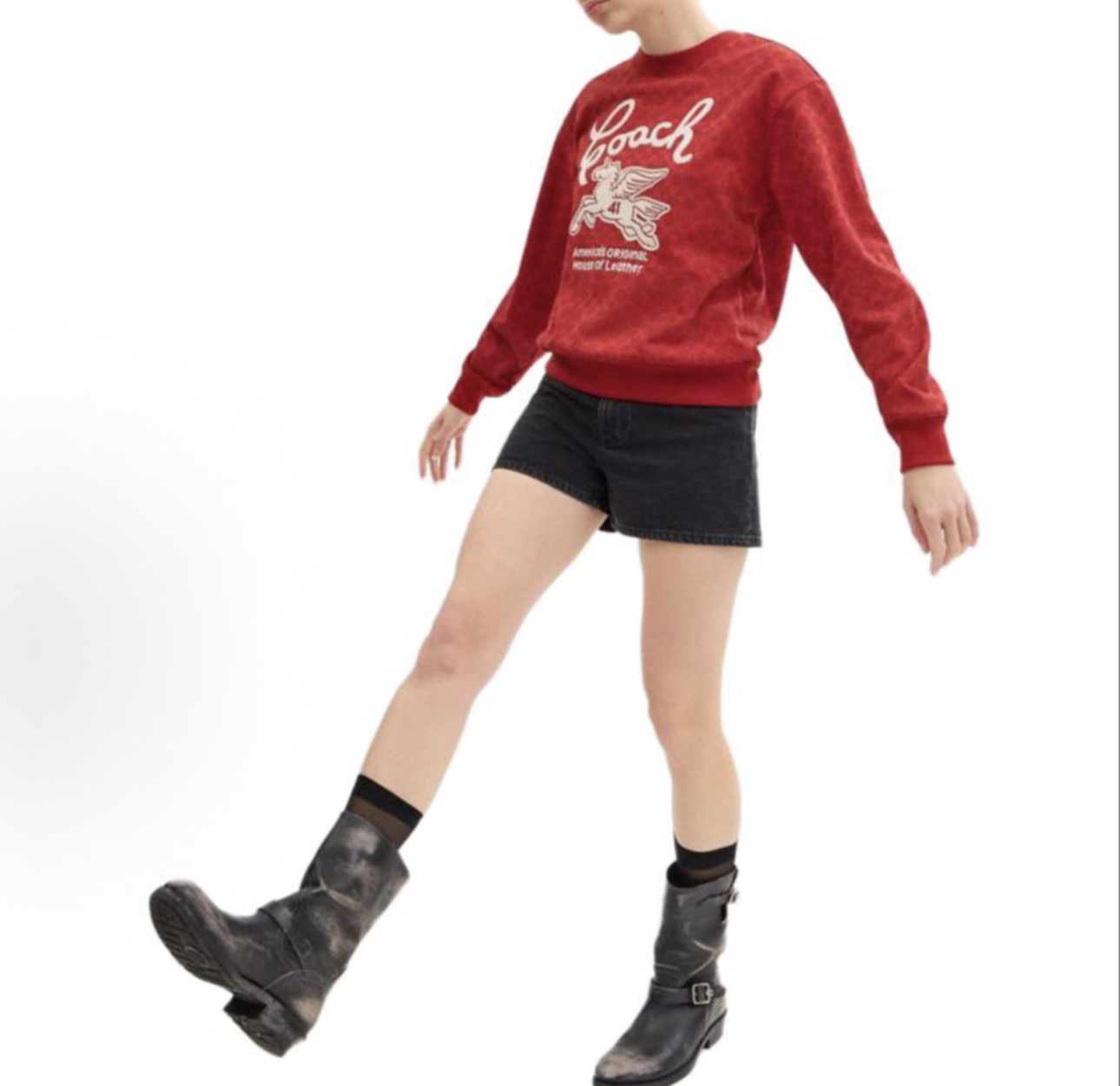 Coach家的经典满印老花logo非常有辨识度 高级感十足,胸前的飞马刺绣标识做装饰 精致贵气而不失优雅,搭裤装或裙装都毫不违和,喜庆吸睛的红色过年穿正合适!💰179顺丰包邮 国内代工厂订单余裁 纯原 最新款Coa*h蔻*女士飞马刺绣针织卫衣~某物在售1890 只有红色,标牌齐全 推荐自留,可作为新年礼物🎁直接送人!