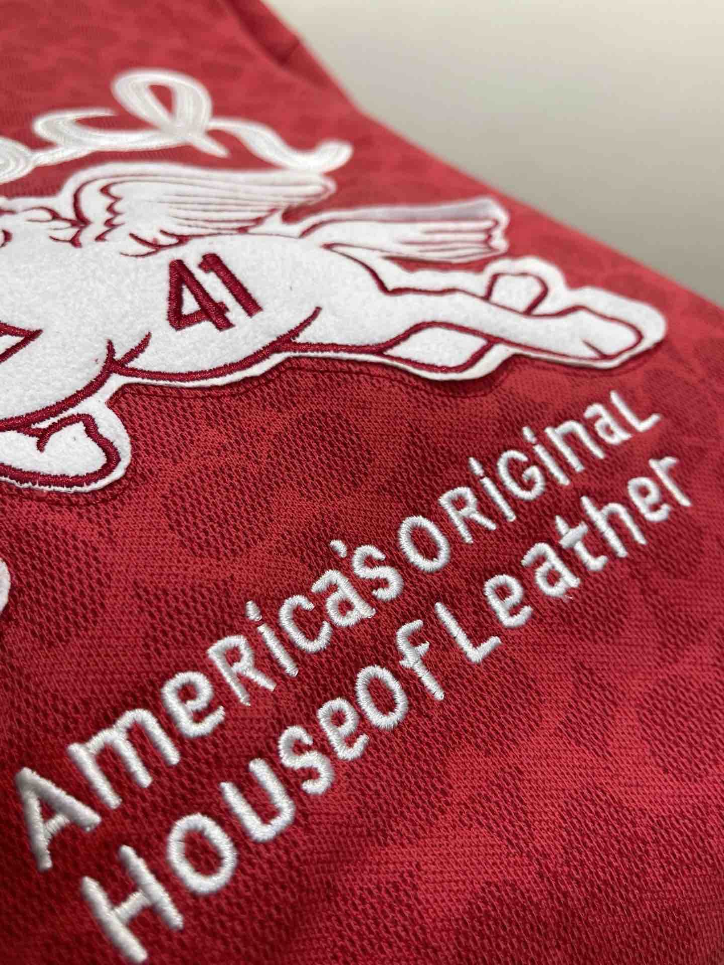采用客供定织的100%棉面料 柔软亲肤,拿在手中很有质感,整体经典的满印老花极具品牌辨识度,复古美式风格的潮流感满满,胸前的字母刺绣工艺 细密精致,骏马腾飞的贴标完美融合新年主题,时髦洋气 非常吸睛!