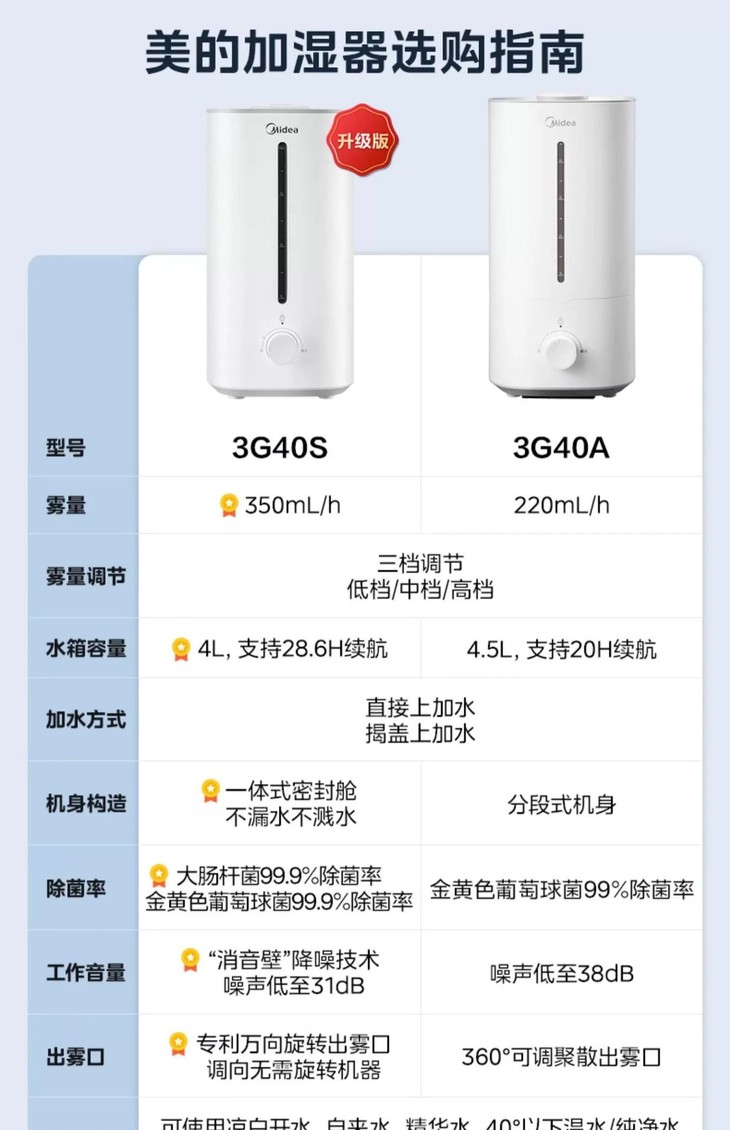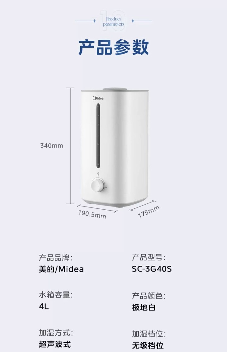 【美的Midea 空气加湿器SC-3G40S】孕妇婴儿家用卧室小型空调增湿器