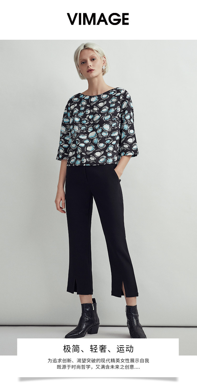 VIMAGE纬漫纪夏季新款女装无袖圆领雪纺不规则下摆上衣T恤女V513032