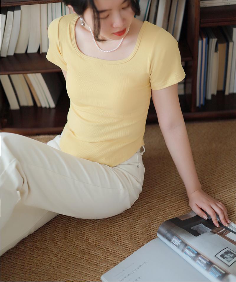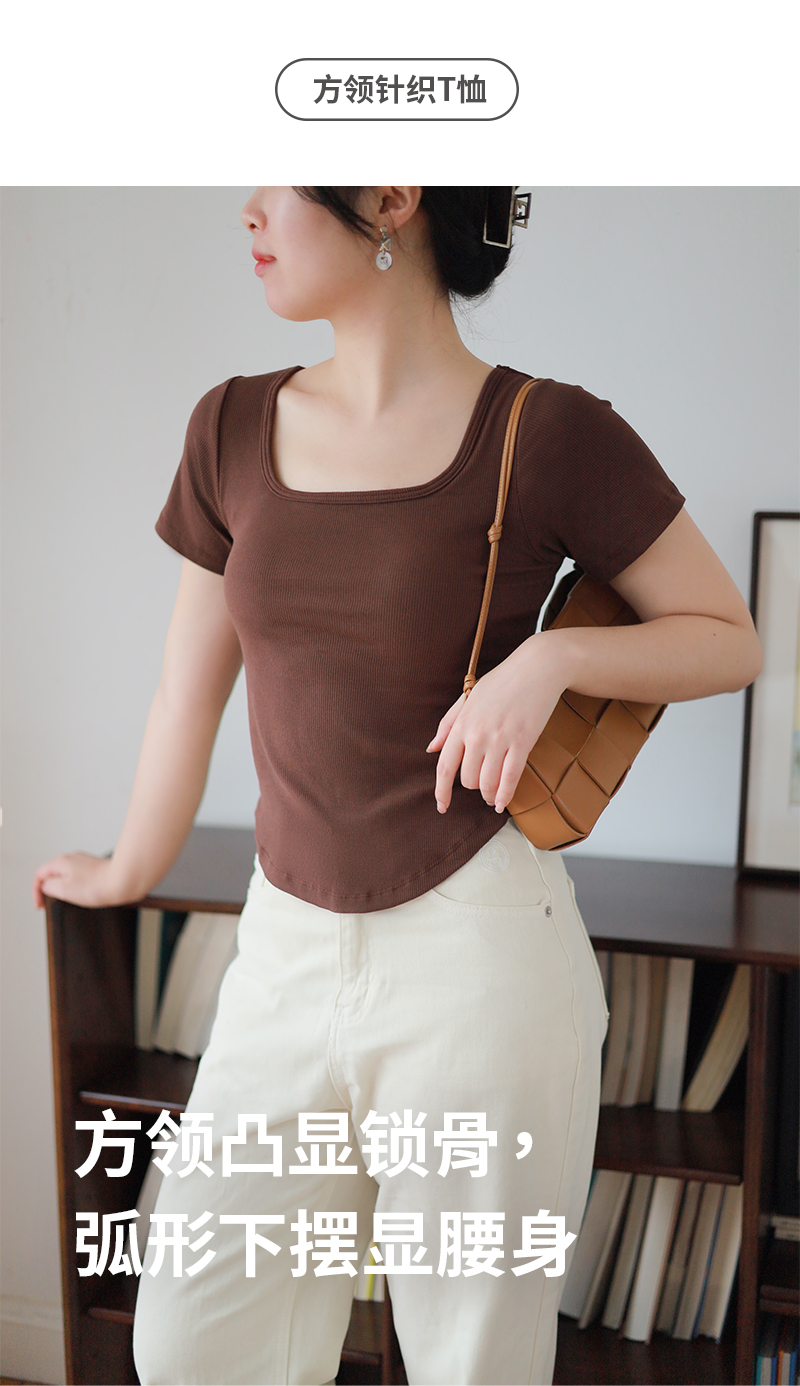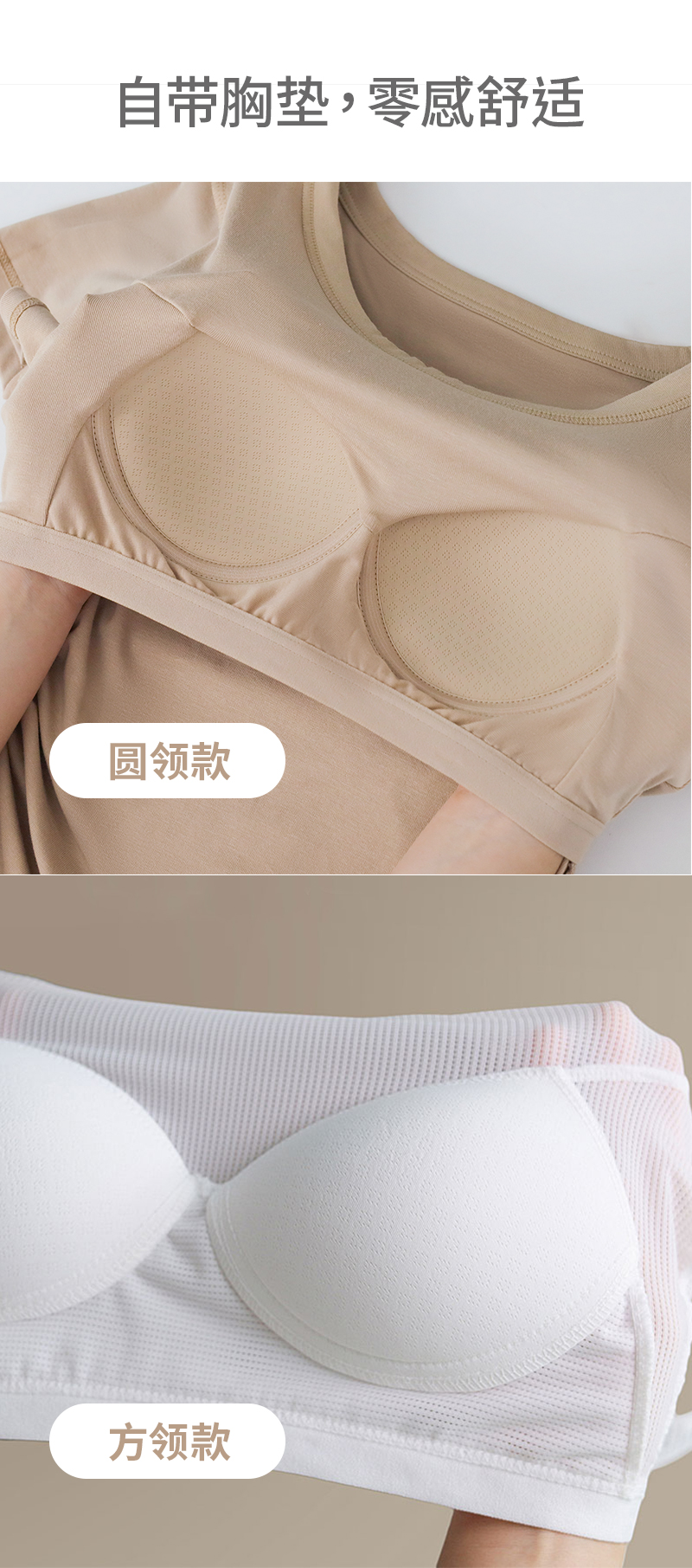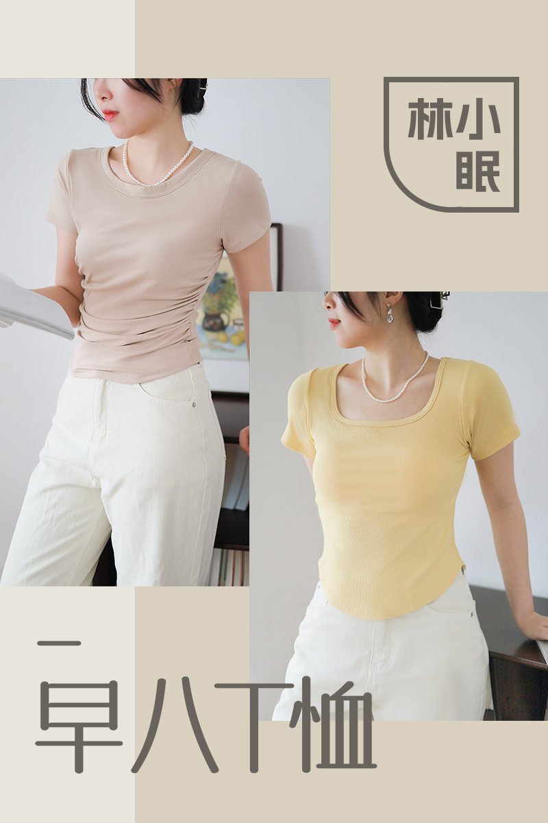 (粉丝专属)林小眠·早八T恤丨带胸垫T恤,方领、圆领两款可选,单穿、内搭超方便