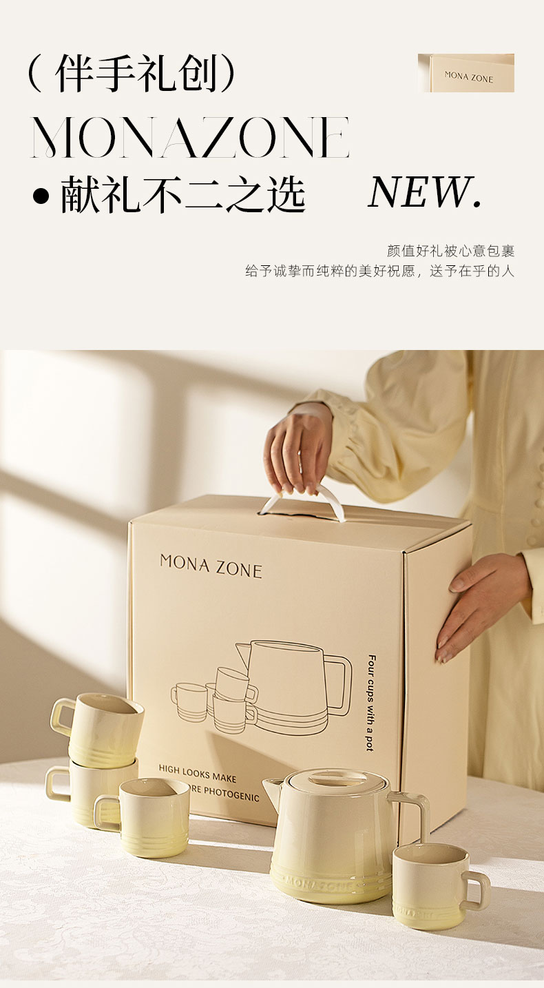 摩登主妇MONAZONE陶瓷泡茶壶家用2024新款茶水壶水杯茶具套装礼盒