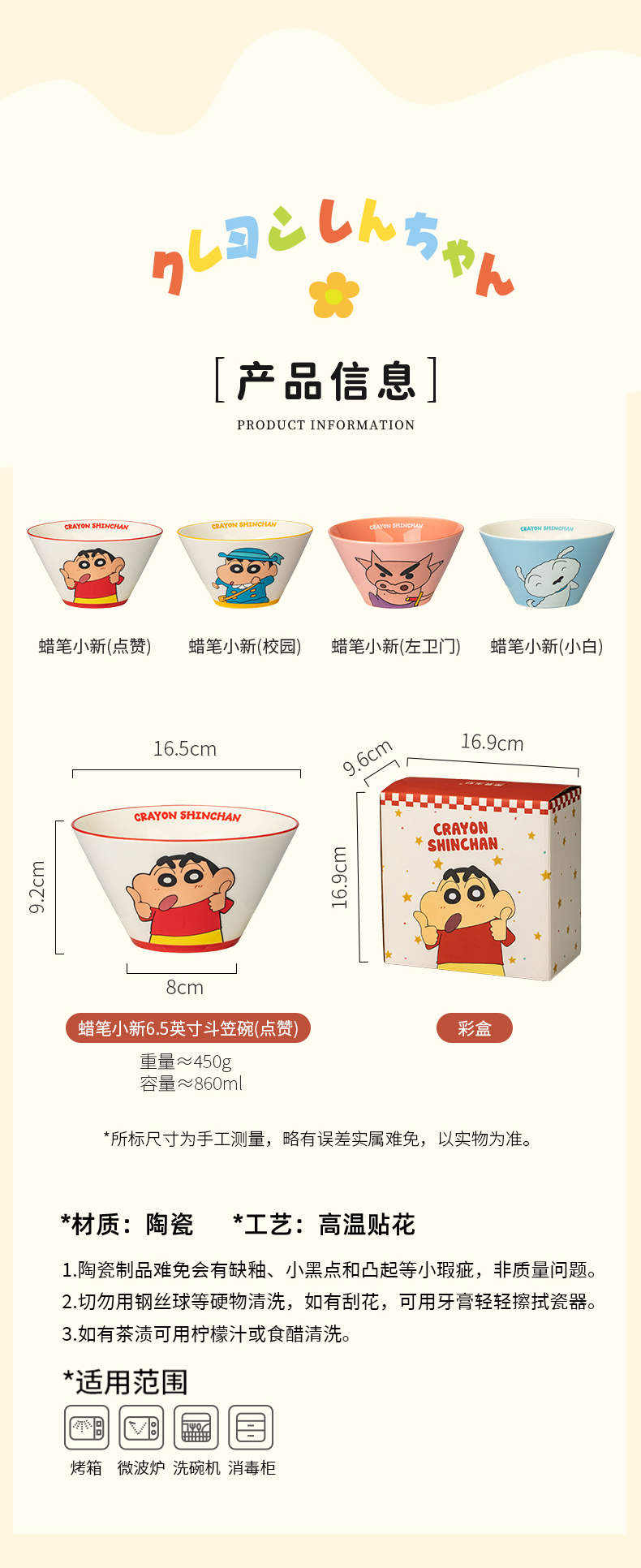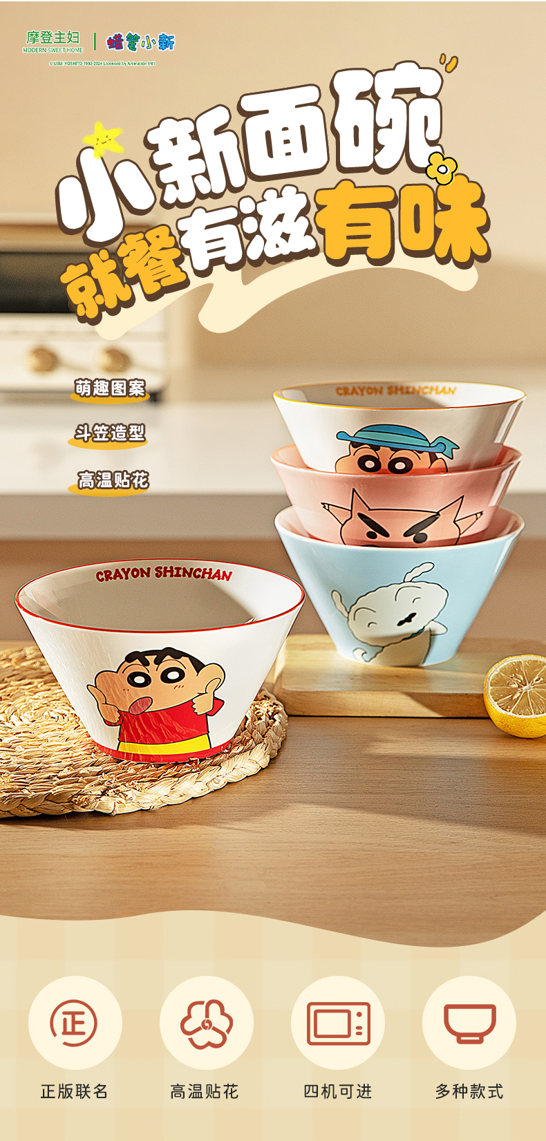 摩登主妇&蜡笔小新 面碗家用餐具泡面碗斗笠拉面碗吃面汤面碗