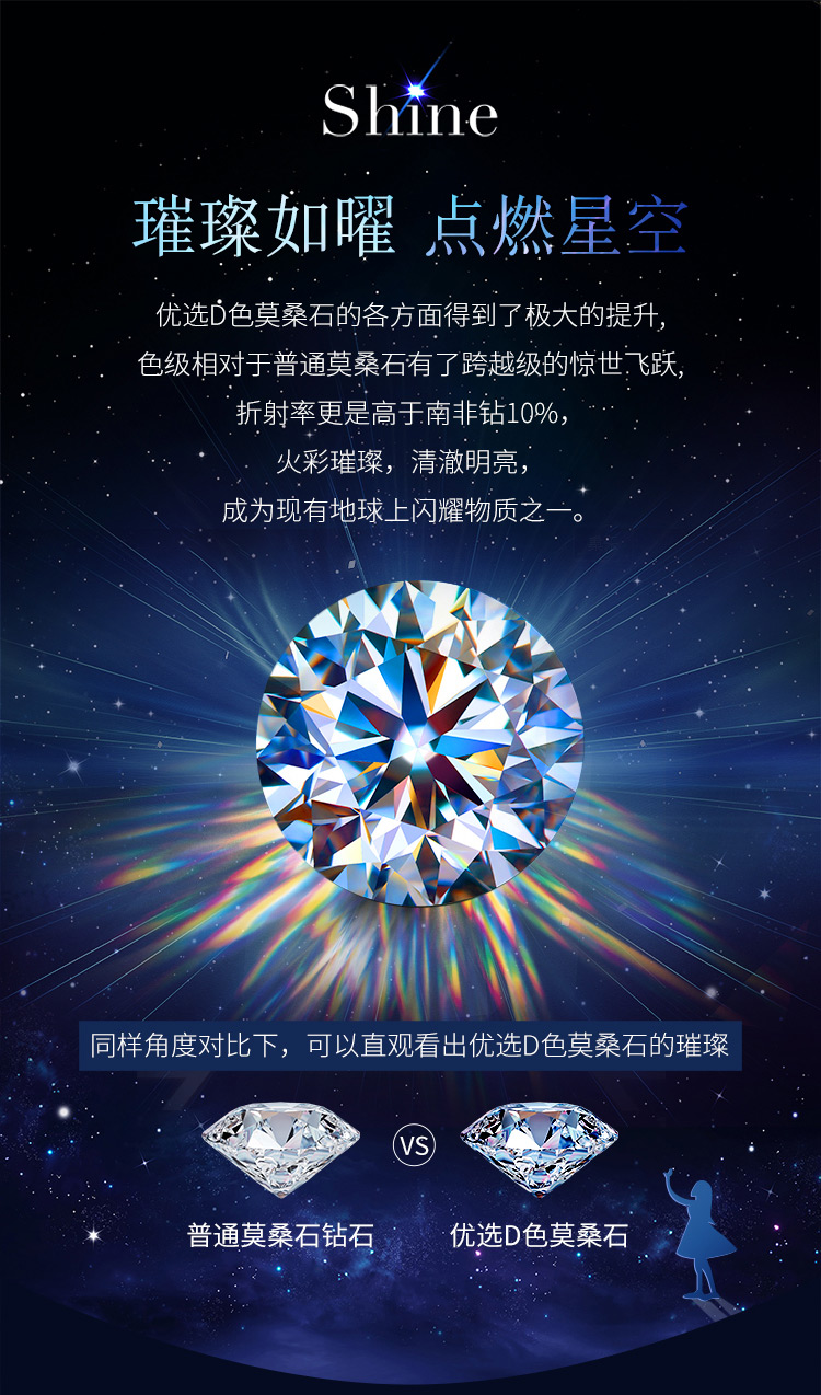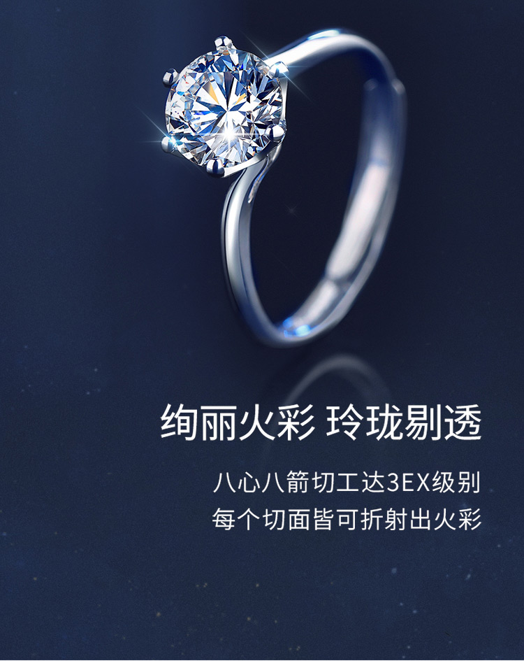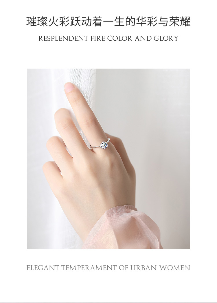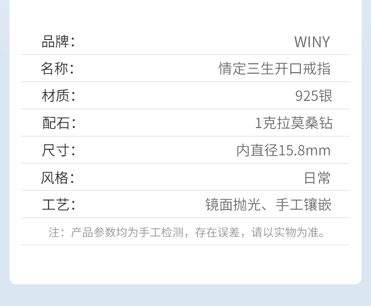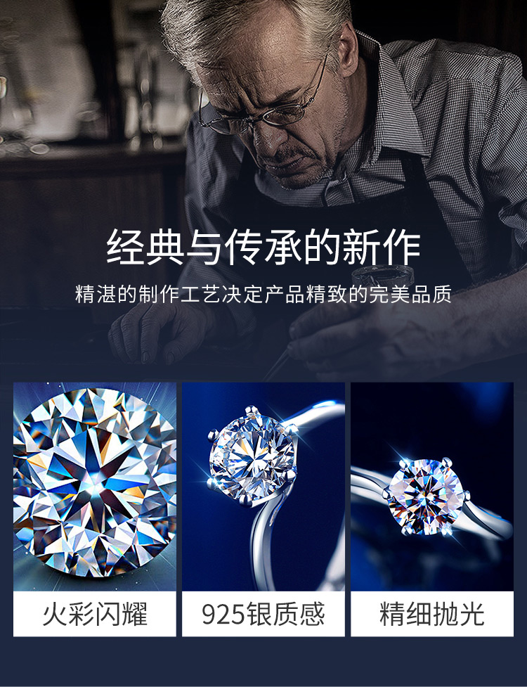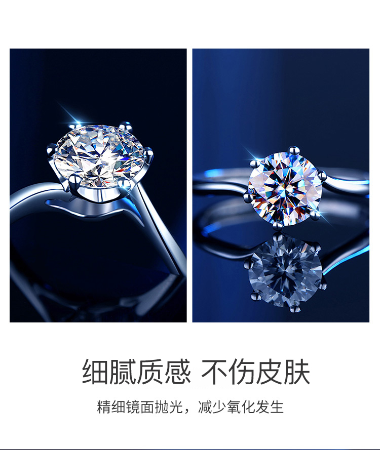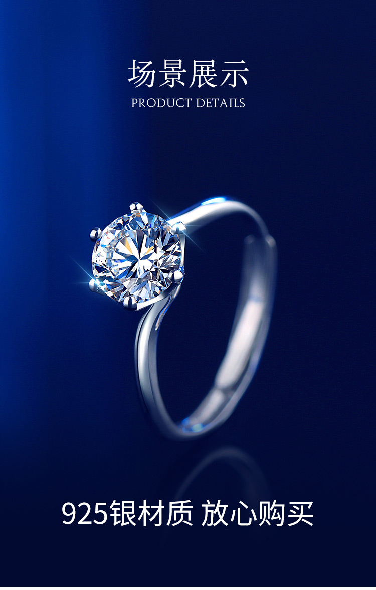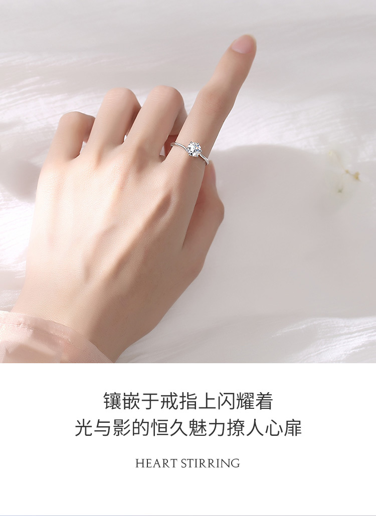 Winy925银情定三生莫桑钻戒配证书送女友闺蜜节日礼物