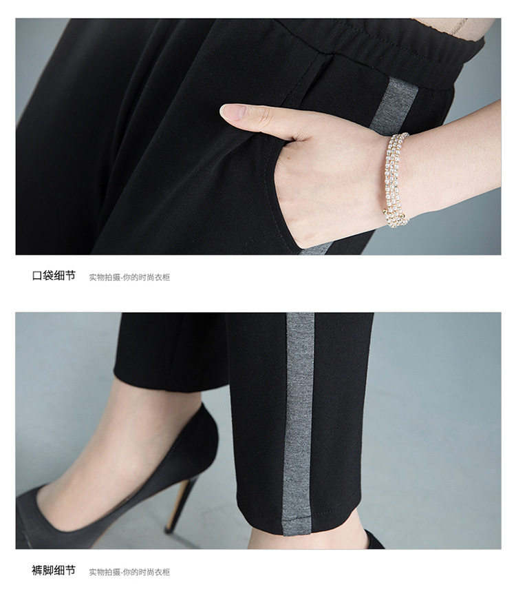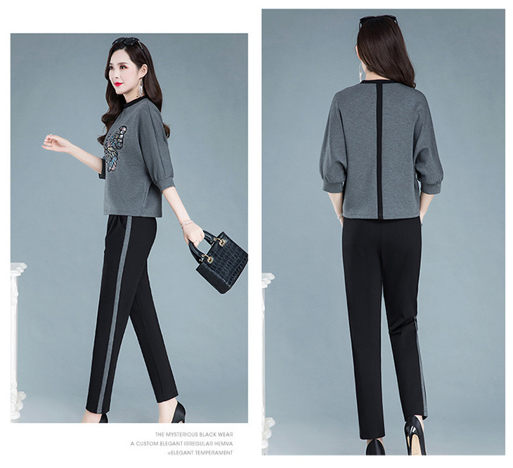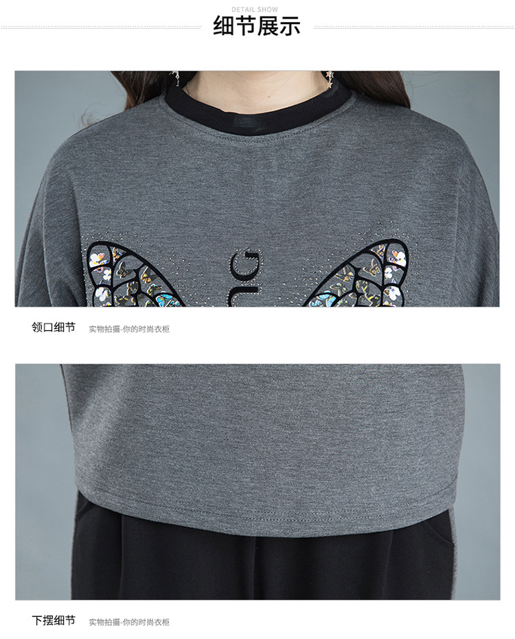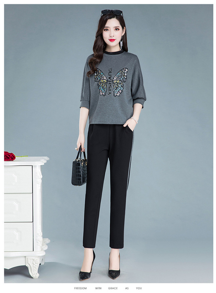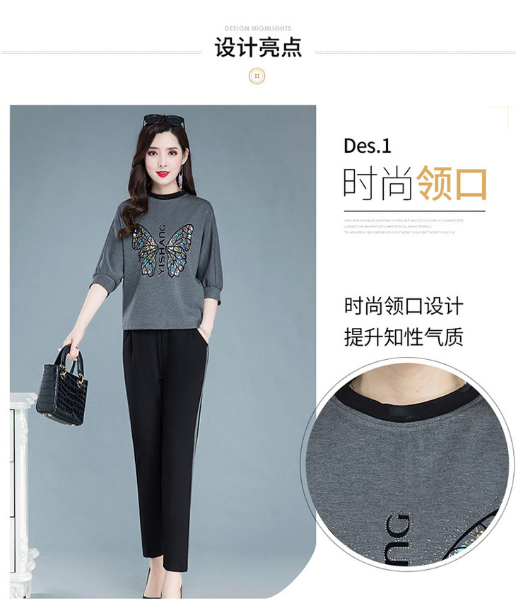 QYM-XYKL-QM03-Y新款时尚气质休闲圆领七分袖蝴蝶印花上衣运动裤两件套