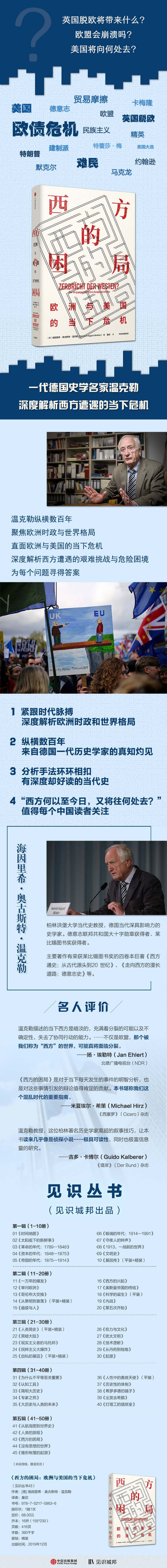 英国脱欧将带来什么?欧盟会崩溃吗?美国将向何处去?一代德国史学名家温克勒纵横数百年,聚焦欧洲时政与世界格局,直面欧洲与美国的当下危机,深度解析西方遭遇的艰难挑战与危险困境,为每个问题寻得答案