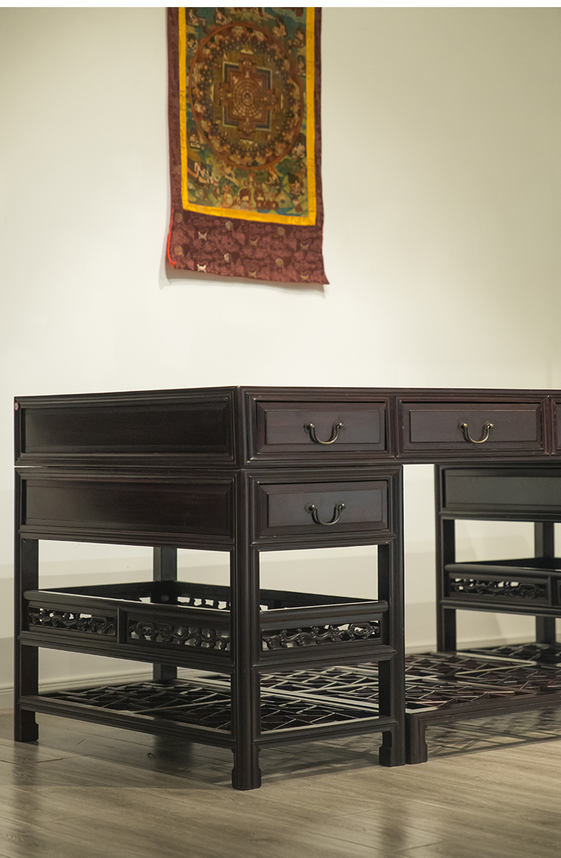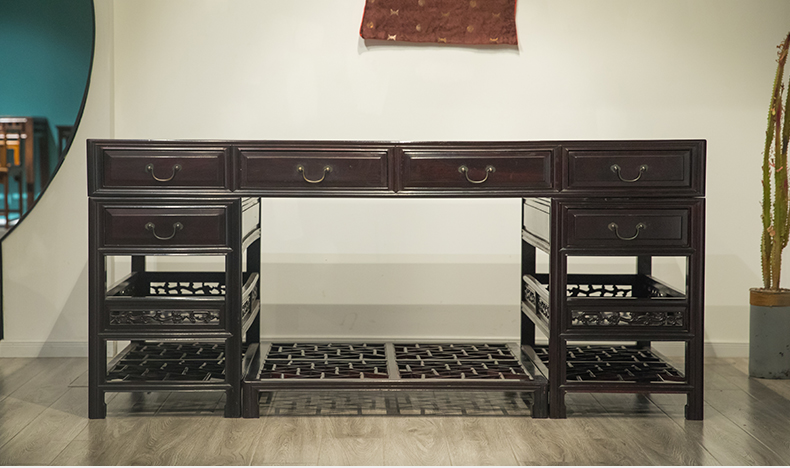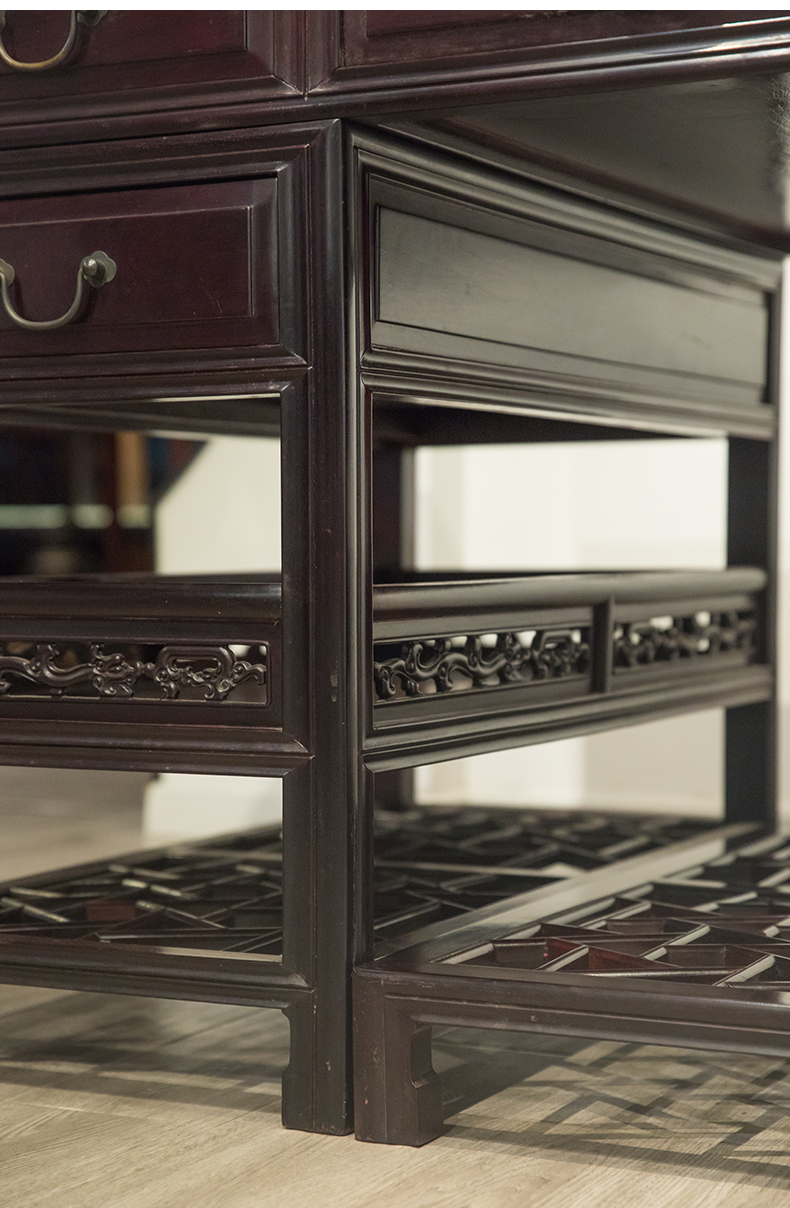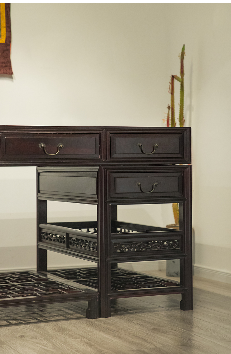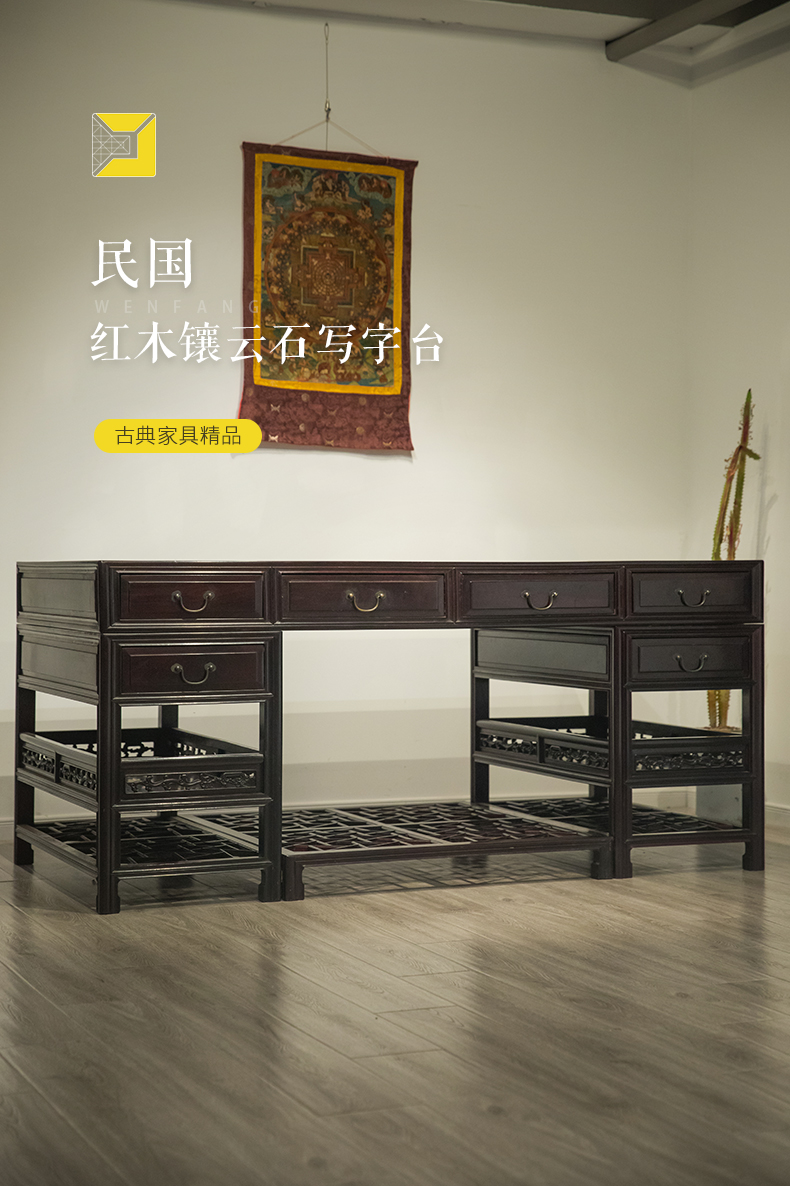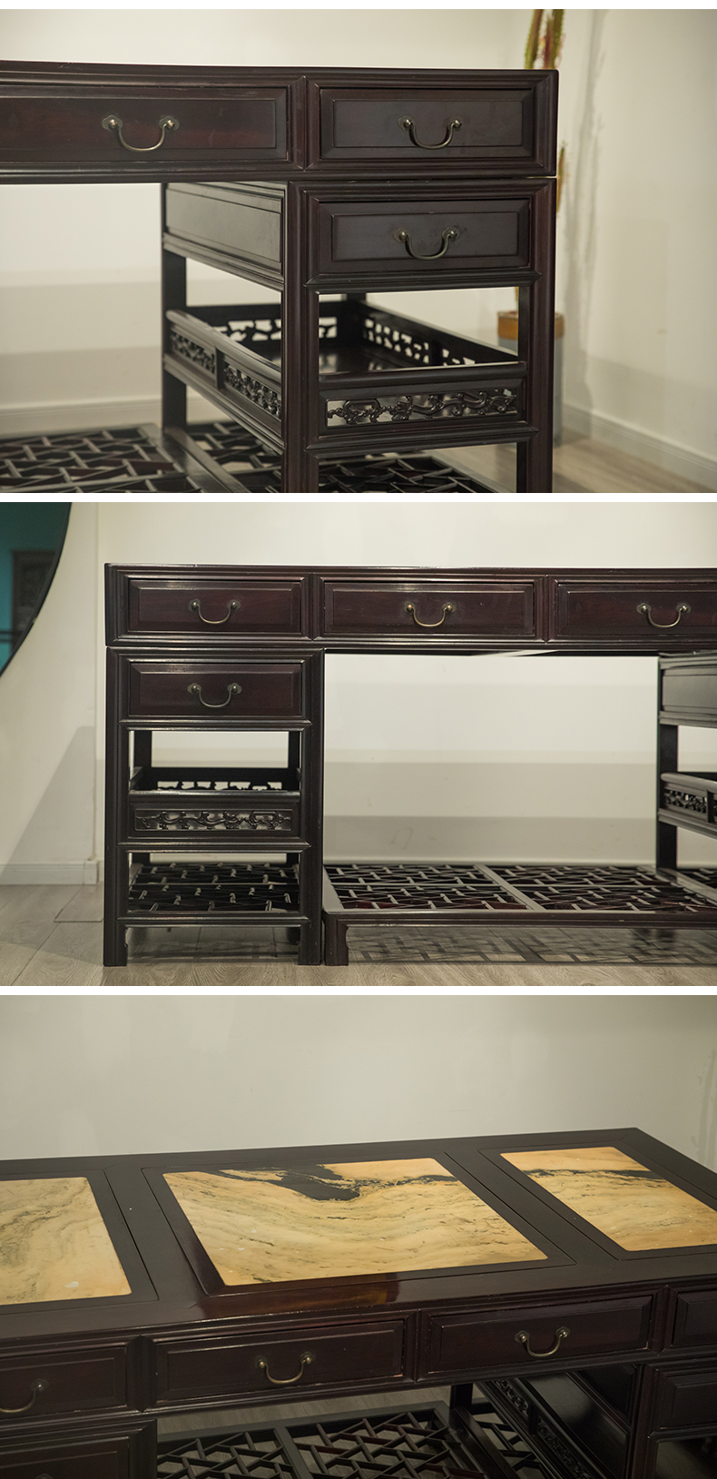 清 黄花梨镶绿石透雕螭龙纹大插屏