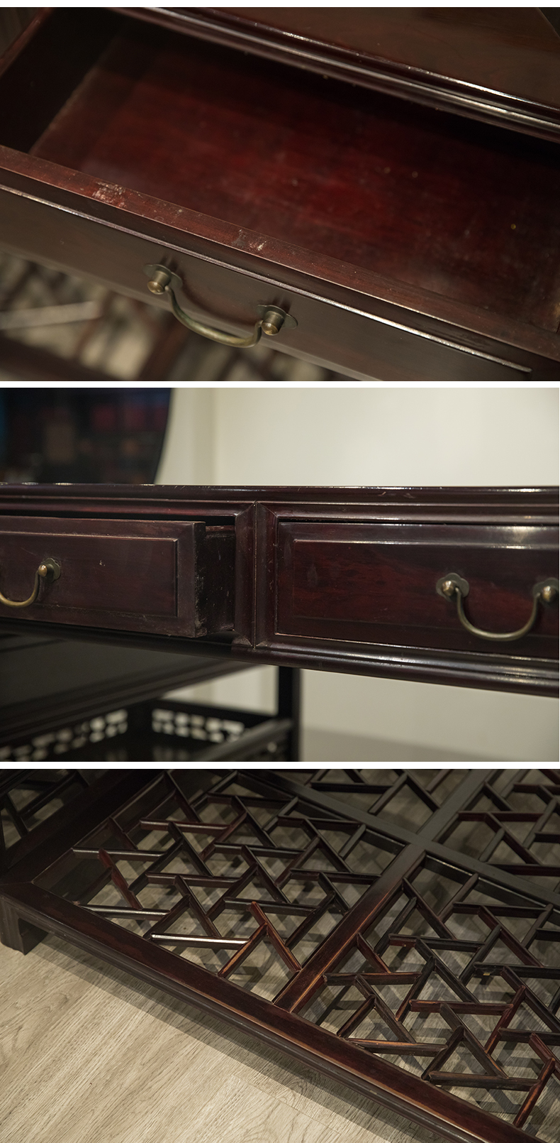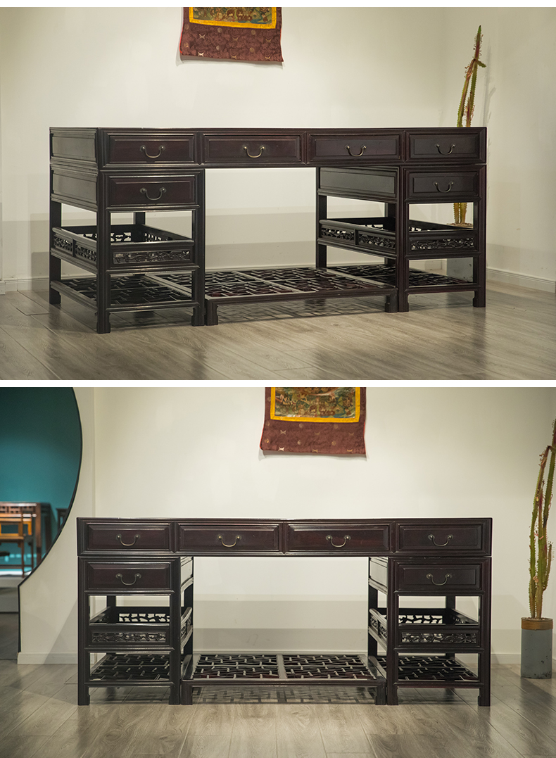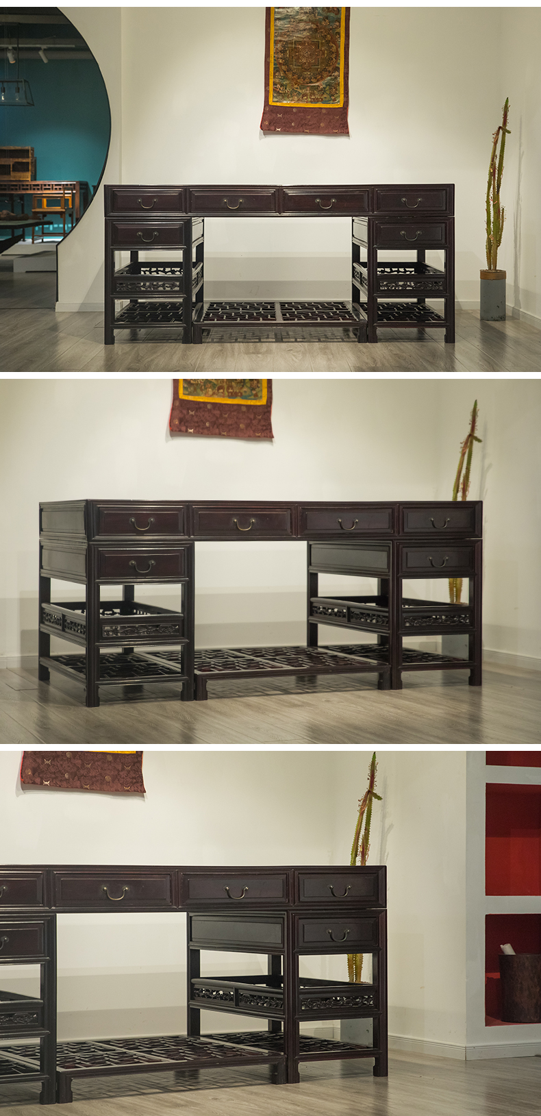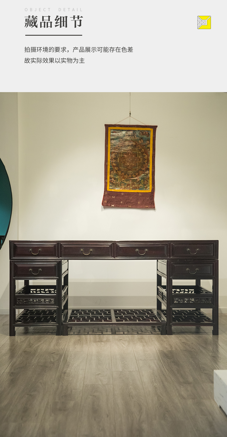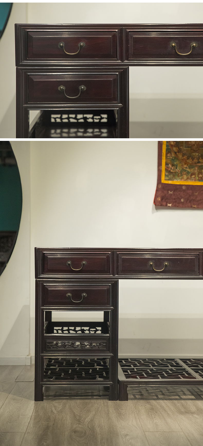 清 黄花梨镶绿石透雕螭龙纹大插屏