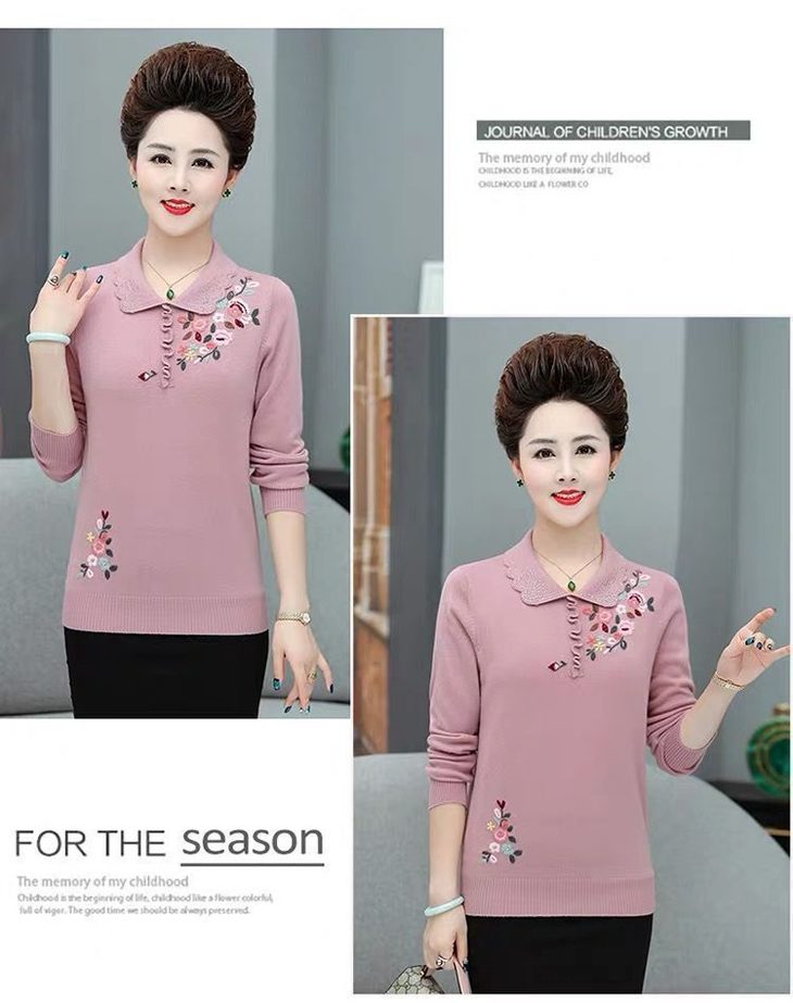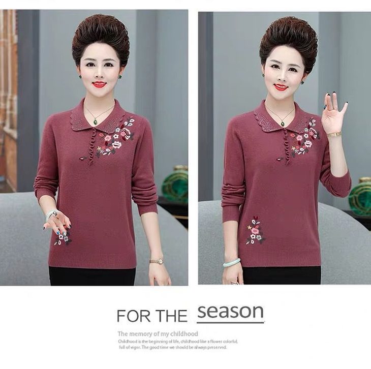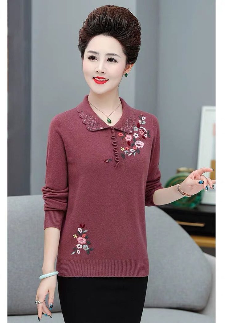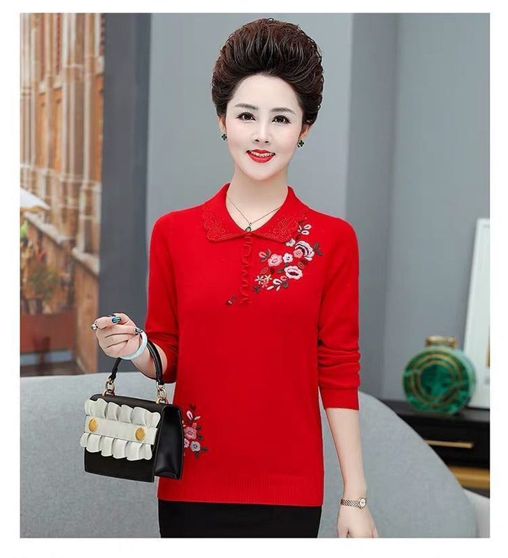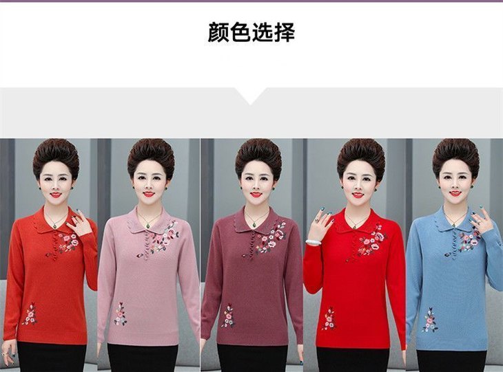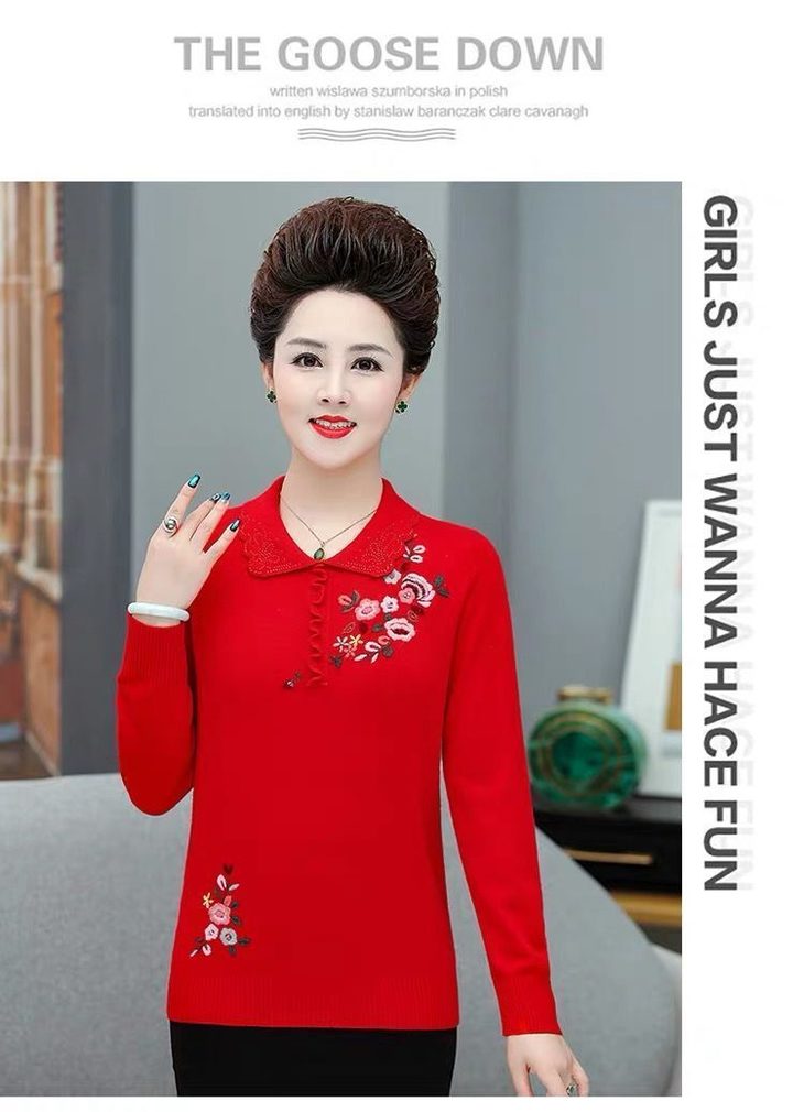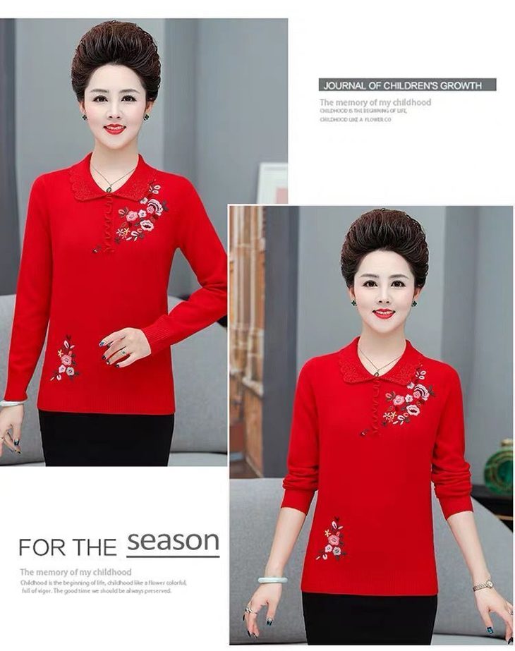 JXG-妈妈装毛衣打底衫红色本命年针织衫加肥加大码中老年女装长袖上衣