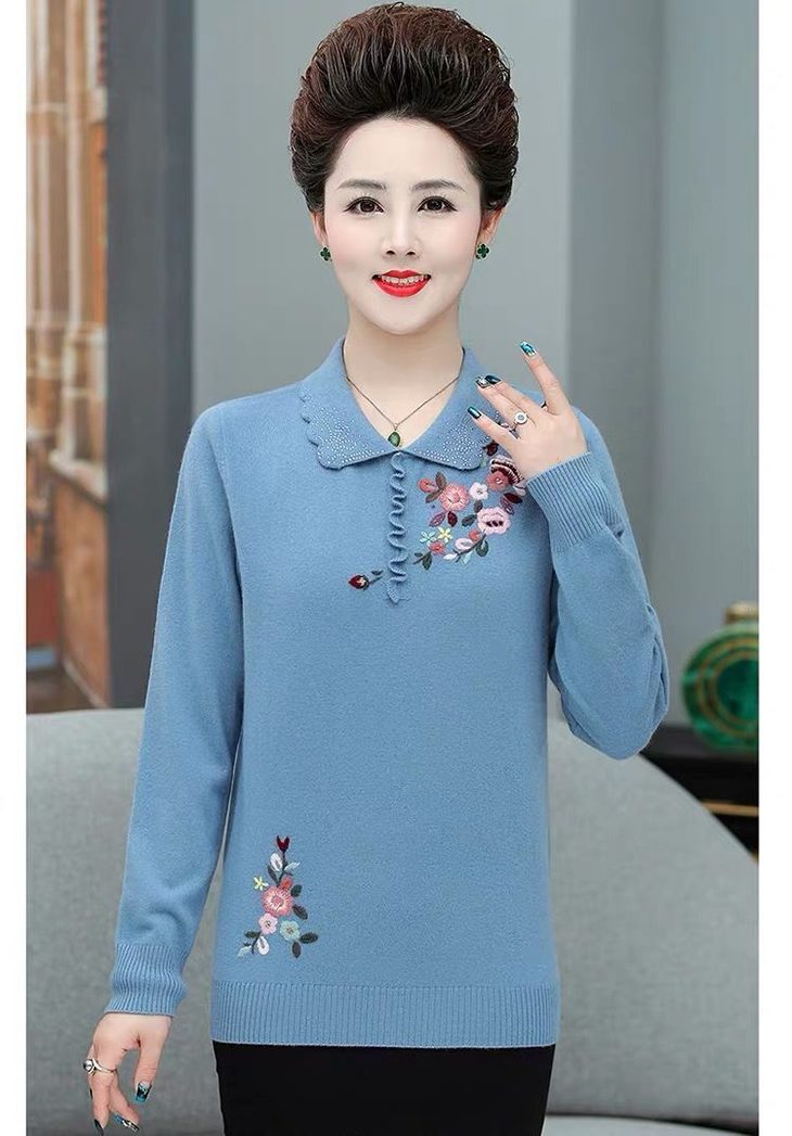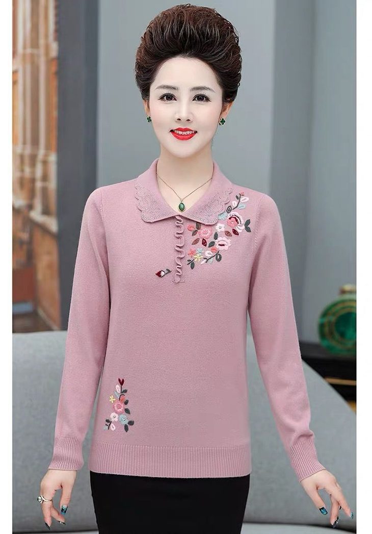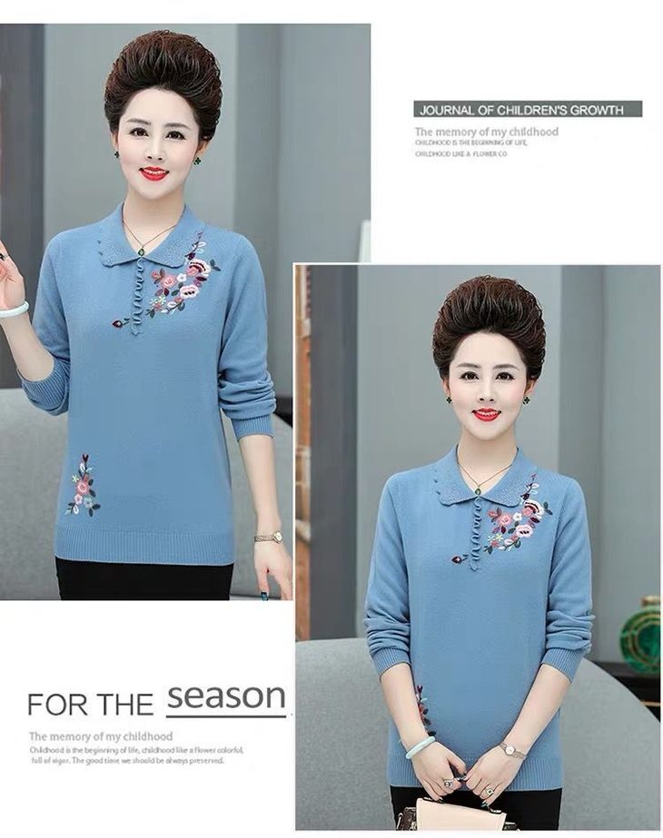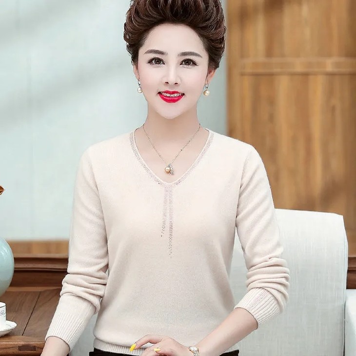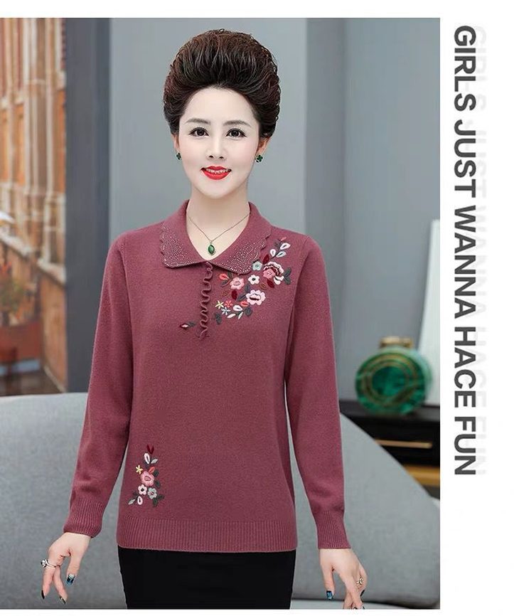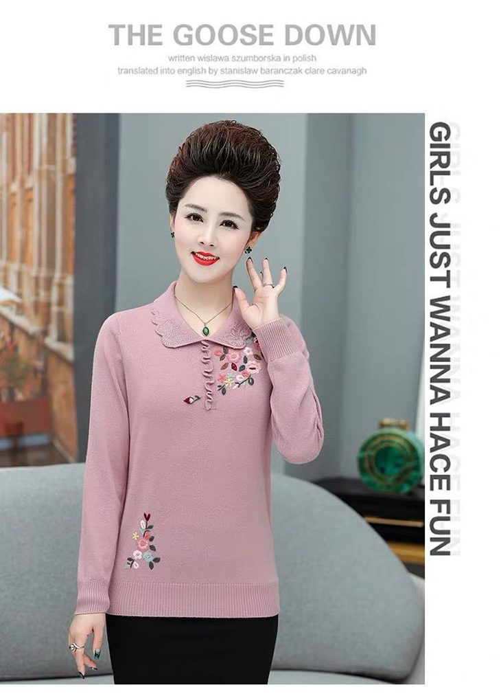 JXG-妈妈装毛衣打底衫红色本命年针织衫加肥加大码中老年女装长袖上衣