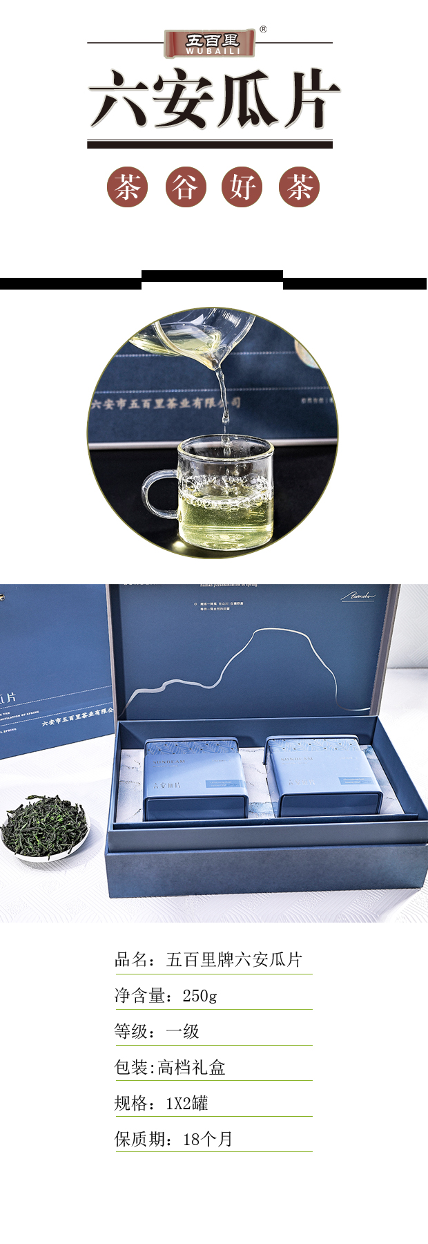 五百里 六安瓜片 一级新茶 250g(2听x125g)