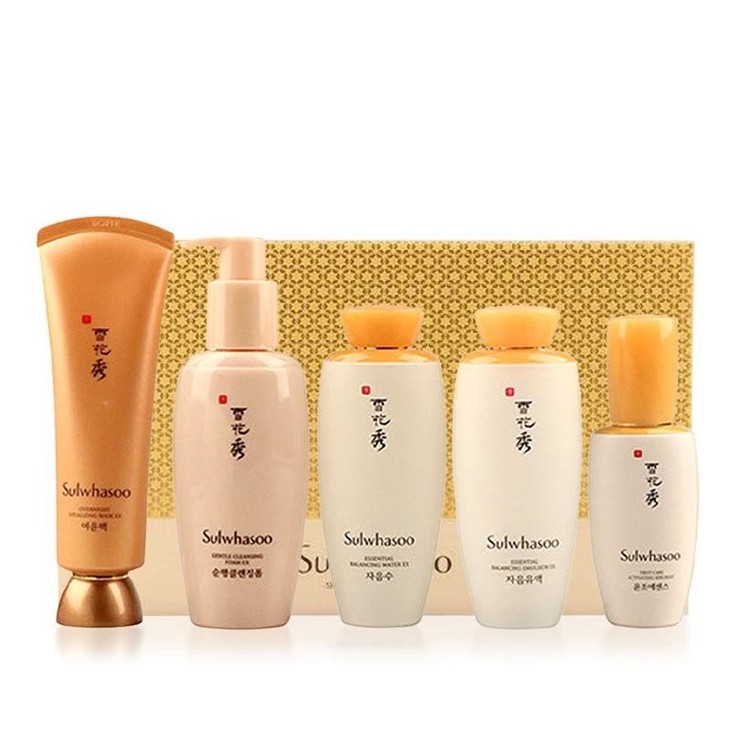 雪花秀美颜之径五件套👍套盒主打去黄抗皱补水保湿,调节滋养肌肤由内而外莹润光泽🤩。其中当家花旦润燥精华,俗称3秒水前精华⏰,帮助皮肤后续护肤品吸收,同时具备保湿补水💦祛黄紧致皮肤的作用。雨润睡眠面膜让肌肤睡饱美容觉💤,弹润细滑,密集修护。淡淡中草味儿,清爽好吸收。套盒外包装是贵气的金黄色,祛黄就用雪花秀,坚决不做黄脸婆🙅! *套装包括:润燥精华60ml+滋阴水125ml+滋阴乳125ml+雨润修护面膜120ml+洁面泡沫200ml