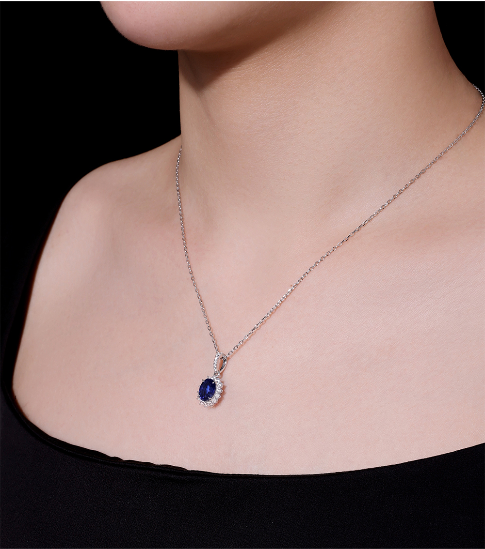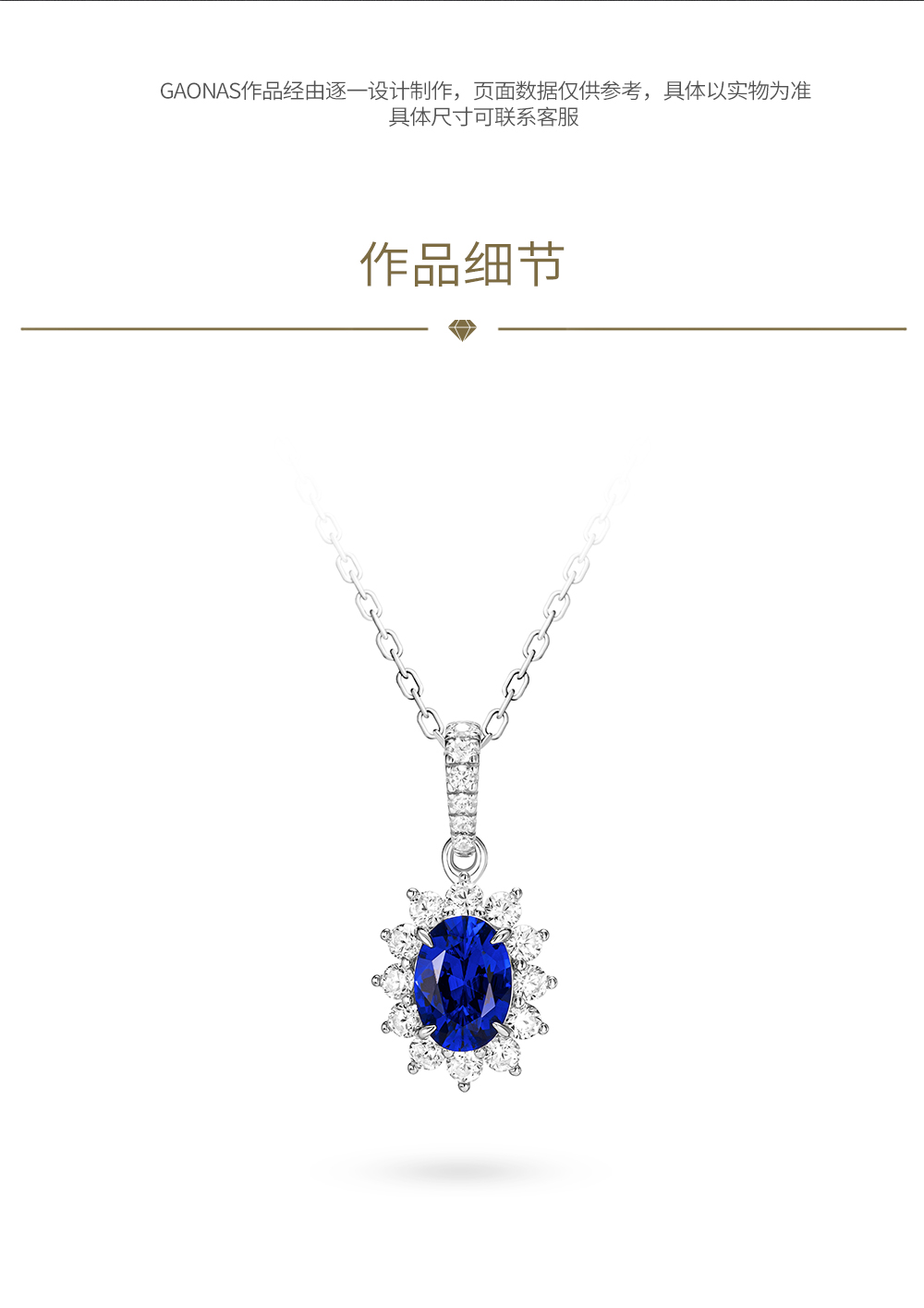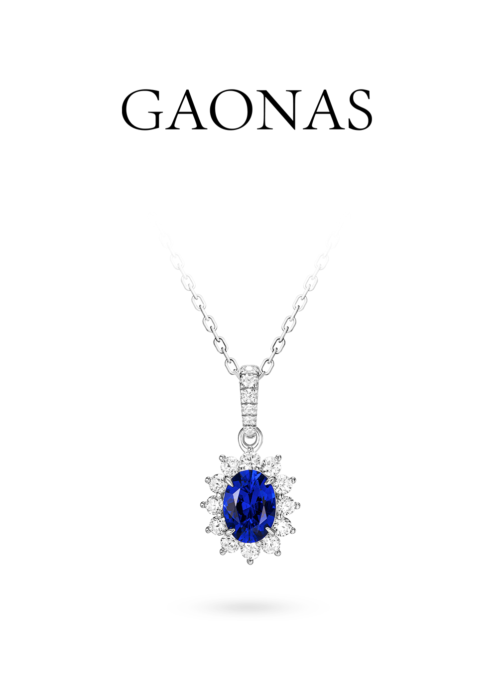 GAONAS 培育蓝宝石【矿工的眼泪】经典椭圆气质隽永蓝色项链10162DB