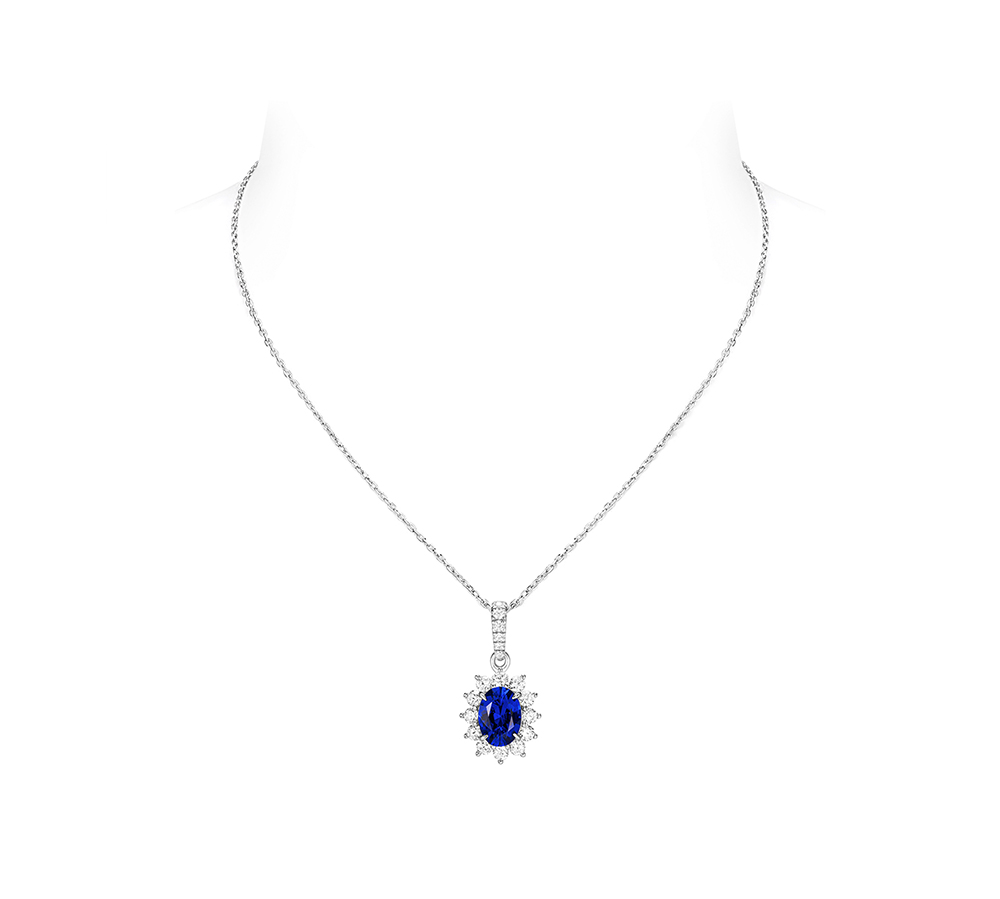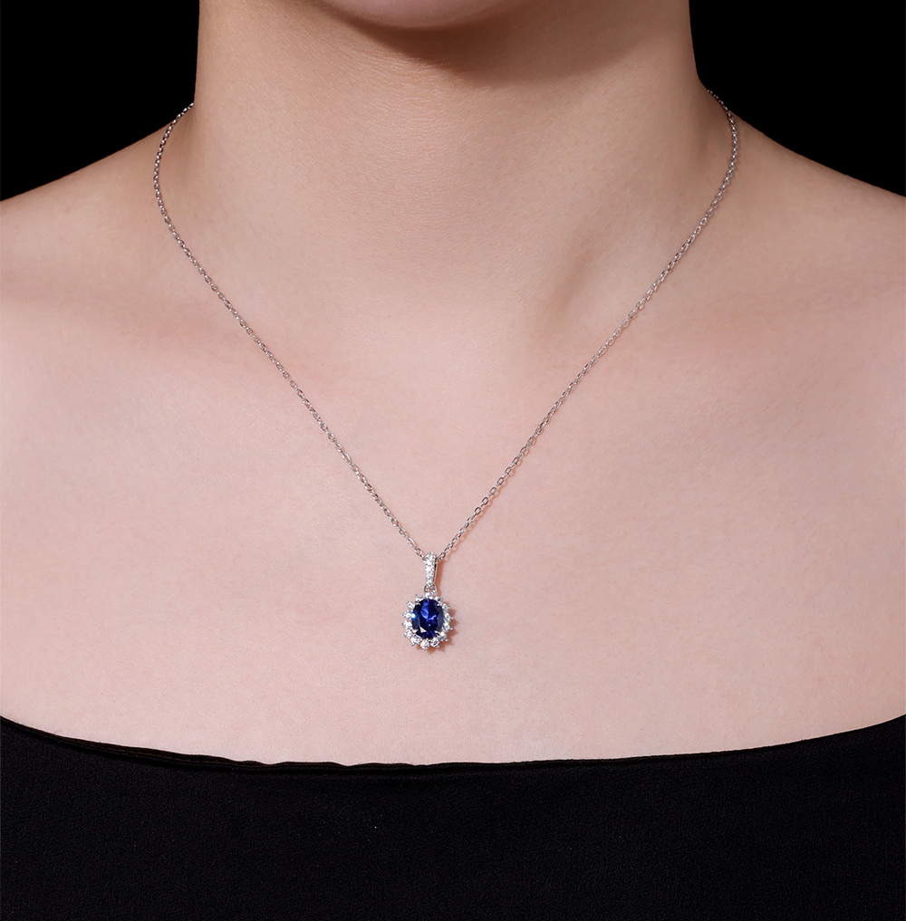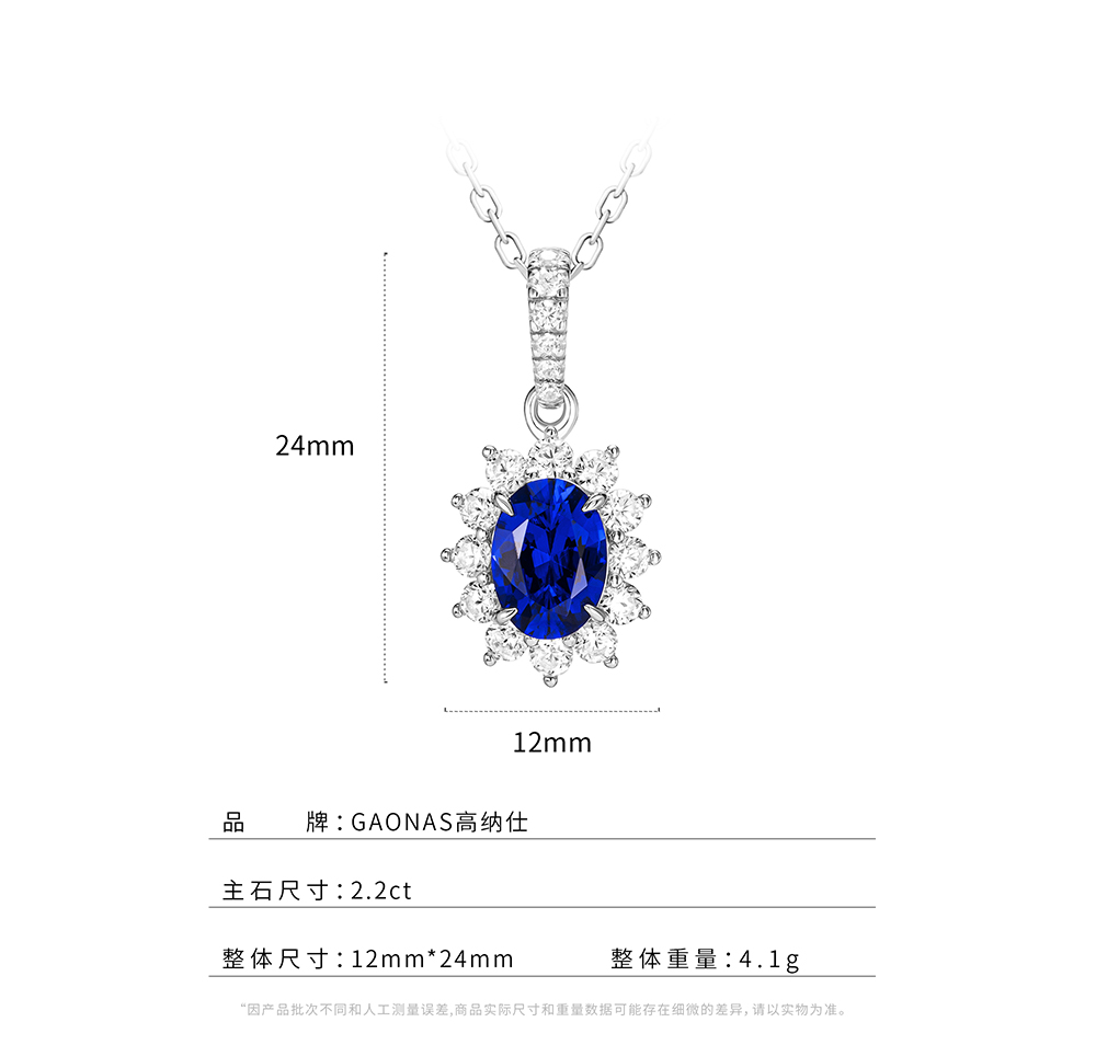 GAONAS 培育蓝宝石【矿工的眼泪】经典椭圆气质隽永蓝色项链10162DB