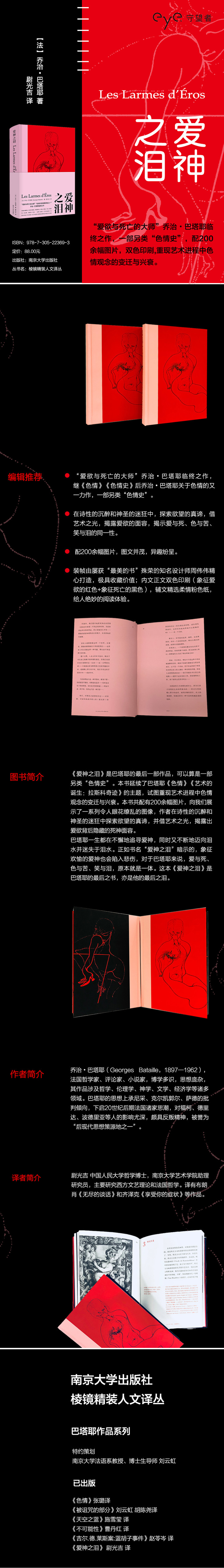 巴塔耶一生都在不懈地追寻爱神,同时又不断地迈向泪水并迷失于泪水。正如书名“爱神之泪”暗示的,象征欢愉的爱神也会陷入悲伤,对于巴塔耶来说,爱与死、色与苦、笑与泪,原本就是一体。这本《爱神之泪》是巴塔耶的最后之书,亦是他的最后之泪。
