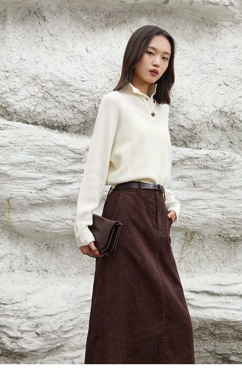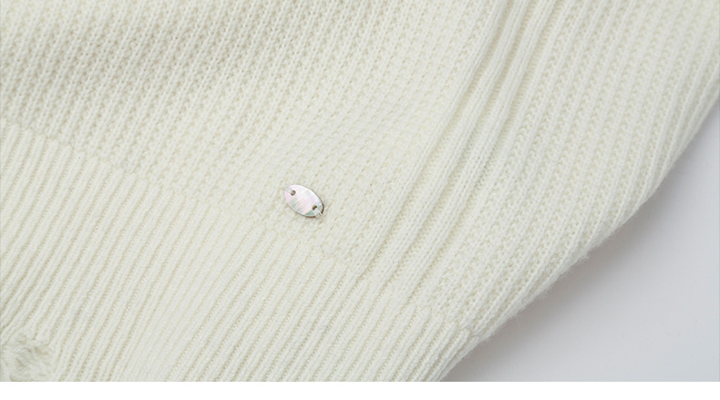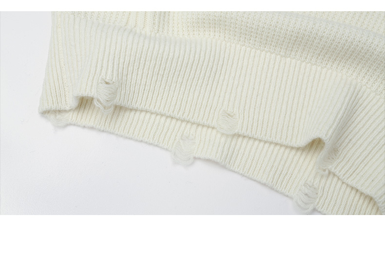 2025 秋冬新款米白色半开领纽扣毛衣 设计感做旧破边针织衫 宽松慵懒风小众别致上衣
