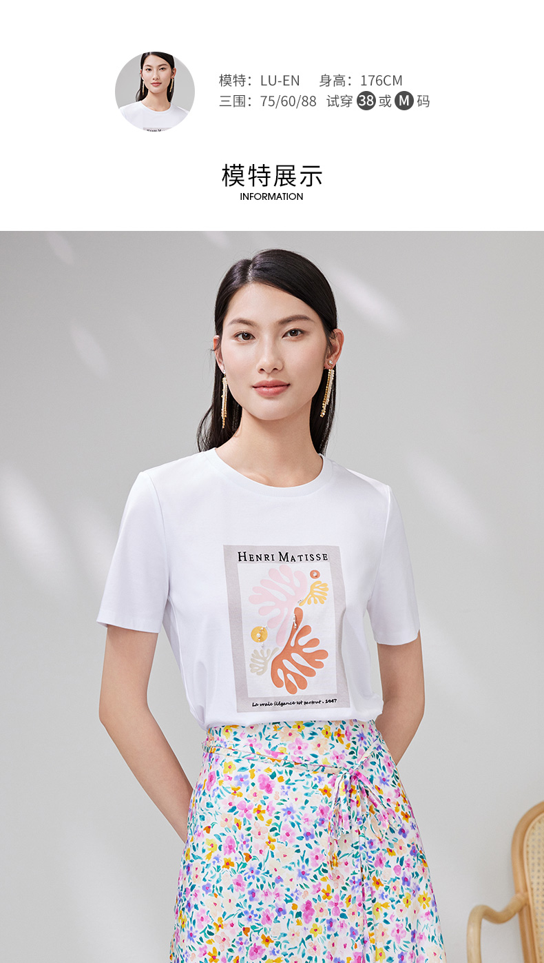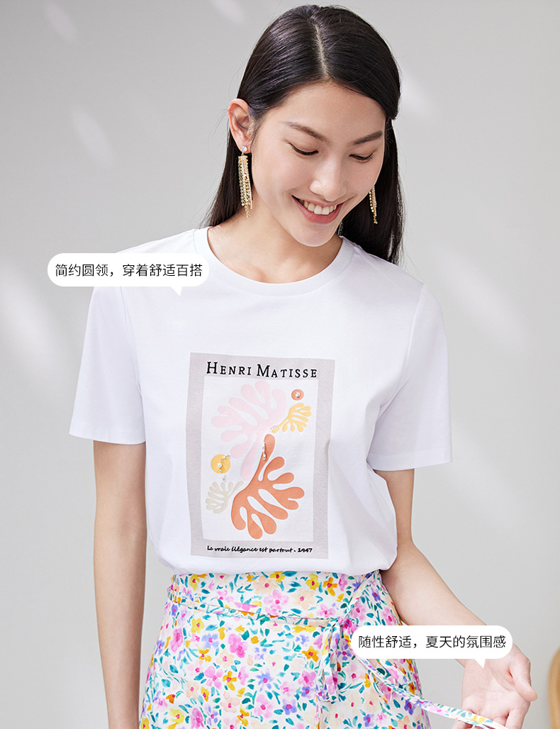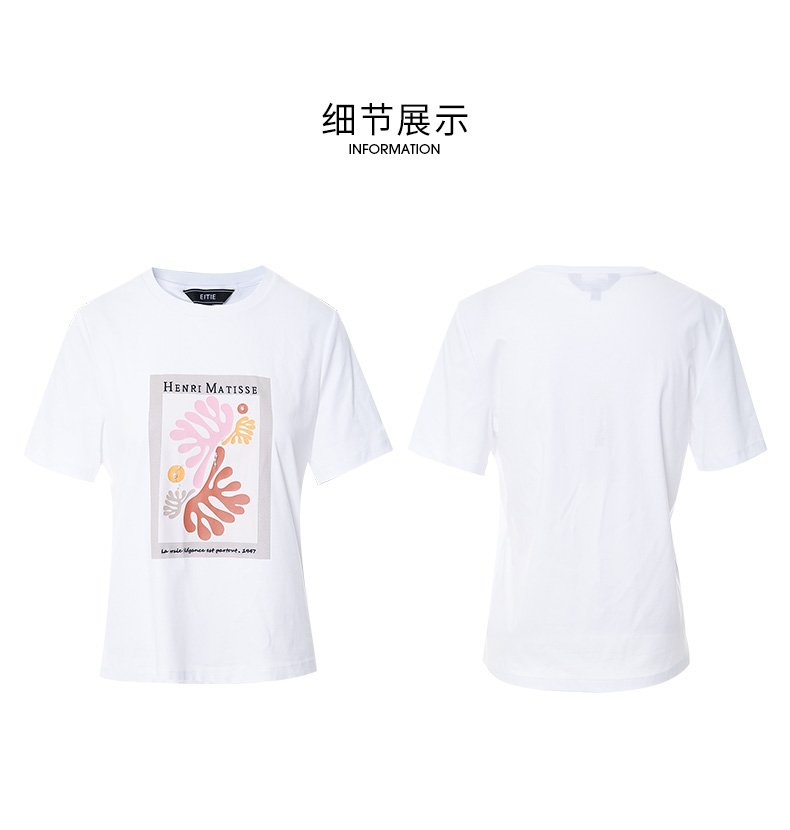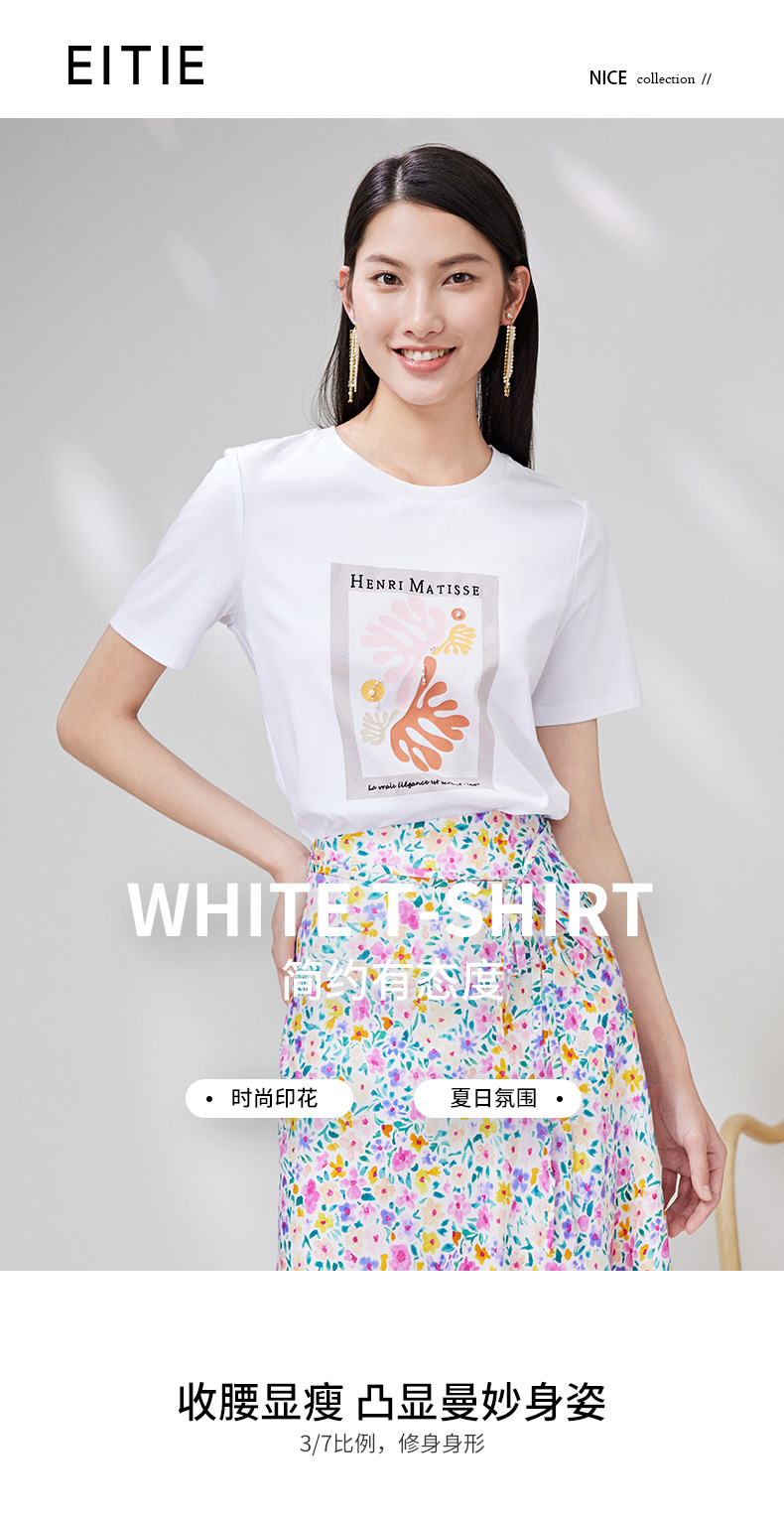 EITIE爱特爱夏季新款时尚百搭打底舒适弹力圆领印花T恤女7002703