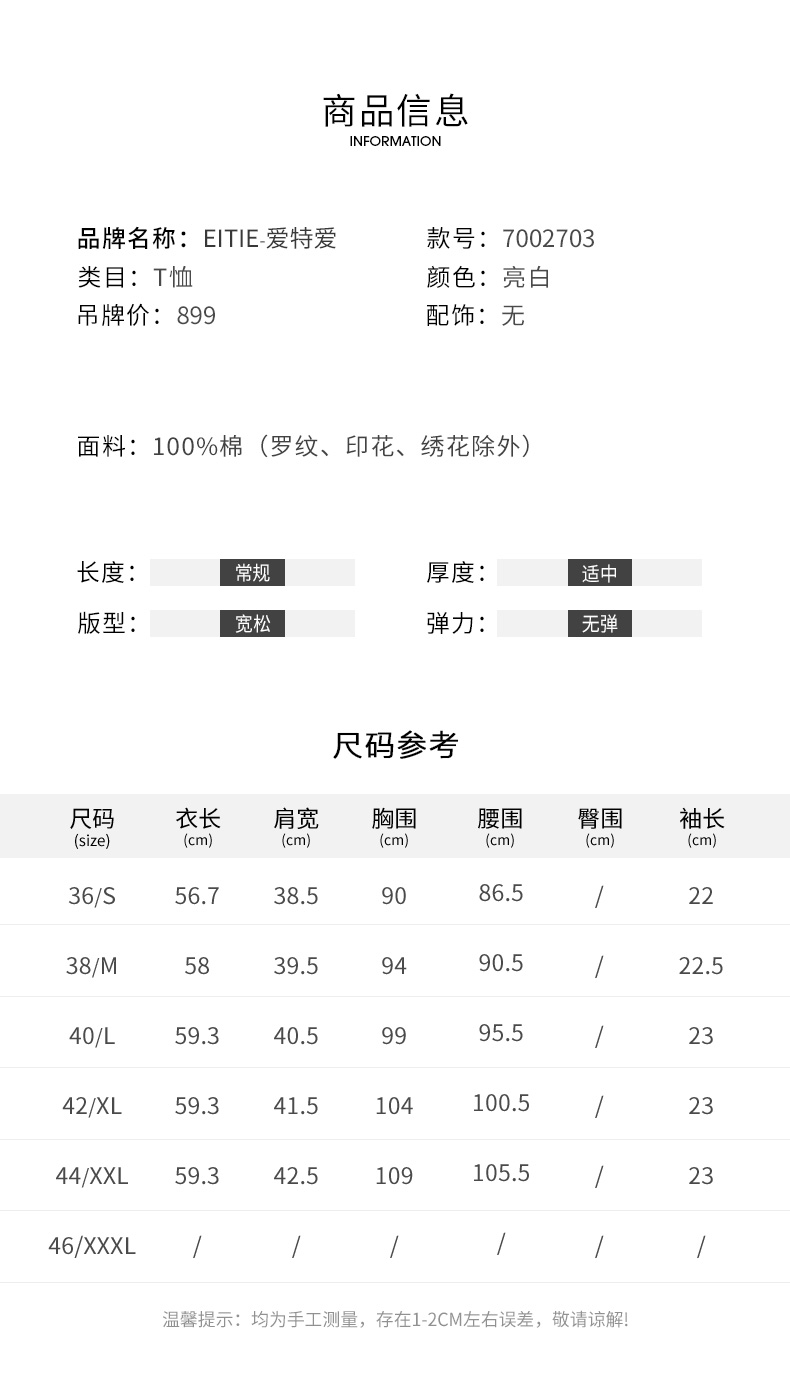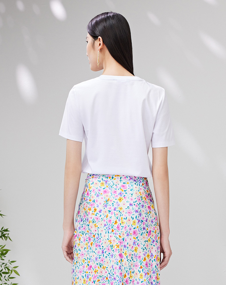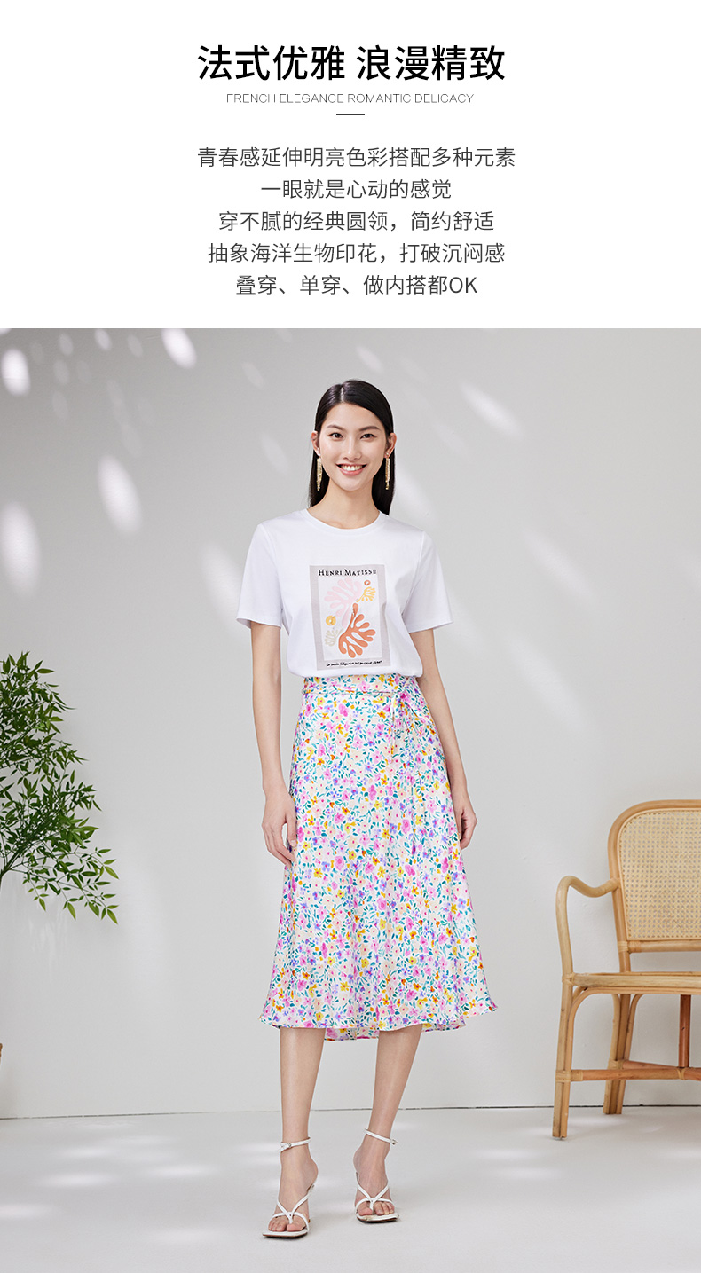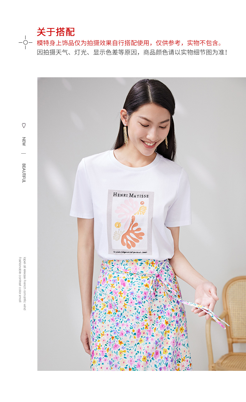 EITIE爱特爱夏季新款时尚百搭打底舒适弹力圆领印花T恤女7002703