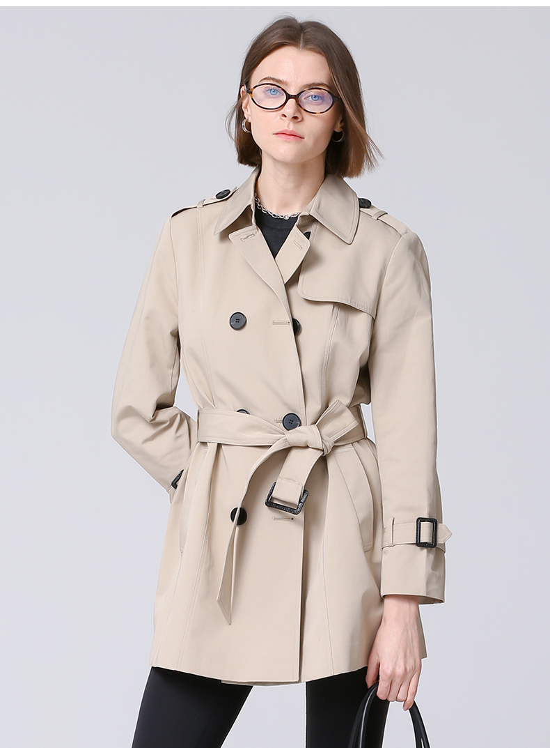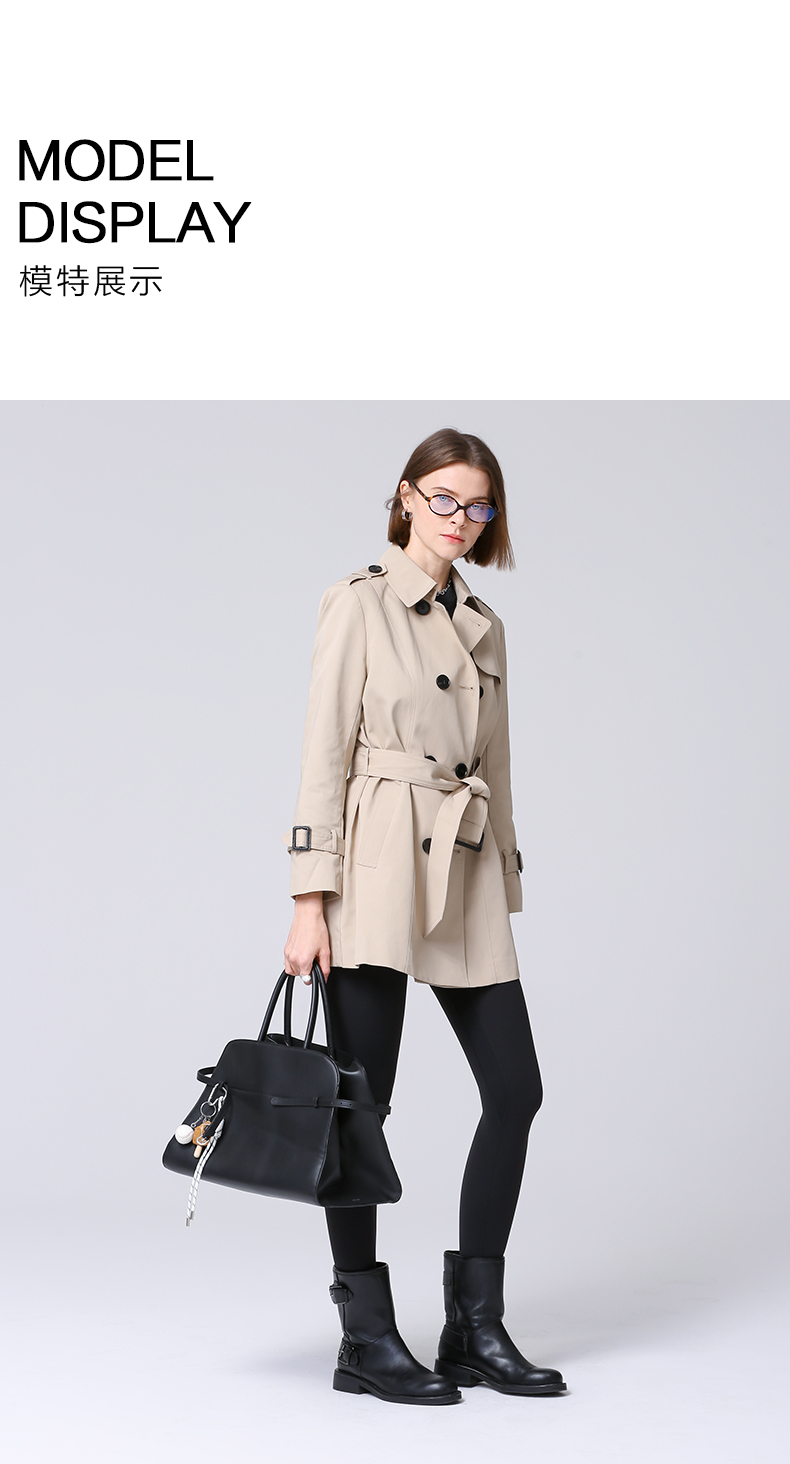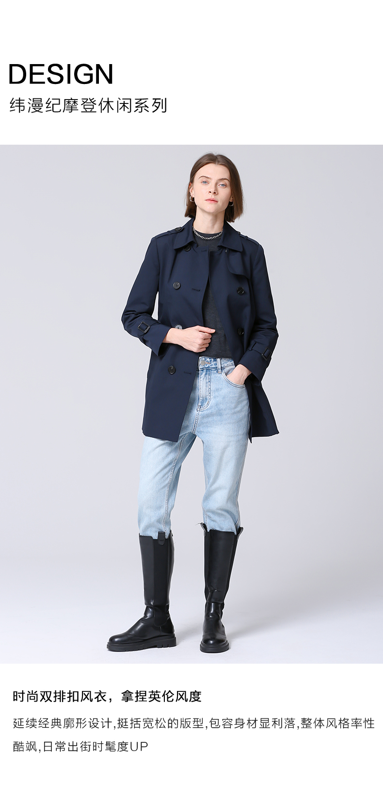 VIMAGE纬漫纪秋款气质翻领双排扣风衣外套女短款时尚经典VA2104109