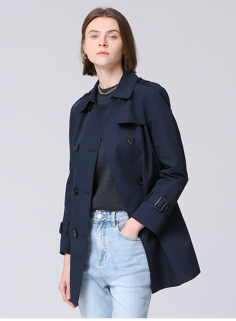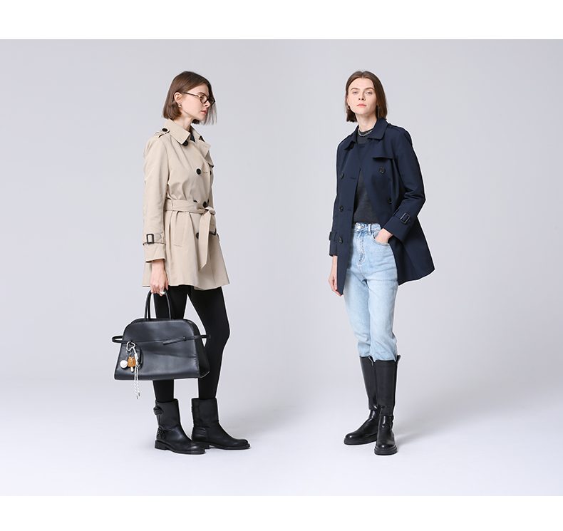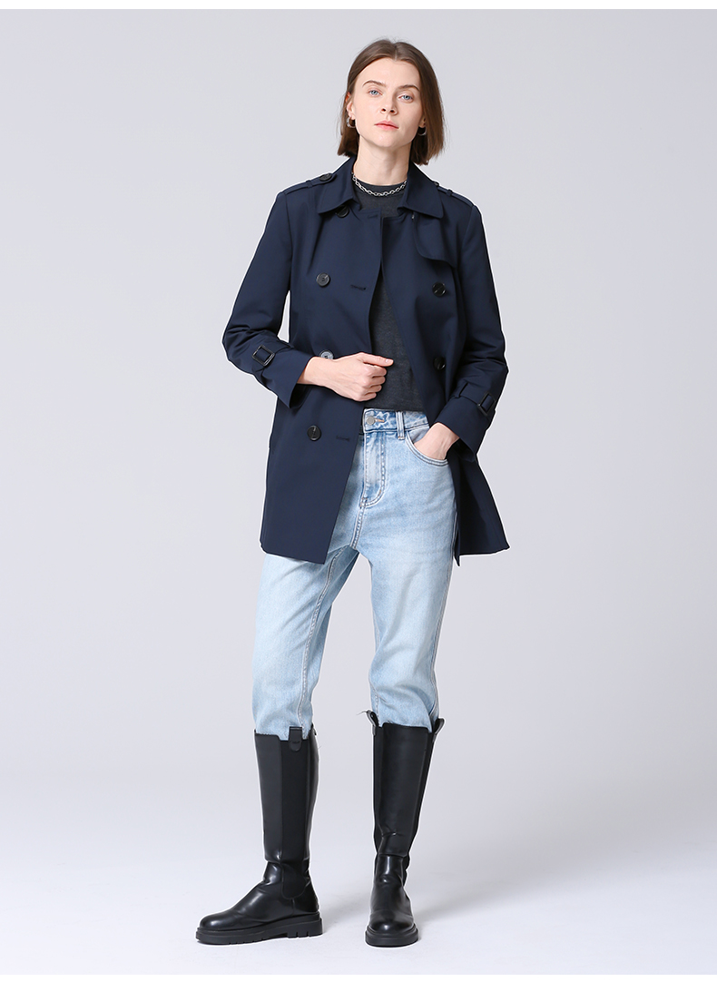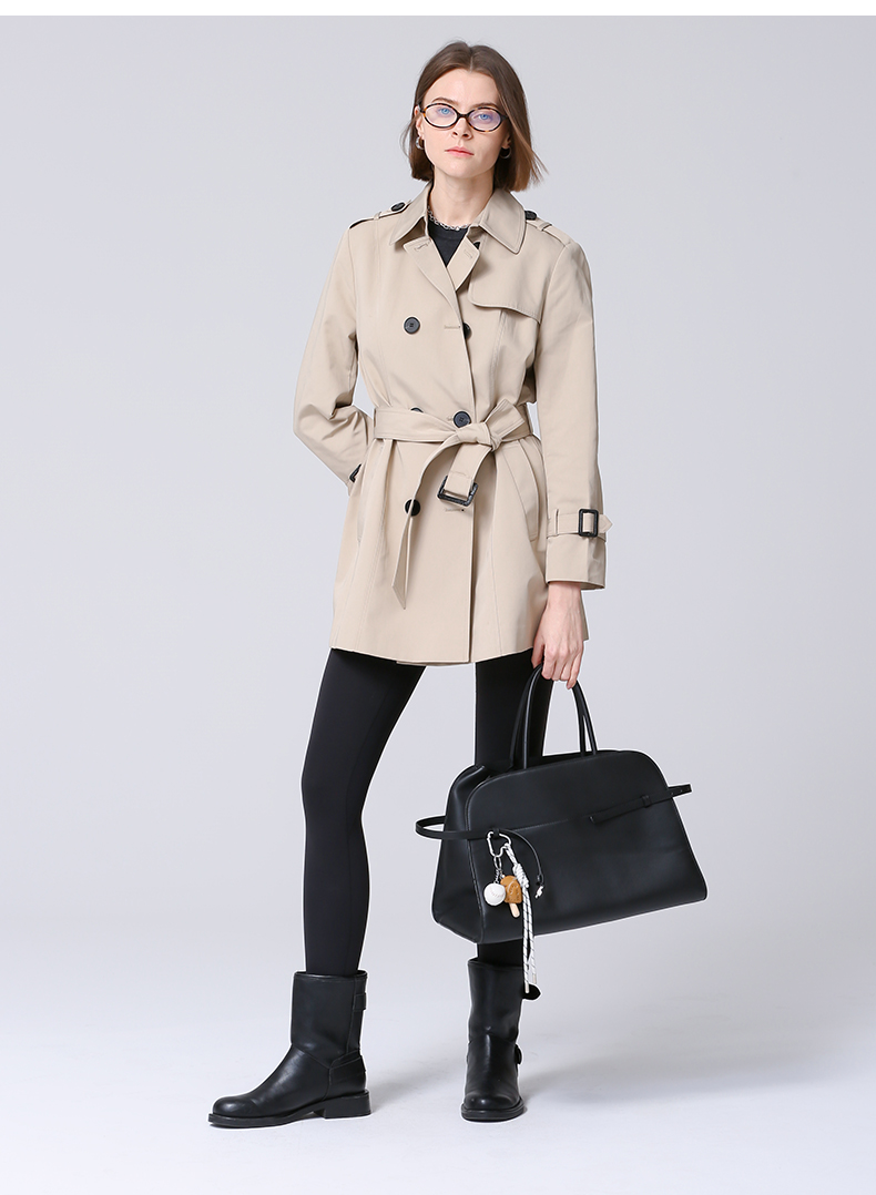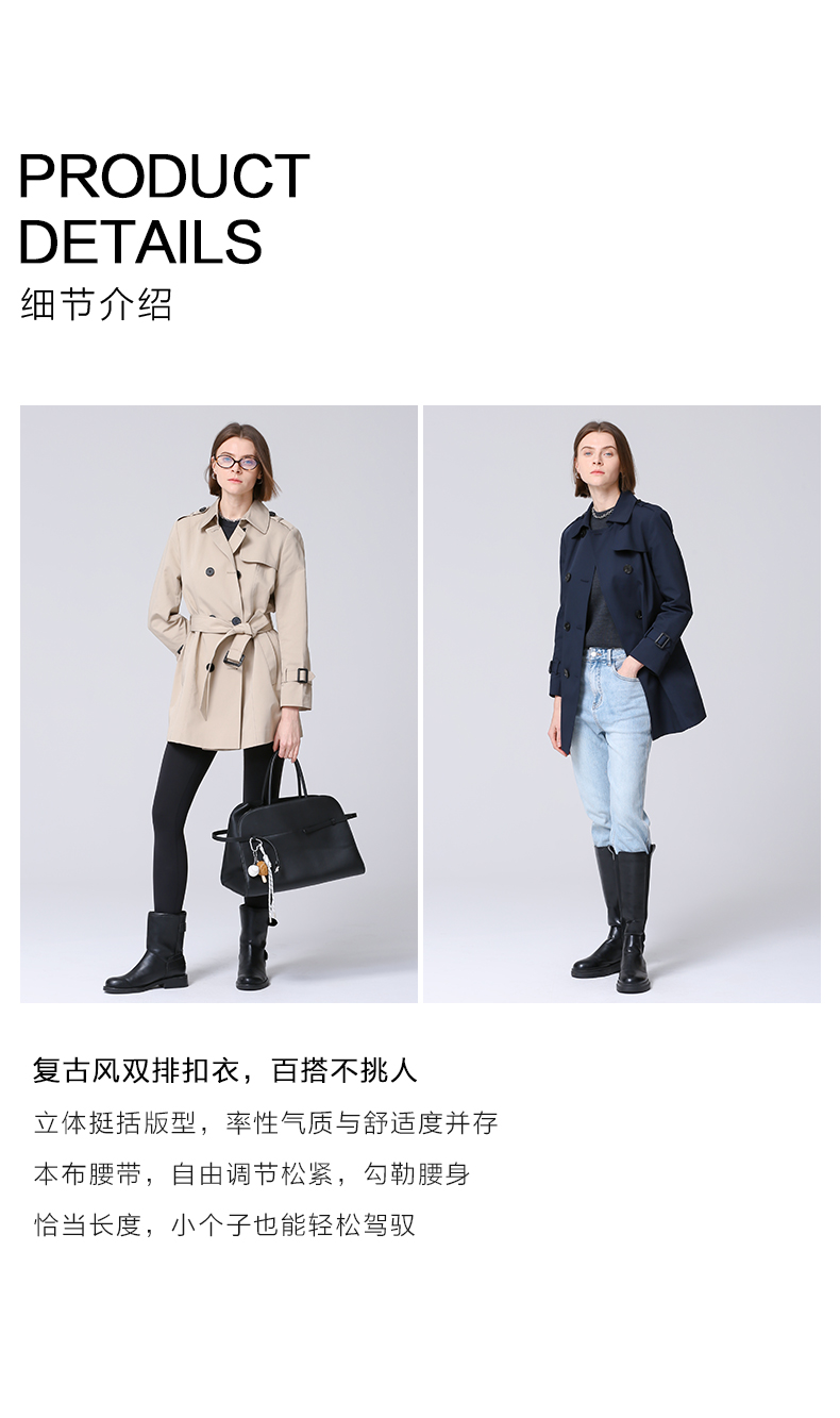 VIMAGE纬漫纪秋款气质翻领双排扣风衣外套女短款时尚经典VA2104109