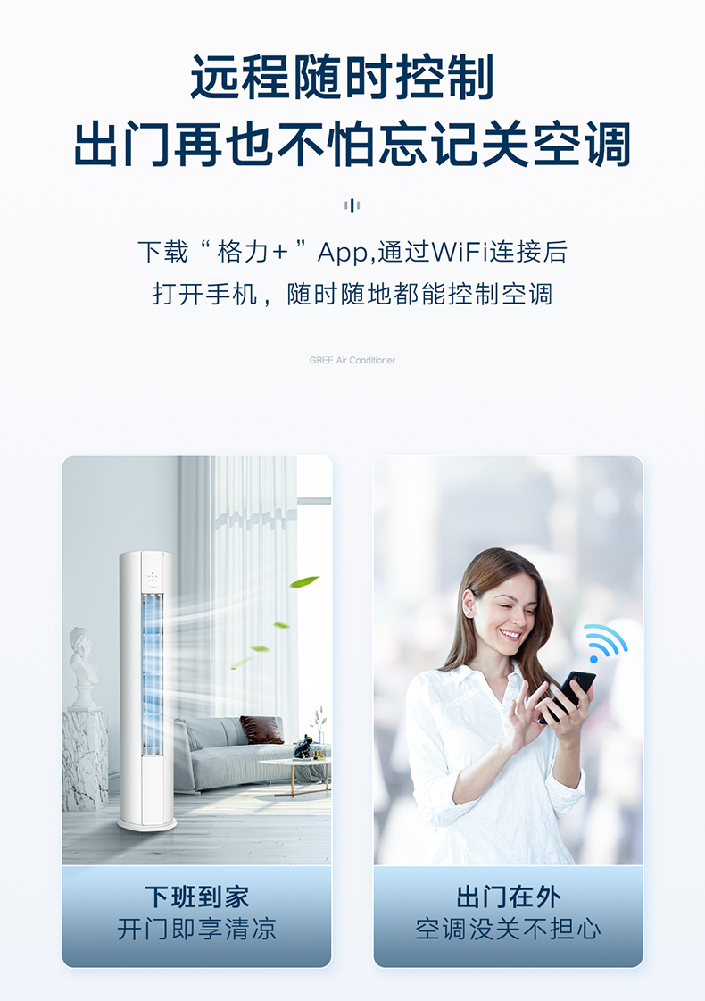 格力天巧变频柜机1(皓雪白)3匹1级能效KFR-72LW/(72565)FNhAc-B1(WIFI)