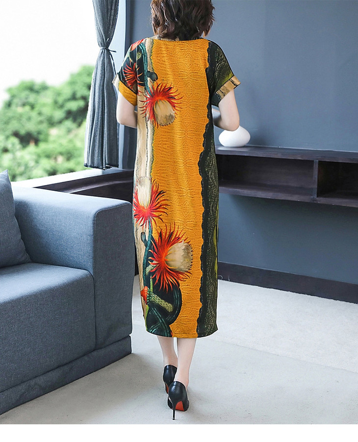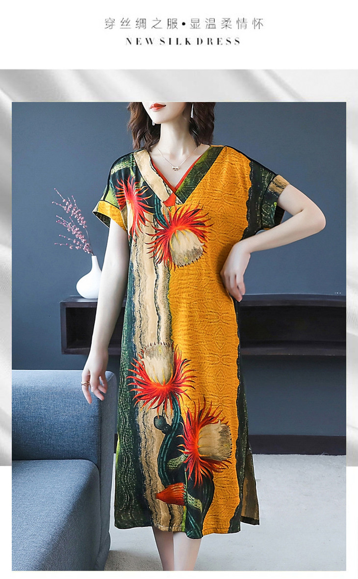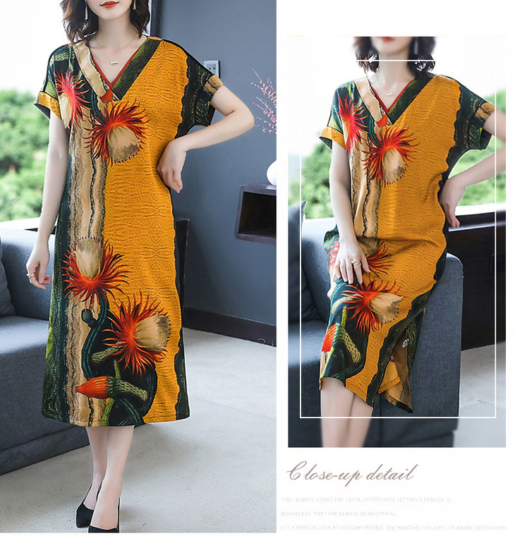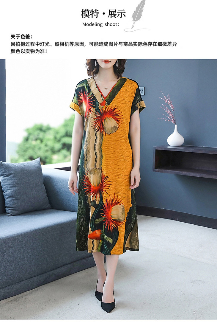 HT-0809新款复古v领显瘦印花宽松连衣裙