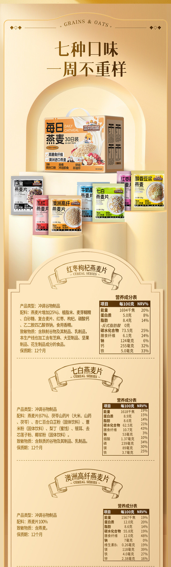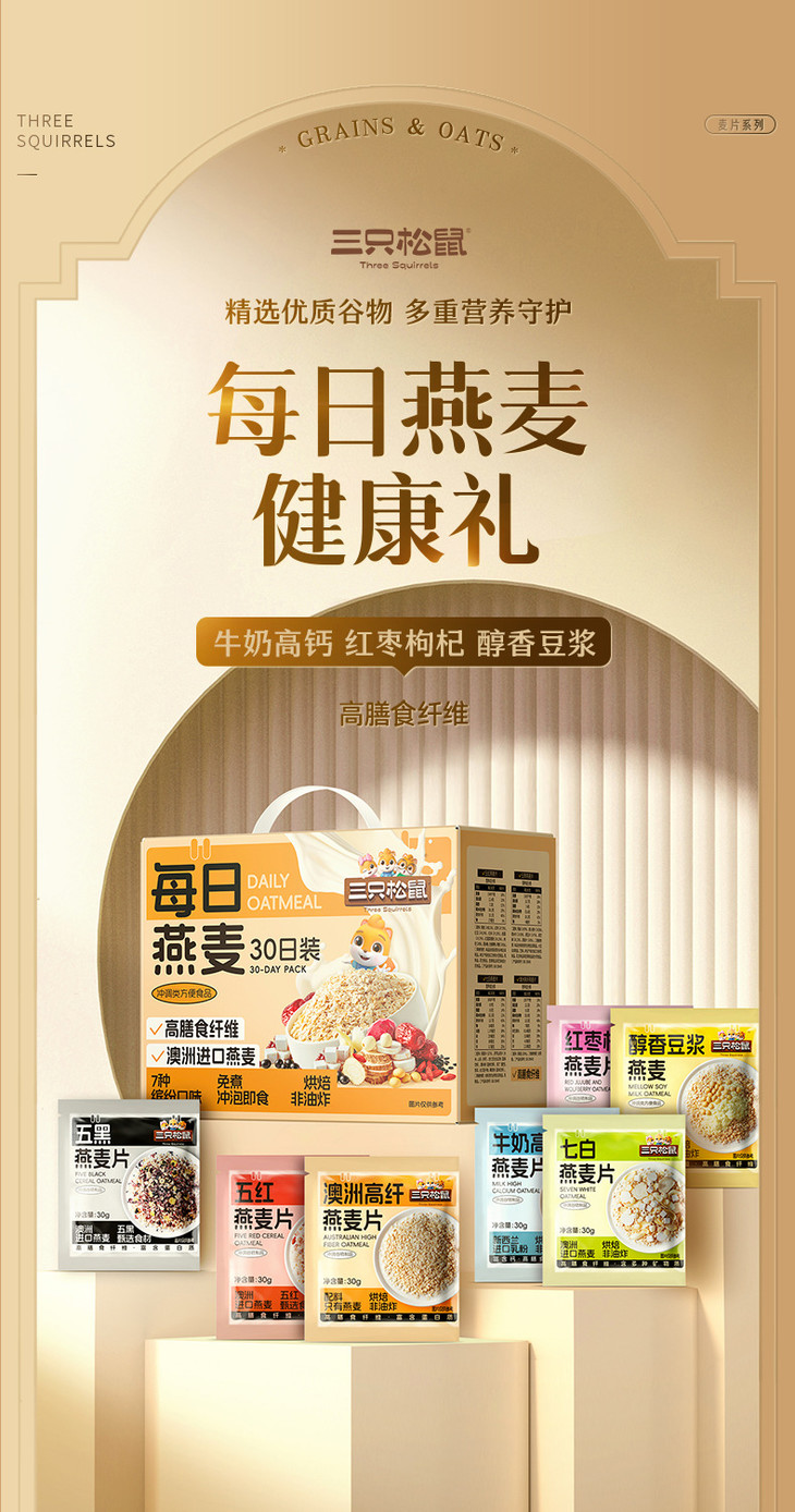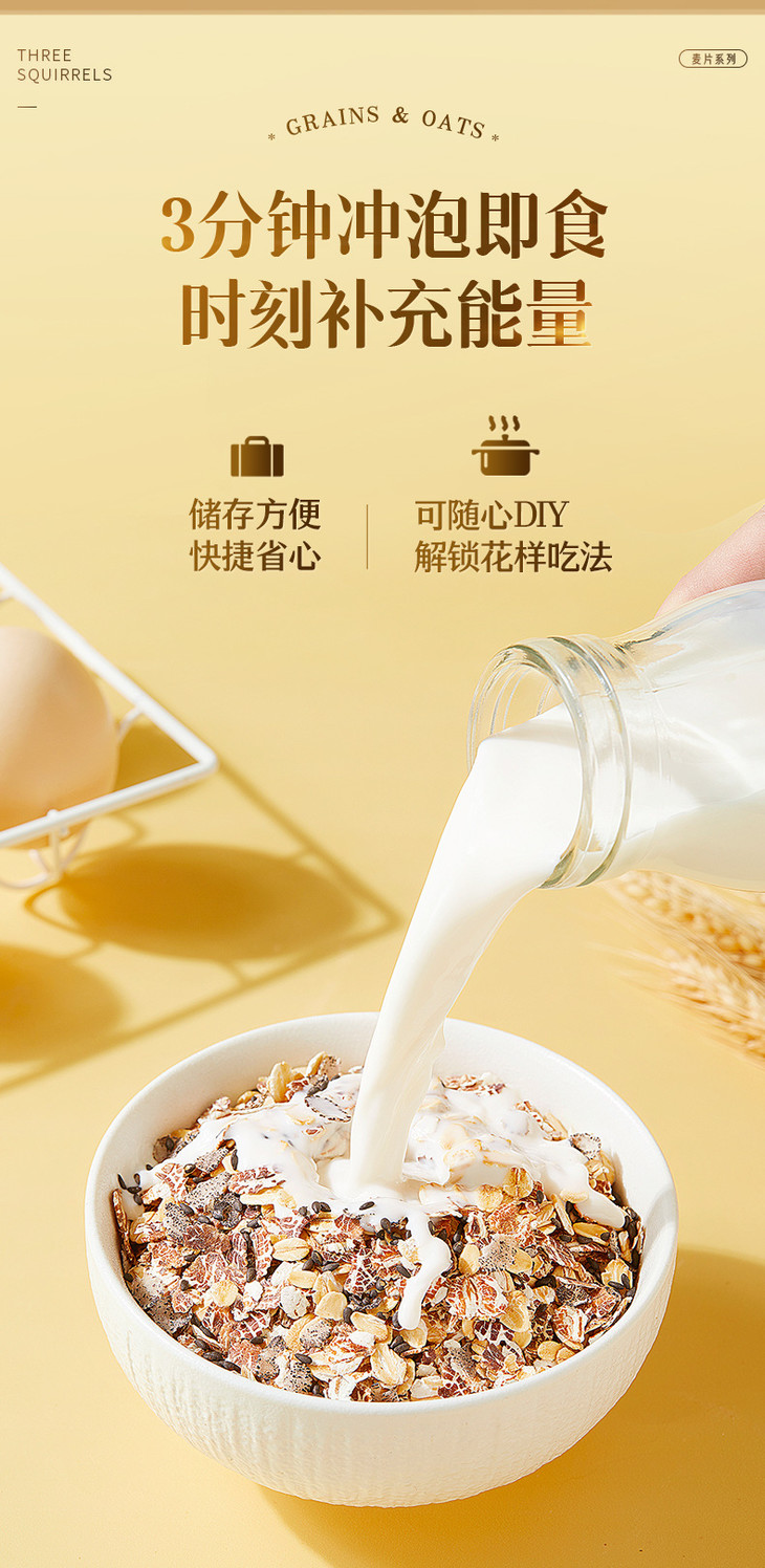 【三只松鼠】多口味健康营养谷物早餐即食饱腹每日燕麦片礼盒900g