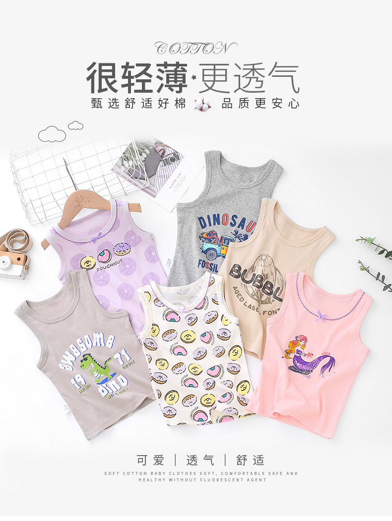 【39.9/3件】儿童夏季背心纯棉A类吊带男童女童100-160码店