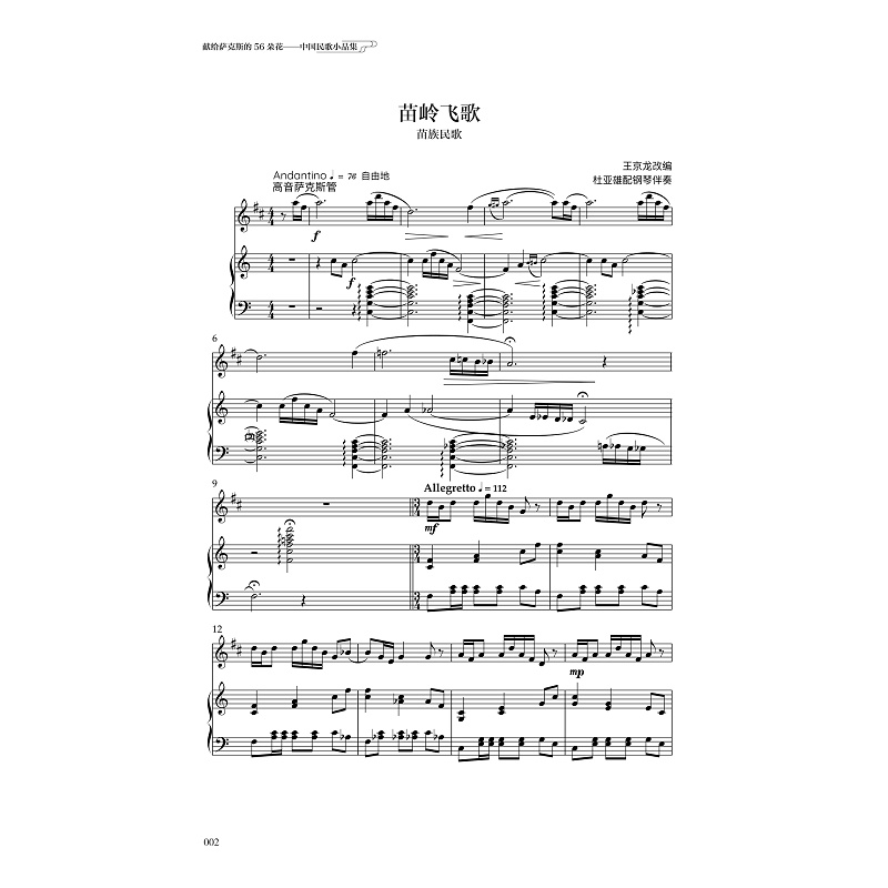 书名:献给萨克斯的56朵花——中国民歌小品集
