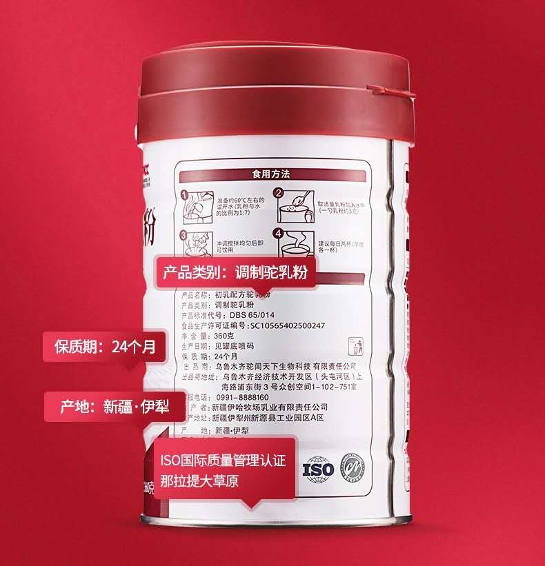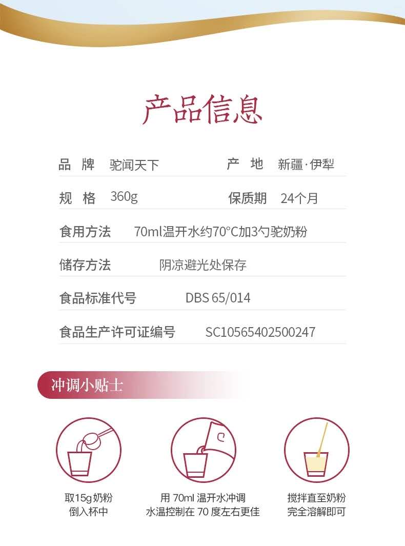 【驼闻天下】新疆双峰驼初乳中老年成人高钙奶300g/罐
