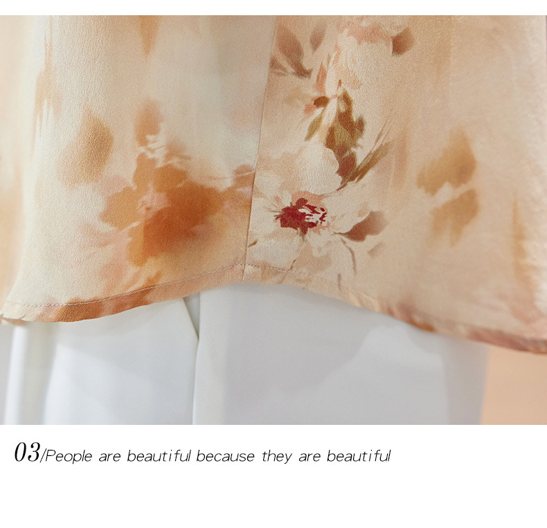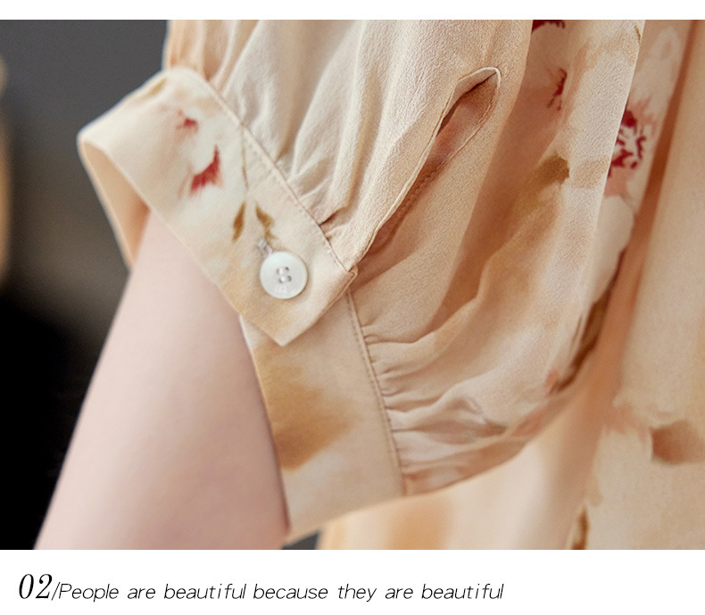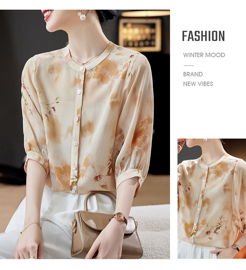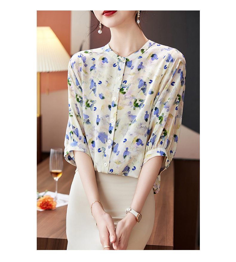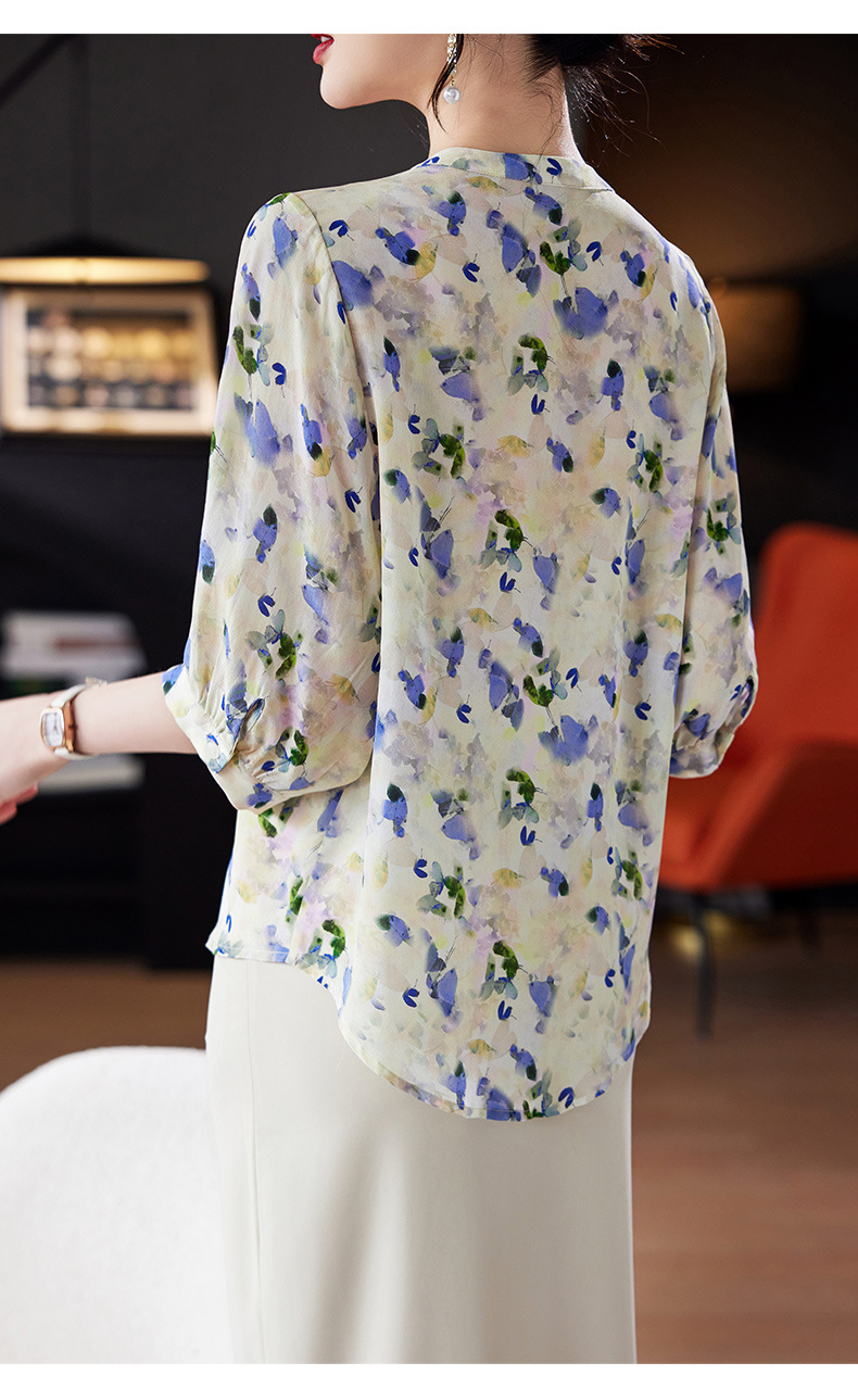 TC 11221双绉桑蚕丝蝙蝠袖印花宽松真丝衬衫中袖气质小衫 商品图3