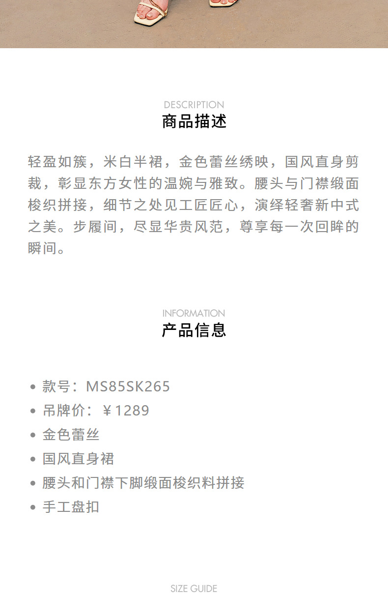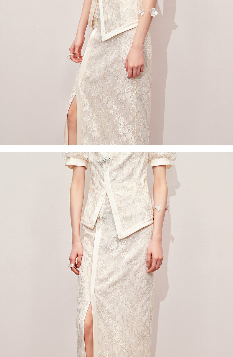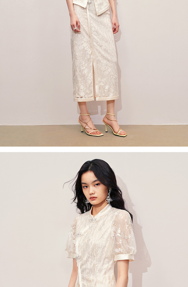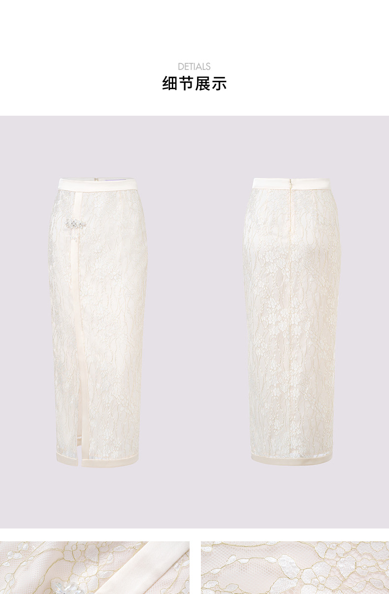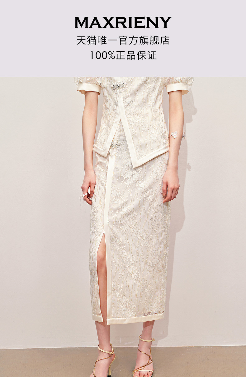 MAXRIENY国风新中式半身裙2024夏季新款蕾丝开叉半裙轻奢盘扣裙子(货号:MS85SK265)