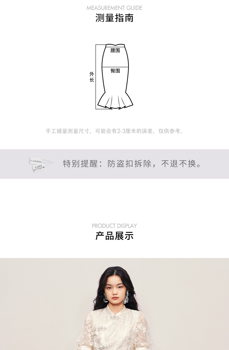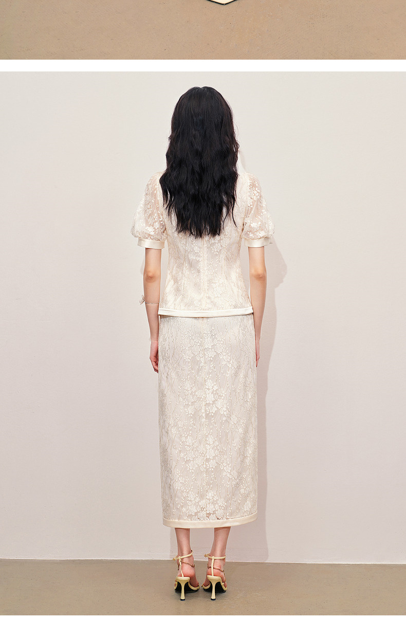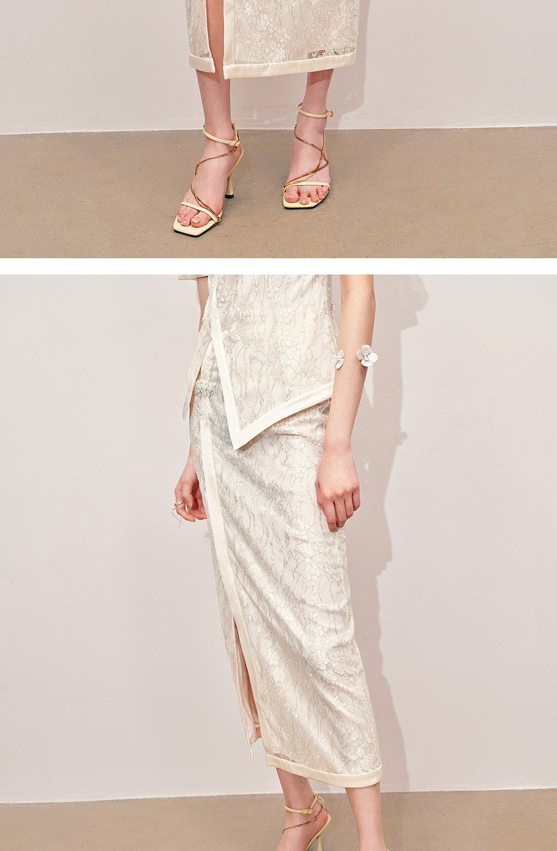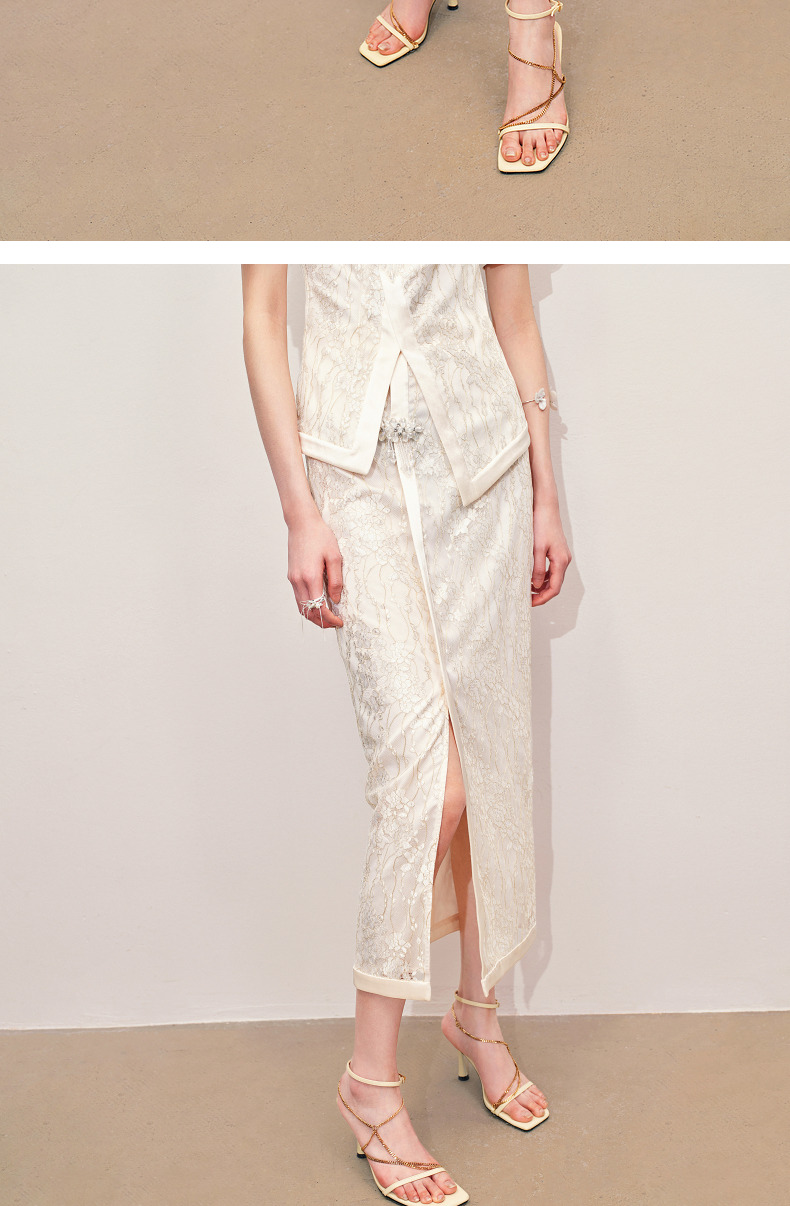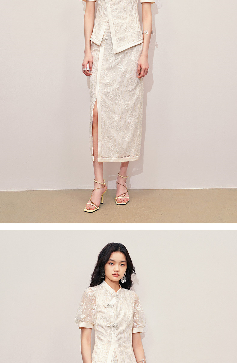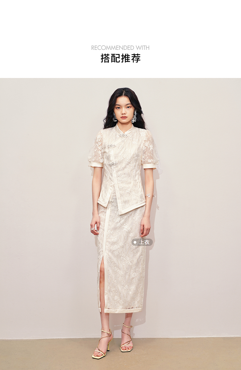 MAXRIENY国风新中式半身裙2024夏季新款蕾丝开叉半裙轻奢盘扣裙子(货号:MS85SK265)