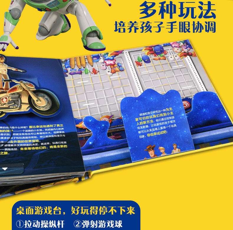 1、孩子喜爱的《玩具总动员4》经典故事、精美插画和纸张动态立体结构等多种元素有机融合在一起,呈现出一个神奇的纸上电影故事;